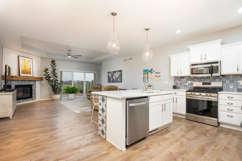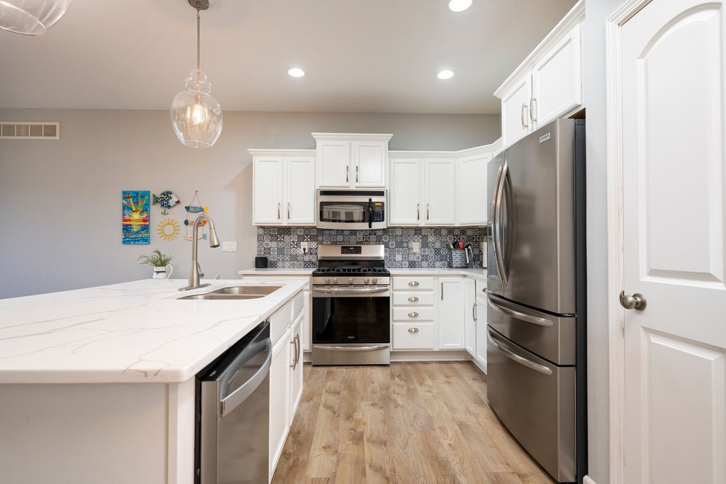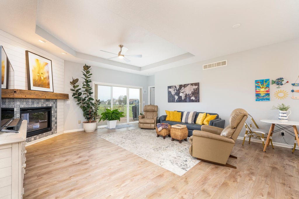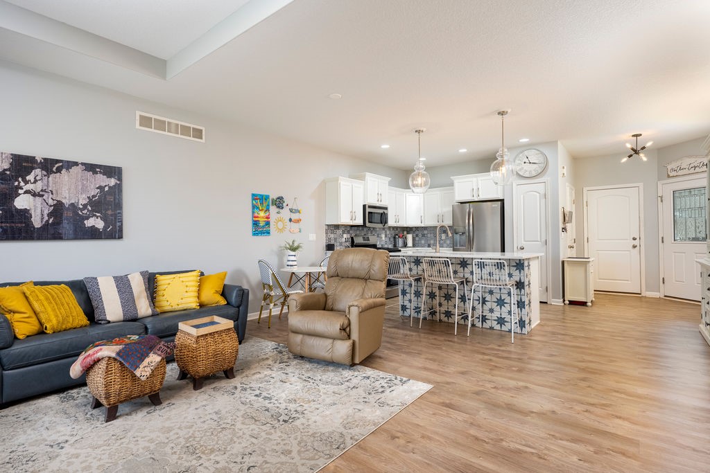 Spring is here - and there's no better way to celebrate than settling into a move-in-ready townhome overlooking Hole 5 of the Legacy Golf Course in Norwalk. This spacious home welcomes you with tall tray ceilings and luxury plank flooring throughout. On the main floor, you'll find three bedrooms, including a generous primary suite complete with a jacuzzi tub, double vanity, and a large walk-in closet. If that's more space than you need, the front bedroom can easily be converted into a den or home office. The updated kitchen features new countertops, stylish appliances, and an open-concept layout that flows seamlessly into the living room - perfect for taking in those beautiful golf course views. Step outside through the sliding glass doors to a large deck with a retractable shade awning, ideal for relaxing or entertaining. Enjoy the convenience of main-floor laundry, while the finished lower level offers even more living space. A large family room, an additional guest bedroom, and a third bathroom provide plenty of space for guests or gatherings. There is also a massive storage area and a three-stall attached garage. With incredible space inside and the golf course just steps away, this home is the perfect place to enjoy the season. Come see it for yourself!