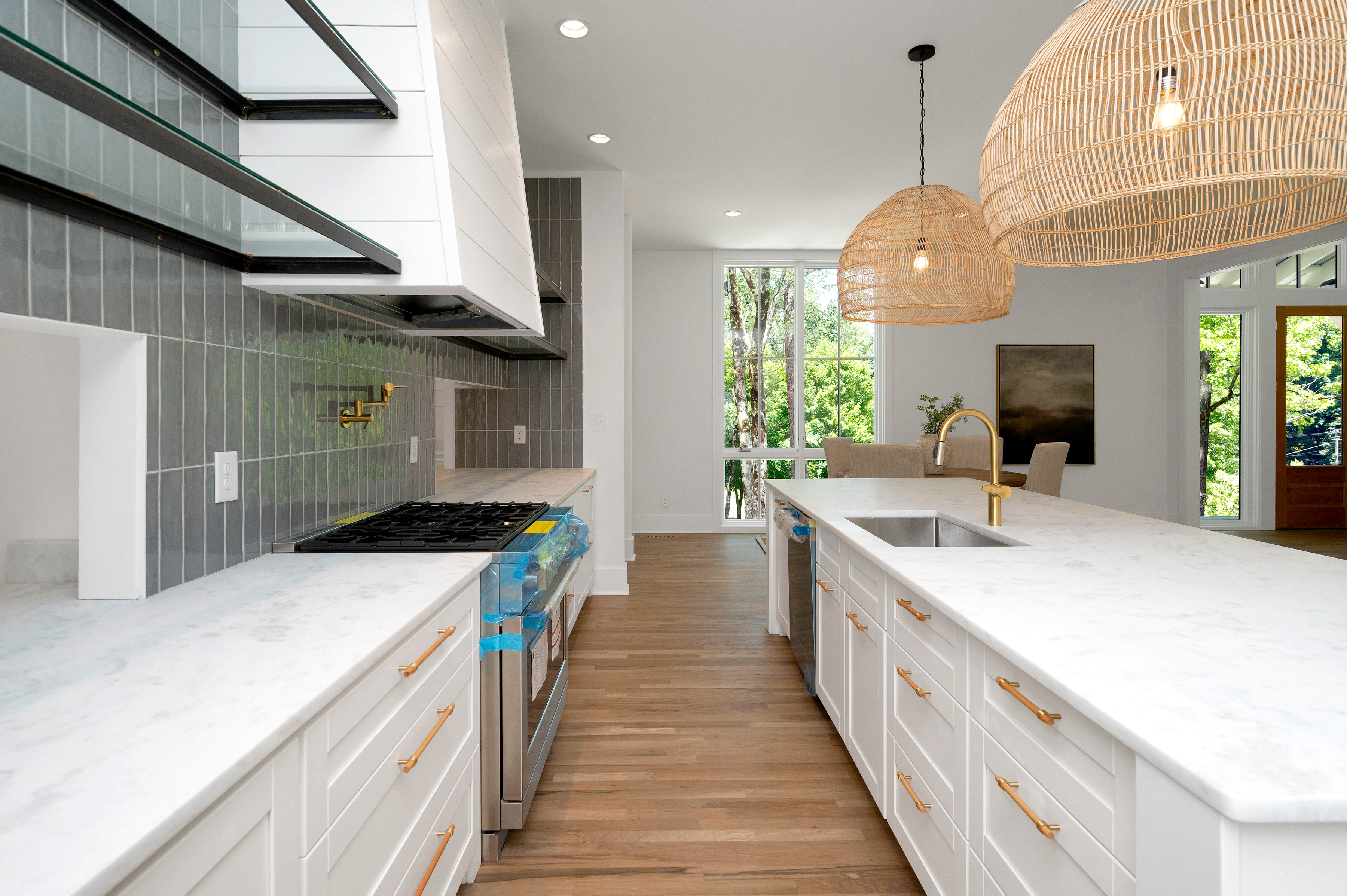 This modern, one of a kind home sits atop Murray Hill in Homewood and offers a perfectly flat backyard with hillside woods and terraces beyond. White oak flooring throughout, Sierra Pacific steel windows spanning 2 stories. Open kitchen with marble counters, GE monogram appliances & column fridge/freezer, custom steel & glass open shelving, ample cabinetry in kitchen & separate pantry. Light filled living areas, oversized garage with EV charger. Primary suite has vaulted ceilings, gorgeous windows that frame the private back yard, expansive bath & closet space with a laundry chute to the basement laundry room. Upstairs has three large bedrooms with walk-in closets and beautiful baths, a 2nd laundry room, plus a huge den space with views of front & back yards. Basement level has a large mudroom/drop zone, cozy den/media room with built-in shelving & wired for theater & sound, private bedroom & bath (office), plus large laundry room with storage and utility sink. More in agent notes.