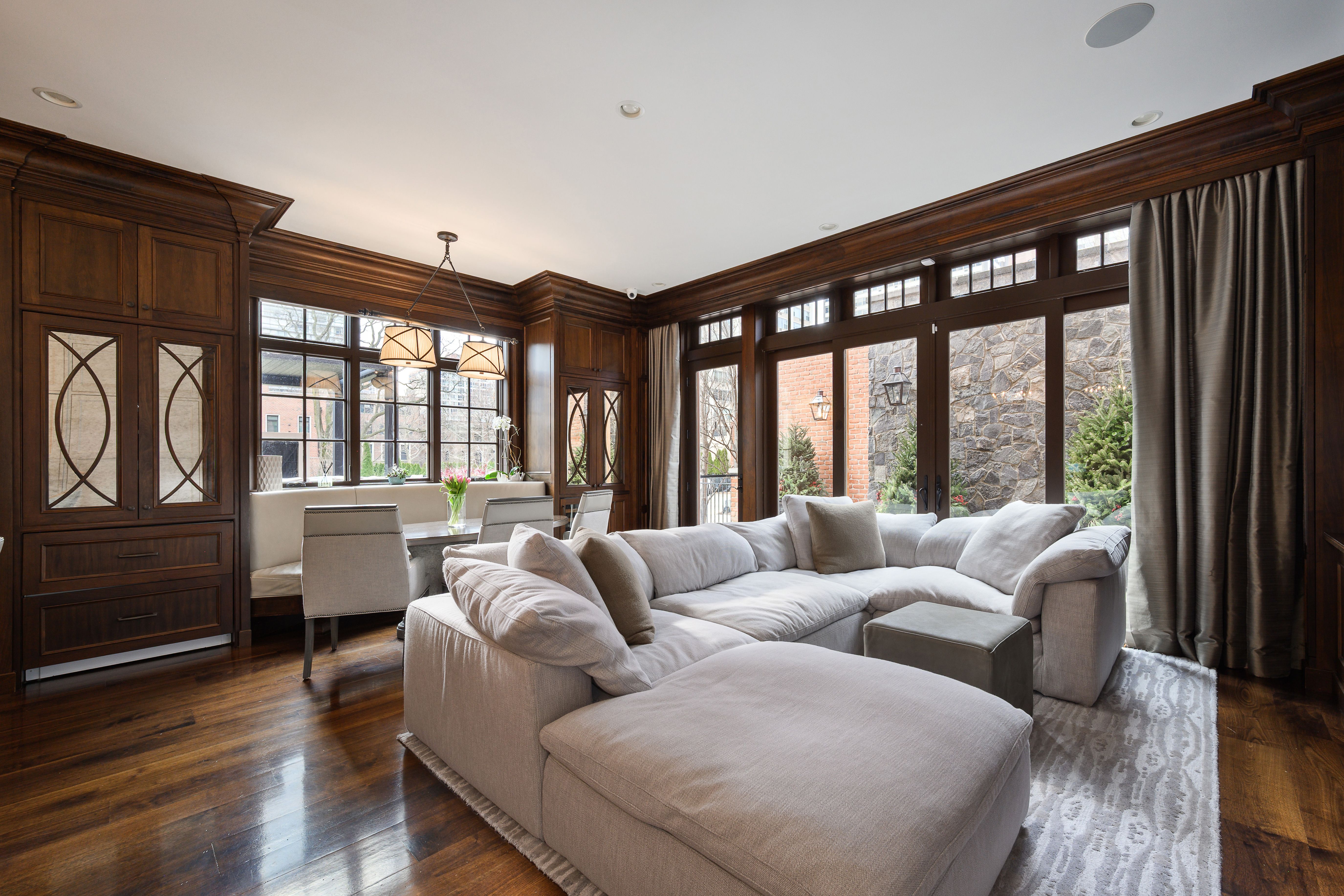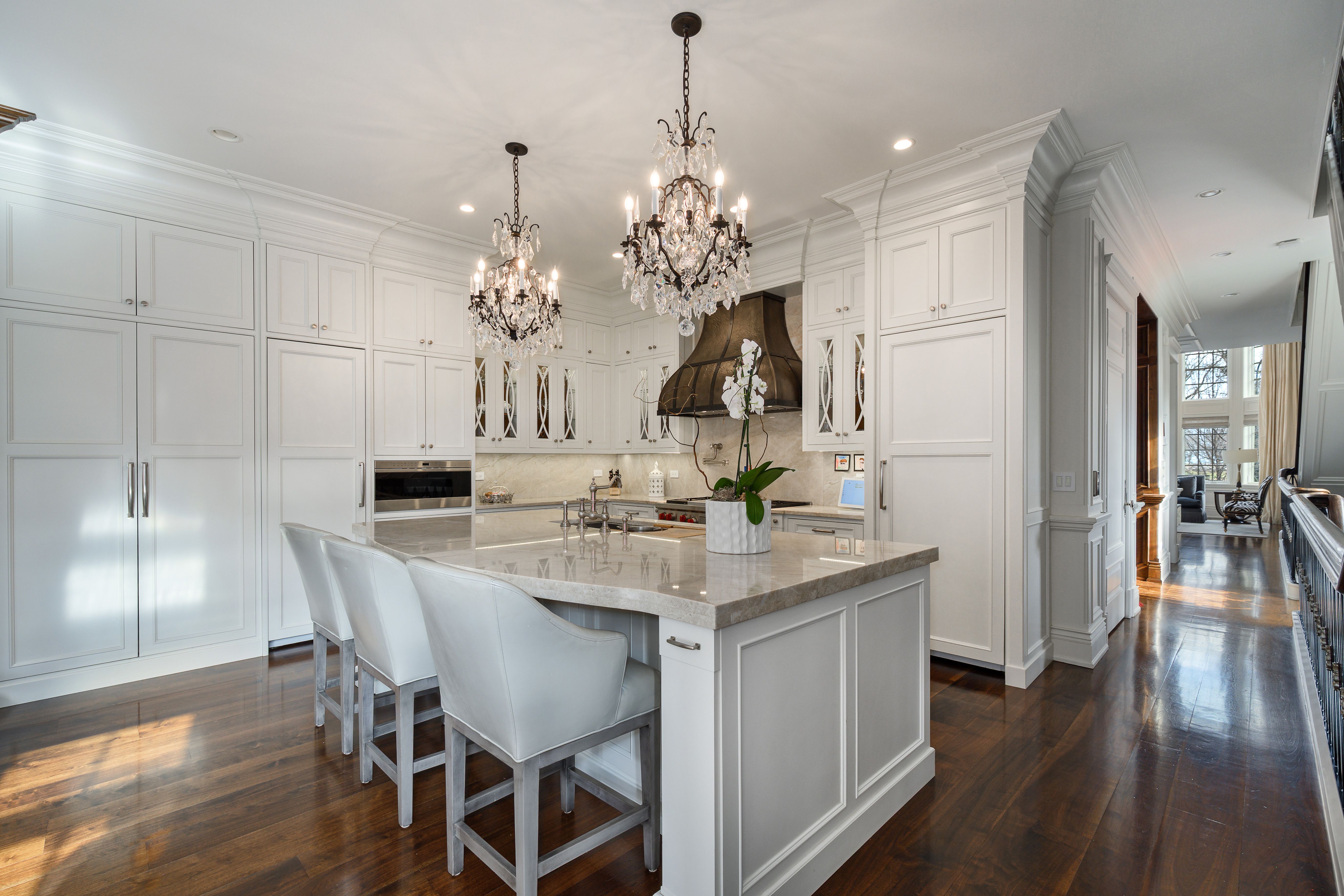 Rare opportunity to own an impeccably maintained single-family residence on Lake Shore Drive, situated on an expansive 66' x 200' lot with approximately 9,000 square feet under roof. This exceptional home offers 7 bedrooms and 7.5 baths and features multiple outdoor living spaces, including a Sport Court, a 30' x 25' terrace, and a 30' x 20' garage rooftop terrace with a custom outdoor kitchen-ideal for entertaining. A dramatic foyer welcomes you into the main level, which features a gourmet kitchen, great room, and a striking living area with soaring 20+ foot ceilings, a gas fireplace, and a dining space overlooking Lake Shore Drive. The kitchen is appointed with custom white cabinetry, natural stone countertops, professional-grade appliances, a dedicated coffee and beverage nook, and a built-in breakfast banquette. The seamless indoor-outdoor layout opens to a pergola-covered entertainment terrace with lounge seating and a fire pit, offering direct access to the backyard and an integrated sports court. A striking custom double staircase connects the upper levels. The second-floor features three light-filled ensuite bedrooms with custom-built-in storage. The third floor is home to a refined primary suite with custom millwork, a fireplace, and a tucked-away sitting area. The spa-inspired primary bath features an oversized rain and steam shower, a soaking tub, dual vanities with Calacatta marble countertops, and heated marble floors. A spacious dressing room features a center island. An additional ensuite bedroom and a laundry room complete this level. The top floor showcases exceptional custom woodwork and offers a large bar and entertainment lounge, a half bath, a workout room, and two rooftop decks with open views. The lower level includes a family/media room, wet bar, full bath, an ensuite bedroom, ample storage, oversized refrigerator and freezer capacity, and a mudroom with direct access to the 3-car garage. Additional highlights include a Control4 audio system, an elevator, individual HVAC zones, a security system, an irrigation system, and outdoor snow-melt. In addition to the 3-car garage, the property offers two outdoor parking spaces with gated, secure alley access.