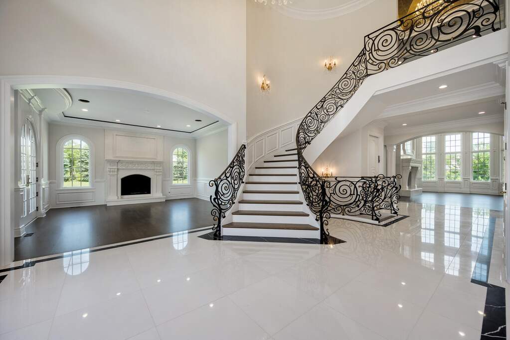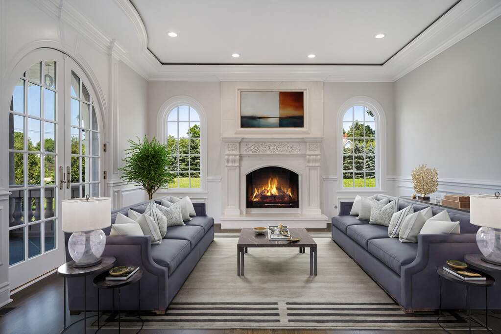 Welcome to 6413 County Line Road-an extraordinary new construction estate set on a full acre along Burr Ridge's prestigious Millionaires Row. Masterfully designed with timeless architecture and best-in-class finishes, this home offers a rare blend of luxury, comfort, and craftsmanship. The exterior makes an immediate statement, wrapped entirely in natural stone and limestone with a terracotta clay tile roof and Marvin windows throughout. Natural cobblestone pavers lead to a grand entrance framed by bluestone steps and manicured landscaping. Inside, you're welcomed by radiant-heated white Thassos marble floors with black inlays, soaring ceilings, and exquisite millwork throughout. The chef's kitchen is outfitted with Sub-Zero, Wolf, Thermador, and Bosch appliances, marble countertops with full slab backsplash, and custom cabinetry in a mix of painted, glazed, and stained finishes. A second full kitchen on the lower level adds exceptional functionality. Each bedroom is a private suite with its own balcony, while the primary bathrooms are outfitted in floor-to-ceiling marble with digital Kohler and Grohe fixtures and radiant heat. Throughout the home, 5" white oak flooring adds warmth, and four custom staircases with hand-forged wrought iron offer both elegance and flow. The lower level is designed for entertaining and wellness, featuring a full bar, state-of-the-art theater, sauna, steam room, and a custom three-level elevator. Located near top-rated schools, country clubs, Hinsdale Hospital, and just minutes from downtown Hinsdale and Burr Ridge, this home delivers unmatched quality in one of Chicagoland's most coveted locations.