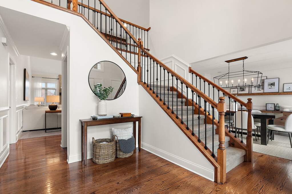 Set in Suttondale, one of Frankfort's most sought-after neighborhoods, with direct access to the Old Plank Trail and just moments from the Creamery, Grand Prairie, and vibrant downtown Frankfort, this home offers a location that continues to set the standard for suburban living, with award-winning schools and great local restaurants just minutes away. This beautifully updated 4-bedroom home with a finished basement offers a thoughtful balance of comfort and design, with a layout created for both everyday ease and effortless entertaining. A vaulted family room anchors the main level, while the open-concept kitchen and breakfast area, complete with custom banquette seating and updated appliances, create a natural gathering space. Designed for how we live today, the home features two dedicated main-level office spaces, an updated mudroom for daily organization, and a heated 3-car garage wired for a 240V charger. The spacious primary suite serves as a true retreat, featuring a walk-in closet and a well-appointed bath with soaking tub and double vanities. The second level also includes three generously sized bedrooms and a full bath. The finished basement is designed for entertaining, featuring a bar with tap, home theater with projector and surround sound, and flexible space to host or work out with ease. Step outside to a brick paver patio, perfectly suited for summer evenings, relaxed mornings, and everything in between. Recent updates include new AC and furnace (2022), new sump and ejector pumps (2026), updated refrigerator (2023), stove and dishwasher (2022), water filtration and carbon filter (2022), updated paint, and Nest thermostats. A beautifully maintained home in an exceptional location, just moments from historic downtown Frankfort.