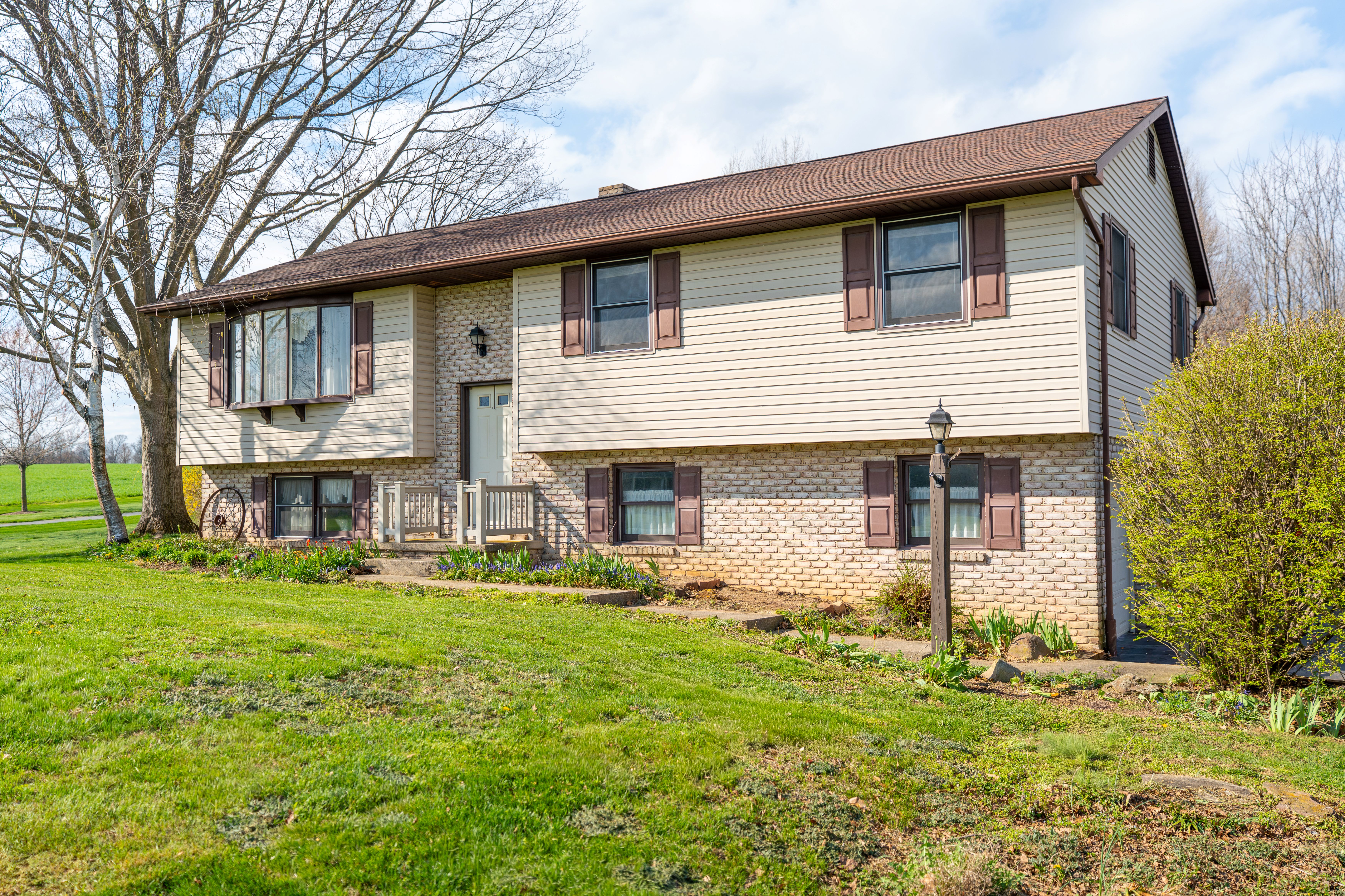 Welcome to 181 Bomberger Rd, a well-maintained bi-level residence offering comfortable living spaces and thoughtful details throughout. A welcoming foyer with tile flooring and a stylish pendant light sets the tone, with carpeted stairs leading to both the main and lower levels. The main level features a functional kitchen with tile floors, Corian countertops, chair rail detailing, built-in shelving, and appliances, including a Whirlpool refrigerator and GE microwave and range, plus a dishwasher. An adjacent dining area is highlighted by a chandelier and sliding glass door that opens to a rear wood deck, ideal for everyday dining and entertaining. The living room offers a spacious layout with plush carpeting and a large front-facing bay window that fills the space with abundant natural light. Down the hall, you will find a coat closet, linen closet, and a full bathroom with tile flooring, tiled tub and shower, and solid surface vanity with dual lighting pendants. This bath also connects to the primary bedroom, which includes carpeting, a walk-in closet with crawl space access, and ceiling lighting. Two additional bedrooms feature carpeting, wallpaper accents, and folding door closets. The fully finished lower level expands the living space with a generous family room complete with recessed lighting, two ceiling fans, and wood-paneled walls. This level also includes a combined laundry room and full bath with stall shower, utility sink, and tile flooring, along with additional storage. Direct access to the two-car garage provides convenience, with built-in shelving, cabinetry, a workbench, ceiling lighting, and a utility closet, plus a side door for exterior access. Exterior features include a paved driveway, storage shed, and a combination of brick and vinyl siding. Additional highlights include window treatments, baseboard heating, and central air conditioning for year-round comfort. Located within the Warwick School District, this home offers convenient access to nearby parks, local shops, dining, and everyday amenities, along with proximity to major roadways for easy commuting while still providing a peaceful residential setting with access to outdoor recreation. Schedule your private showing today!