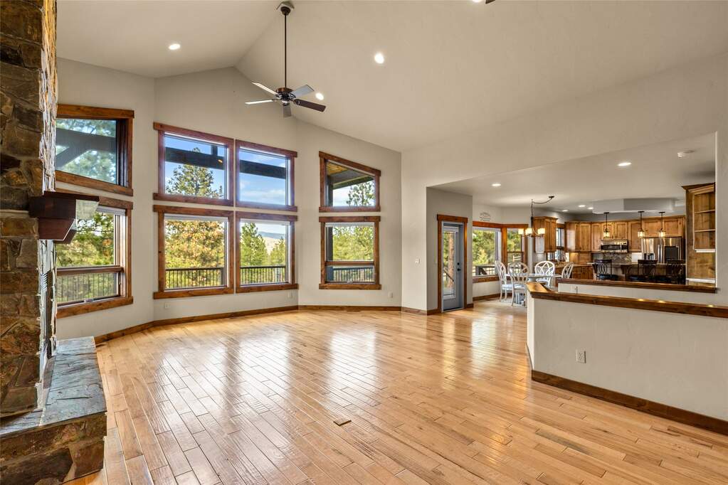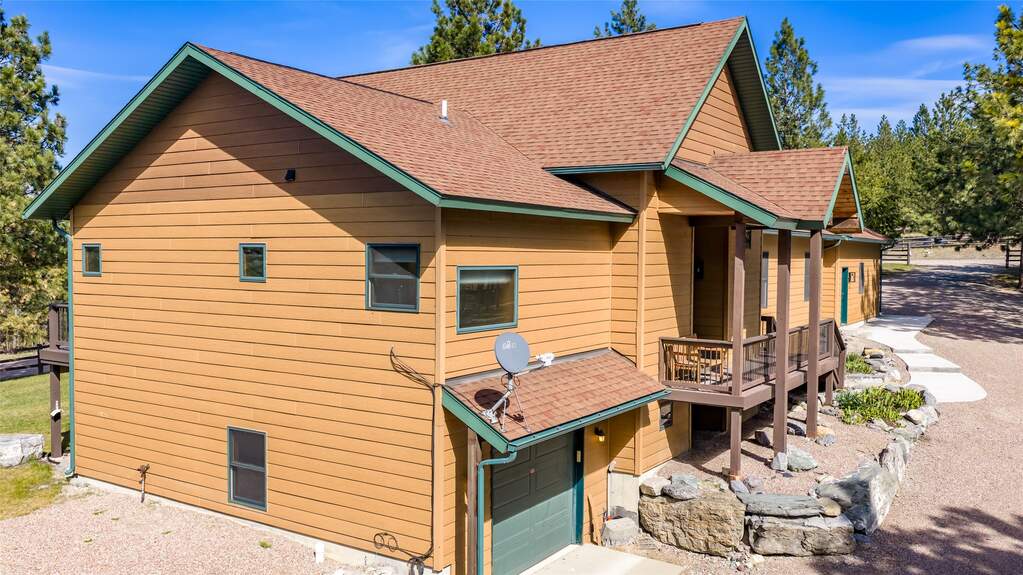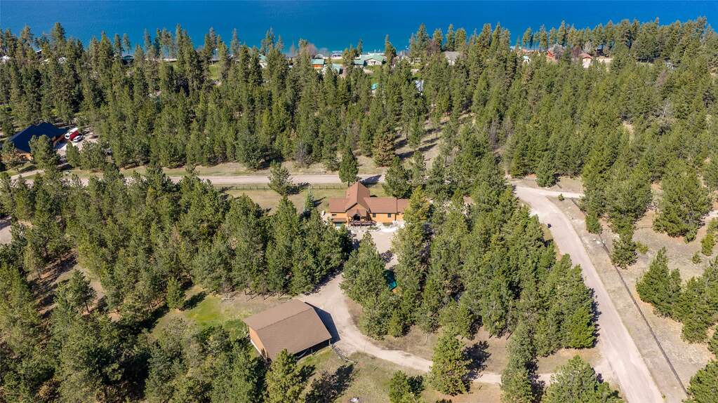 Welcome to your private retreat! This beautifully crafted 3,514 sq. ft. home offers the perfect blend of comfort and functionality; all set on 9.87 treed acres-fenced and ready for horses. Step inside to soaring vaulted ceilings, expansive windows, and a stunning rock fireplace that anchors the main living space. The home features real hickory wood flooring, beautiful tile work, solid wood doors, and an open-concept floor plan designed for both everyday living and entertaining. The kitchen is a true centerpiece, showcasing rich knotty alder cabinetry, granite countertops, and a thoughtfully designed layout that balances style and function. This spacious home includes 3 bedrooms and 3 bathrooms, along with a versatile downstairs media room or home office-ideal for remote work, hobbies, or relaxation. An attached 3-car garage adds convenience and storage. Outside, the property is equally impressive. A new 32x48 shop with lean-tos provides ample space for equipment, vehicles, hay storage, or projects. Additional features include a separate shed, concrete pad for dog kennels, fenced garden area, firepit, full RV hookup, and established landscaping. Located just 2 miles from Big Arm State Park, enjoy easy access to Flathead Lake for boating, fishing, and recreation. You're also within reach of some of Montana's most iconic destinations, including Glacier National Park, the National Bison Range, and Blacktail Ski Resort. Every detail of this property has been carefully planned and executed with quality in mind-offering privacy, space, and the best of Montana living.