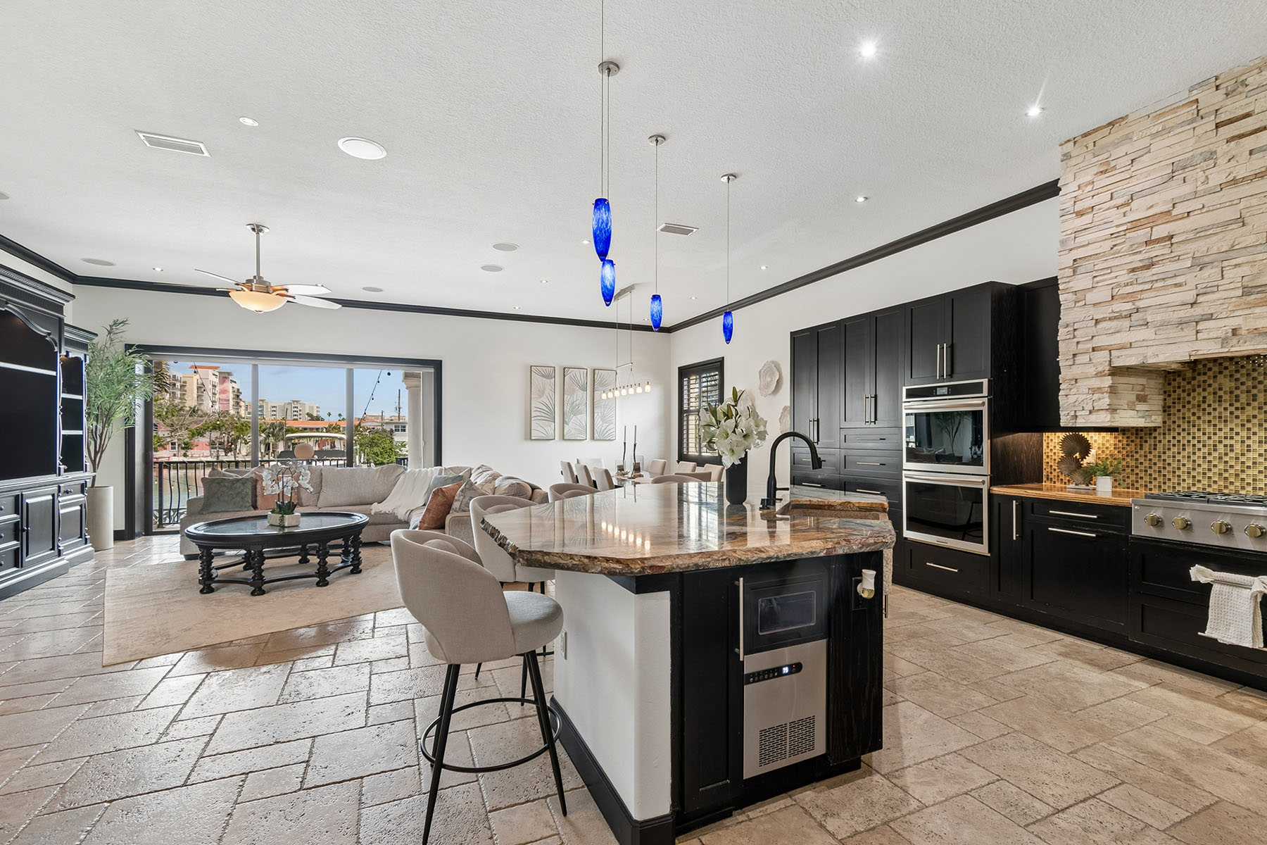 A rare opportunity is just moments from the sugar sands of Clearwater Beach. Welcome to 108 Bayside Drive. Perfectly positioned on the water and moments from the beach, this four-bedroom, three-full-bath, two-half-bath residence offers a lifestyle that buyers are actively searching for and rarely find in one property. Arrive at the beach in minutes, then return home to your own private waterfront retreat. Designed for both everyday living and effortless entertaining, the home flows seamlessly to the outdoors, featuring a private pool, fully equipped outdoor kitchen, and two private boat docks, plus an additional dock for jet skis making it just as easy to spend the day on the water as it is to unwind at home. Inside, natural light and water views create a bright, inviting atmosphere, while solar panels provide energy efficiency and long-term value. The garage with a car lift adds a unique advantage for car enthusiasts or those seeking additional functionality. This is the combination buyers wait for: a minutes-to-beach location, waterfront living and the ability to enjoy both. 108 Bayside Drive offers a lifestyle that is difficult to replicate, with spacious living across both levels of this beautiful two-story home and even harder to find available.