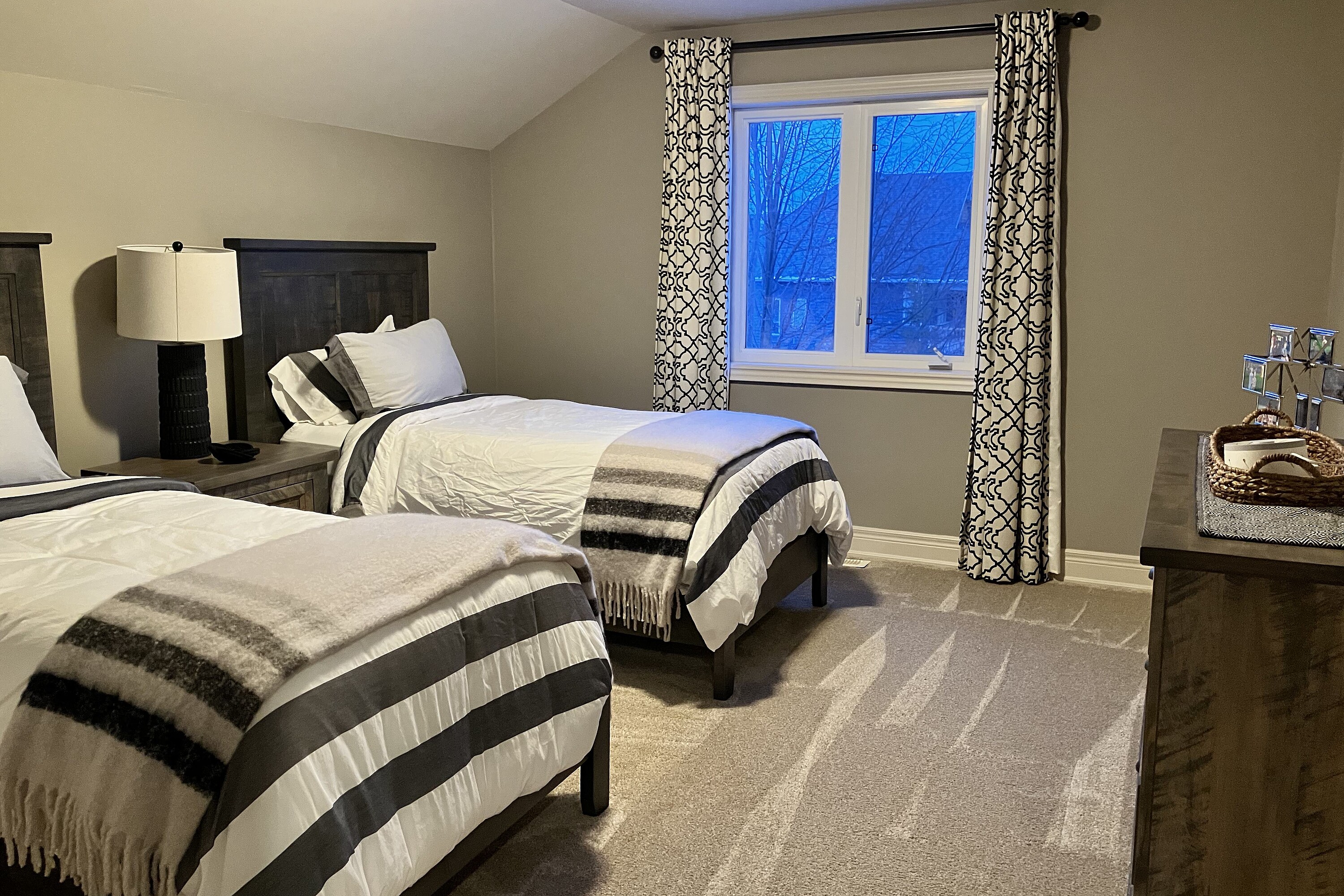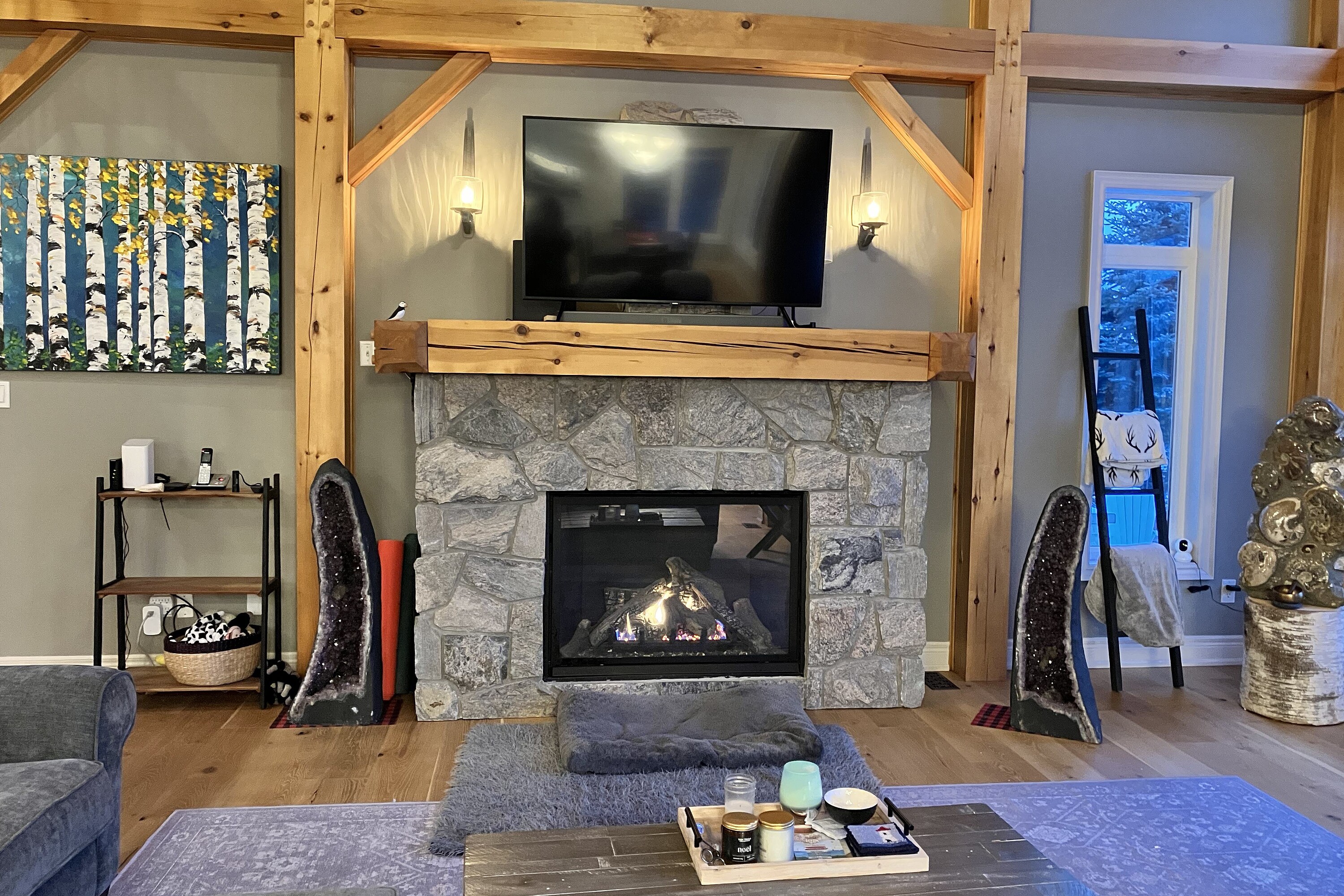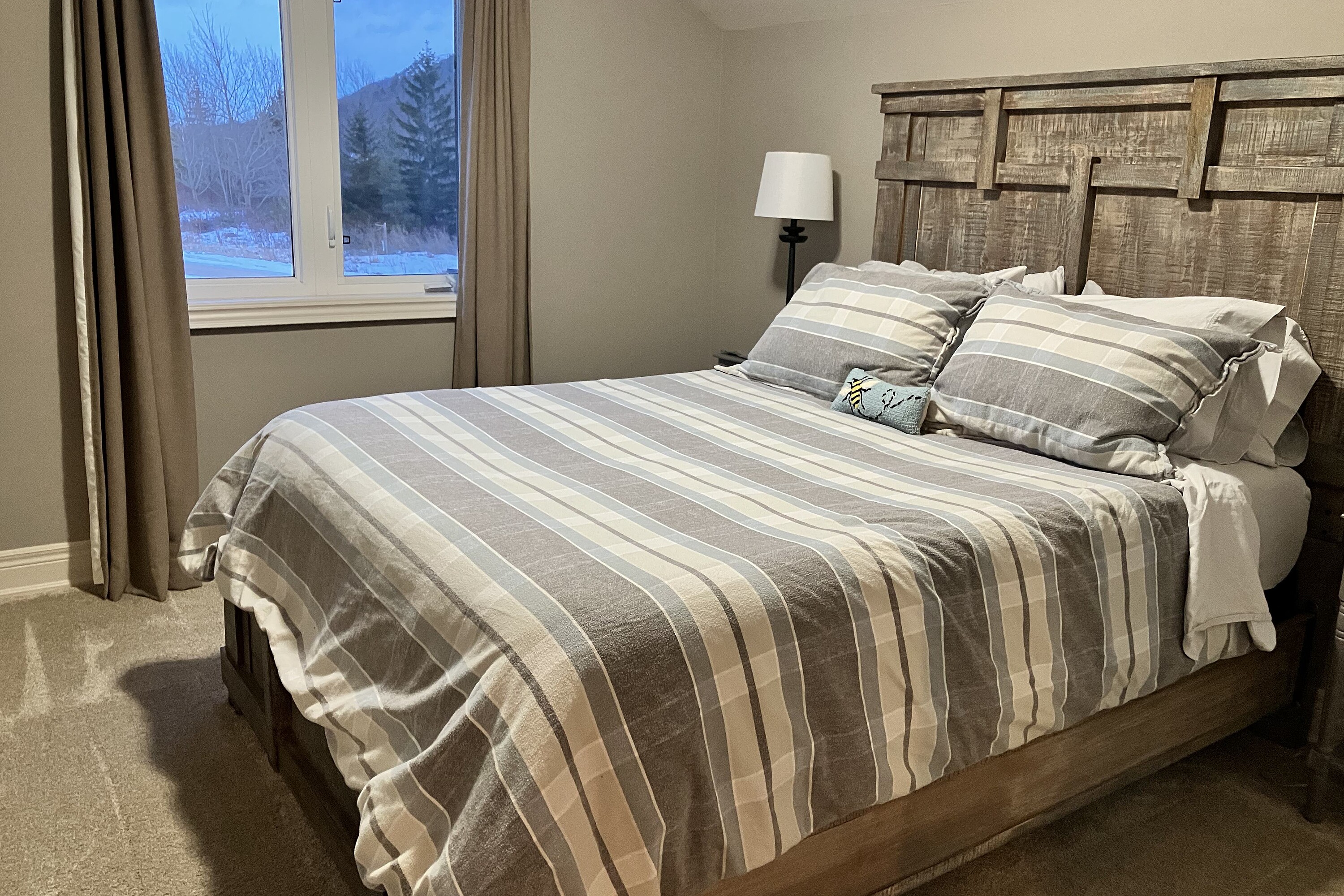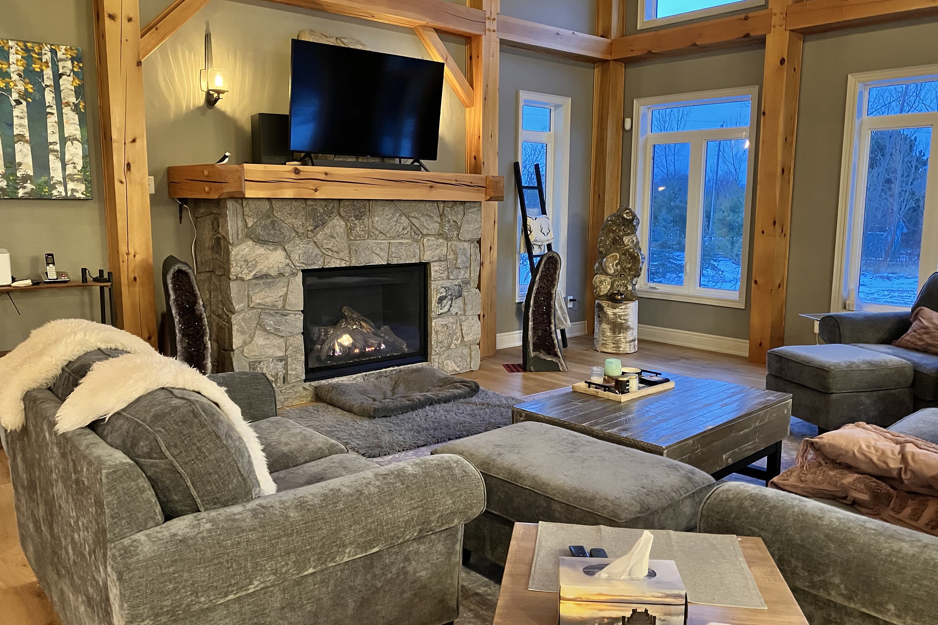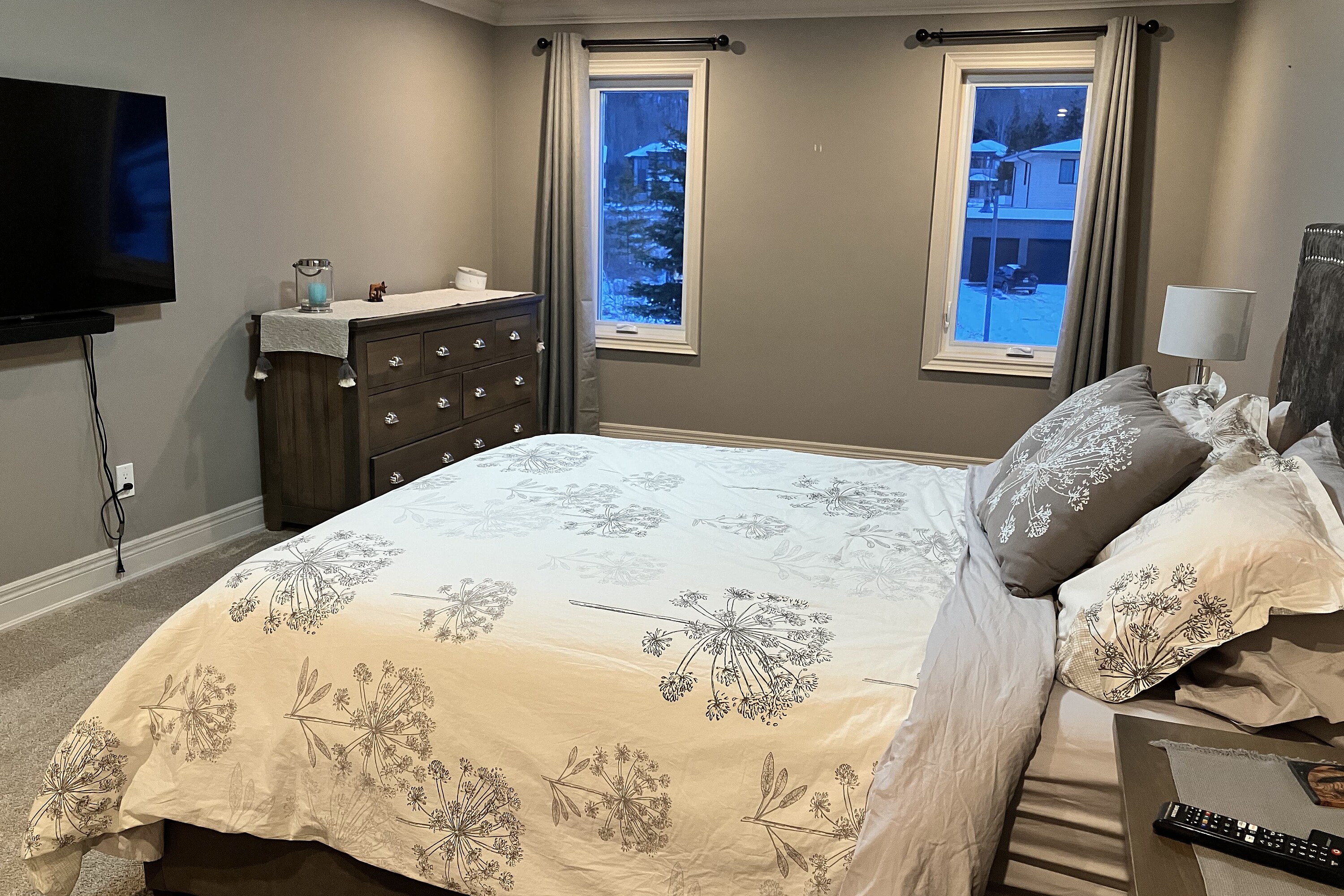 Relax in this spacious, executive chalet, with stunning Escarpment views and short drive to area recreational, summer activities, including beaches and golf courses. Chalet boasts soaring cathedral ceilings and warm wood finishes in the Great room, with large stone, gas fireplace to cosy up to on chilly evenings. Breakfast area with views, and kitchen with stone counters, gas stove and spacious island make this a comfortable and convenient space for entertaining. Formal dining room also on this level, along with powder room and large mud/laundry room with access to garage. Grande Primary bedroom suite on main level with large walk-in closet, King size bed; seating area with large screen TV and four piece ensuite. Office also on this level for those who need to work remotely. Upstairs you will find three generous bedrooms; queen bed and ensuite; twin bedroom; queen bedroom and additional family bathroom. The basement is finished with TV and relaxing area, with large sectional. And, additional three piece shower room and double Murphy bed for those additional guests. 50% deposit on full rental amount upon signing Lease Agreement, balance plus utility/damage deposit of 4000 (depending upon length of rental) paid three weeks prior to occupancy along with proof of liability insurance. If occupancy is less than three weeks from signing, full payment of rent, plus utility/damage deposit are due upon a fully signed lease agreement. Well behaved dog is acceptable. Tenant has use of bikes; SUP's & kayaks in garage. Minimum rental period of three months is preferred. Tenant will have parking privileges at area waterfronts ie Northwinds Beach, Peasemarsh Nature Reserve, Lora Bay Park, Bayview Park, Council Beach, Delphi Point Park and Little River Park. Details will be provided prior to occupancy.