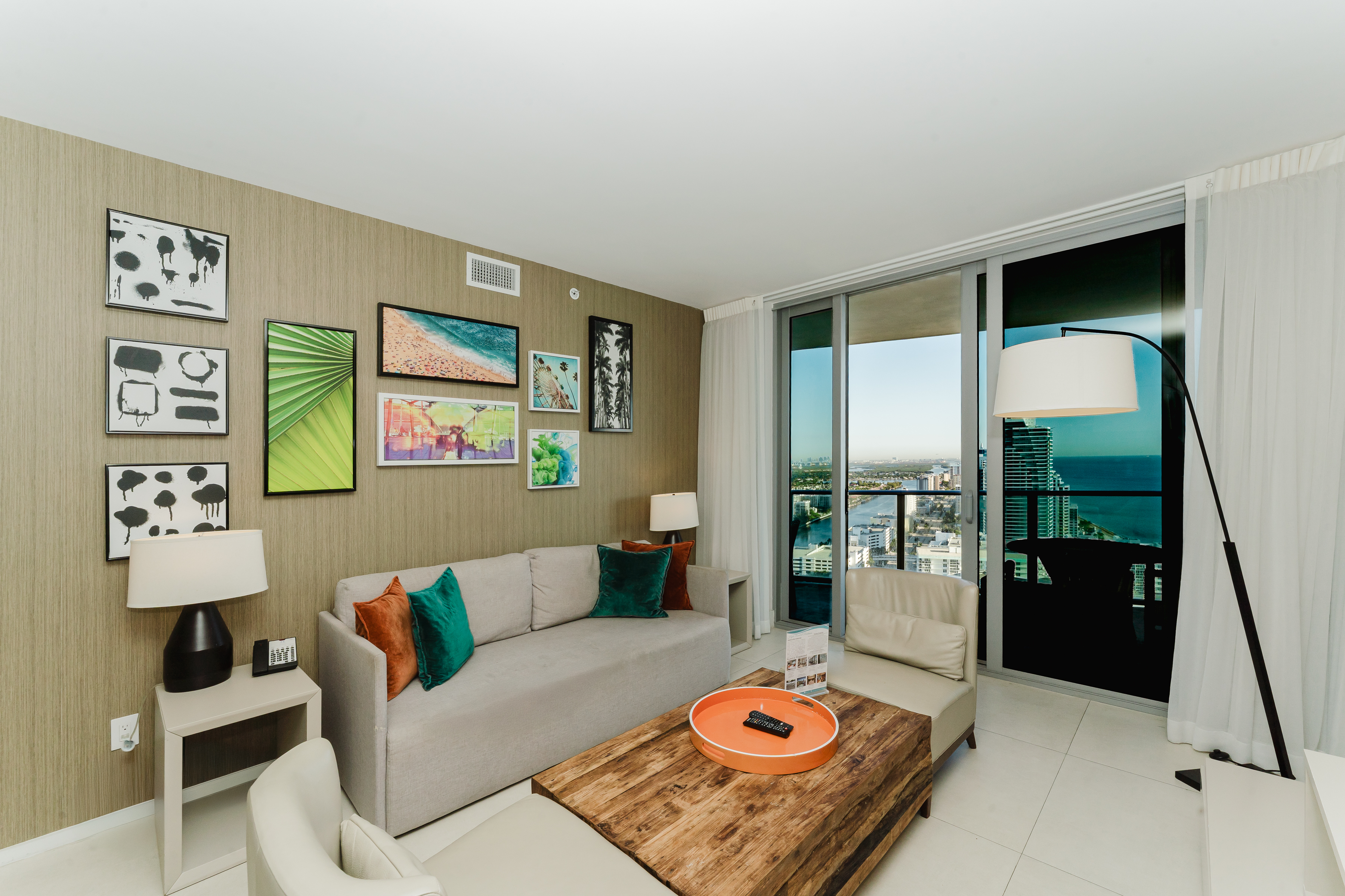 Turn-key oceanfront income-producing residence located directly on the sand at LYFE Resort and Residences. This high-floor 2-bedroom, 2-bath unit on the 30th floor offers breathtaking panoramic ocean and Intracoastal views, extending all the way to Fort Lauderdale, with spectacular scenery both day and night.Offered fully furnished and ready for immediate use or rental, the unit features approximately 1,275 SF of interior space and 1,590 SF total, including an oversized private terrace designed to maximize the views and outdoor living experience.The Resort allows unlimited short-term rentals (minimum 2 nights), making this a true income-generating asset. Owners have full flexibility to self-manage (Airbnb, etc.) or use one of the multiple available property management options.The residence features a modern open layout, floor-to-ceiling windows, and a bright living area that seamlessly connects to the balcony — a key driver for high occupancy and premium nightly rates.Enjoy a full-service resort experience including a state-of-the-art fitness center, luxury spa with salon services, heated oceanfront pool with exceptional ambiance, and a high-end on-site restaurant.A rare opportunity to own one of the best positioned high-floor units in the building — combining premium views, full operational flexibility, and strong rental potential.Strong occupancy and premium nightly rates driven by exceptional views, location, and full-service resort amenities.