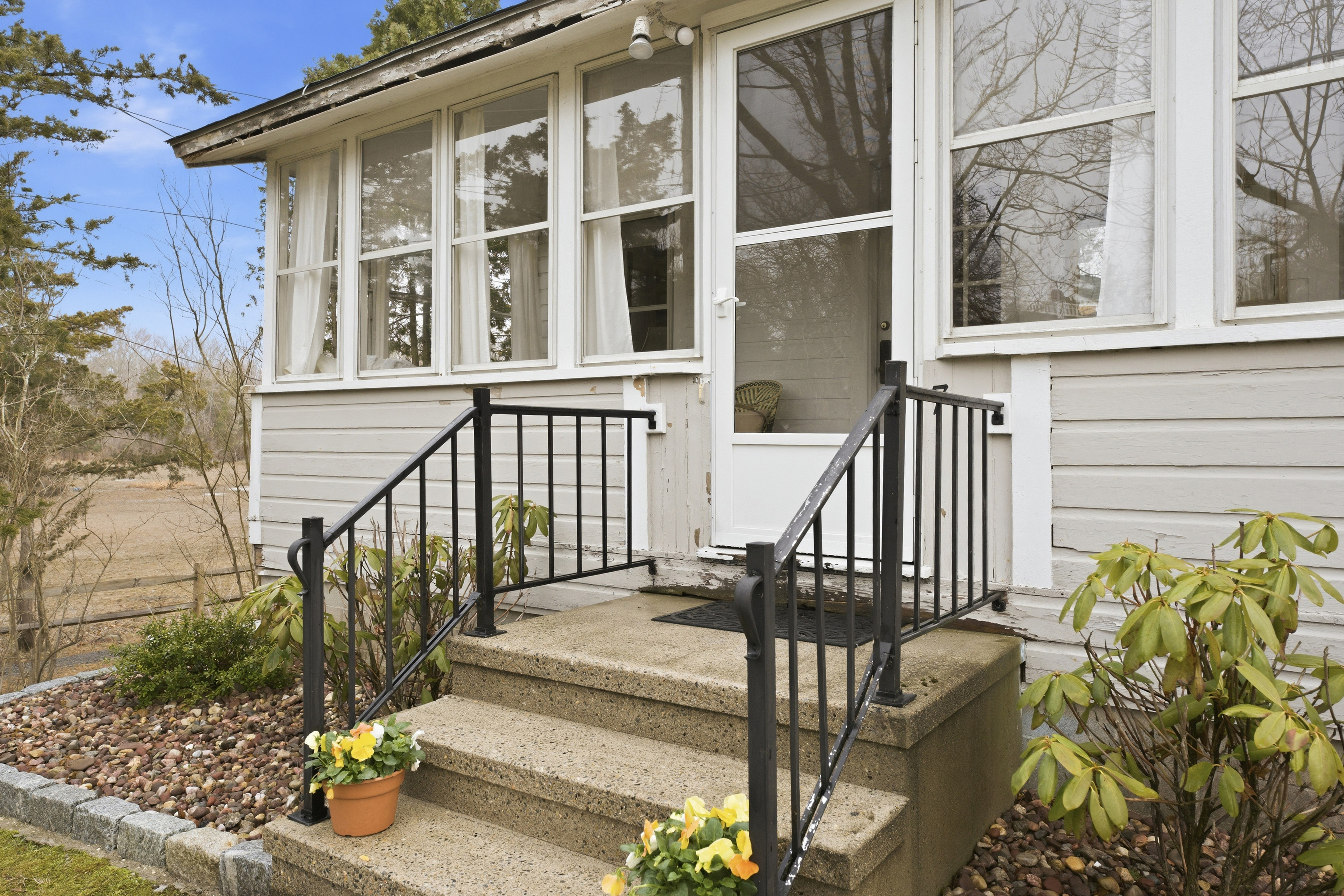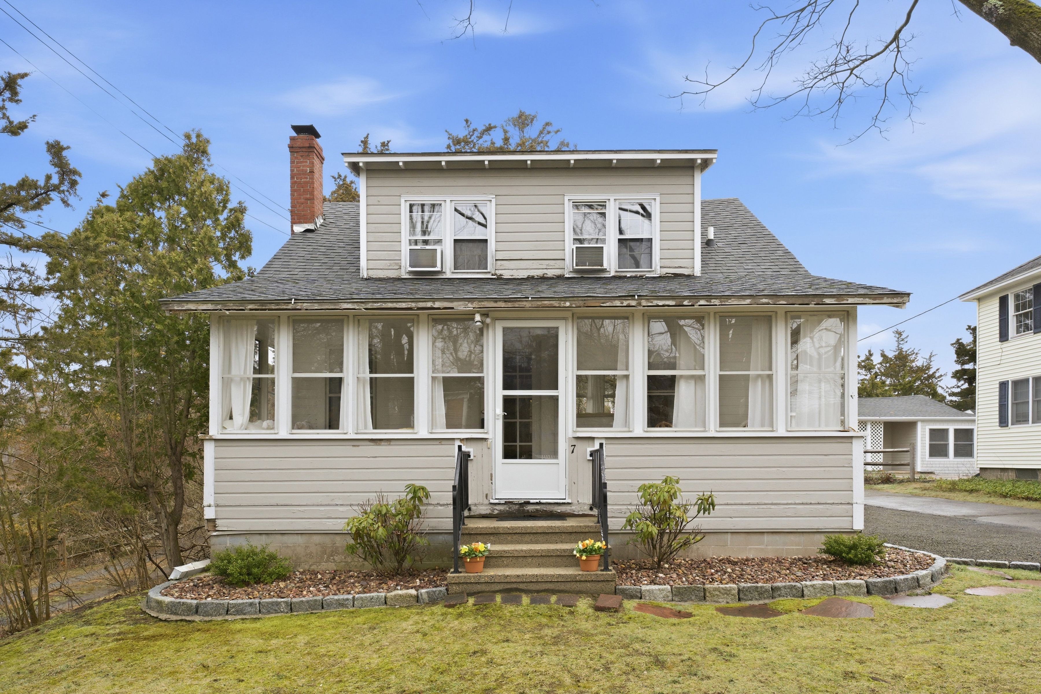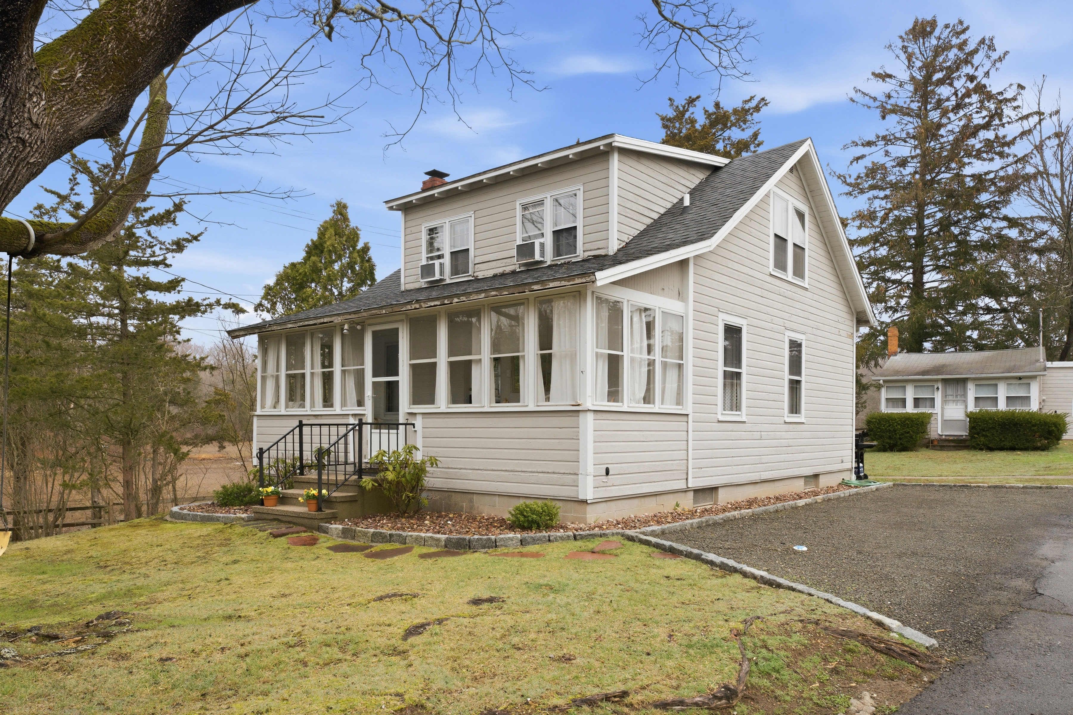 Discover a hidden treasure in one of Madison's finest neighborhoods, featuring vintage bungalow charm. A bright and welcoming sun room, enhanced with baseboard heating, offers a serene space to relax in every season. The main floor includes a large combined living and dining room with stunning wood floors and a wood burning fireplace. Off of the bright and functional kitchen you will find a full bath, while the second floor houses a half bath alongside the bedrooms. The large unfinished basement is a real bonus and remarkably dry. An adorable seasonal guest cottage offers garage and storage options, complemented by lovely views of the salt meadow. This is the perfect spot to build lifelong memories. With two outdoor showers to rinse the sand off, great off street parking, sweet backyard between dwellings, and just 550 steps to the most beautiful beach in town, you can expect visitors. This property holds great promise for its next owner-explore the possibilities!