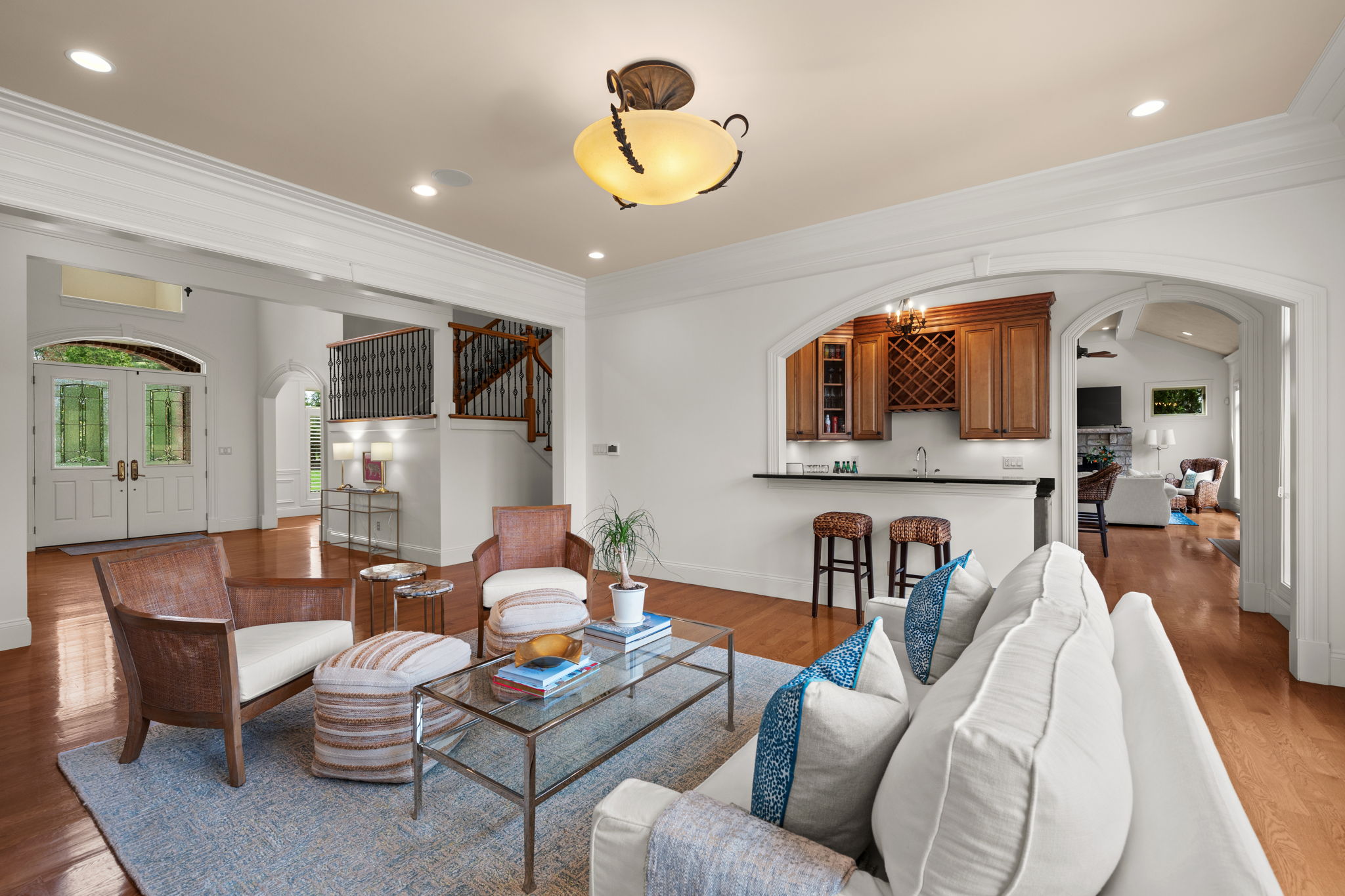 This beautiful custom home right in the heart of Ladue, has over 7000 total square feet of refined living space. Built in 2007, this expansive residence features 5 spacious bedrooms and 5 full baths and 2 half baths. As you enter the grand two-story foyer, you are greeted by a view into the welcoming family room and flanked by an oversized dining room and an inviting office. The main level also features the primary suite that boasts two closets, a chef’s kitchen that adjoins the hearth room which opens to a deck, and a spacious laundry room. The second level features three generous en-suite bedrooms and a convenient second laundry room. The lower level elevates the home’s luxury appeal with a family room, game room, full bar, sauna, additional half bath, a 5th bedroom, and a full bath that includes a steam shower. Situated on a large, private lot with lots of off-street parking, the outdoor space is a true retreat—complete with a beautiful in-ground pool and relaxing hot tub, perfect for summer gatherings. An added bonus is the 3 car garage has a car lift. This is a rare opportunity to own a well-appointed home in one of Ladue’s most desirable locations, combining space, privacy, and resort-style amenities.
