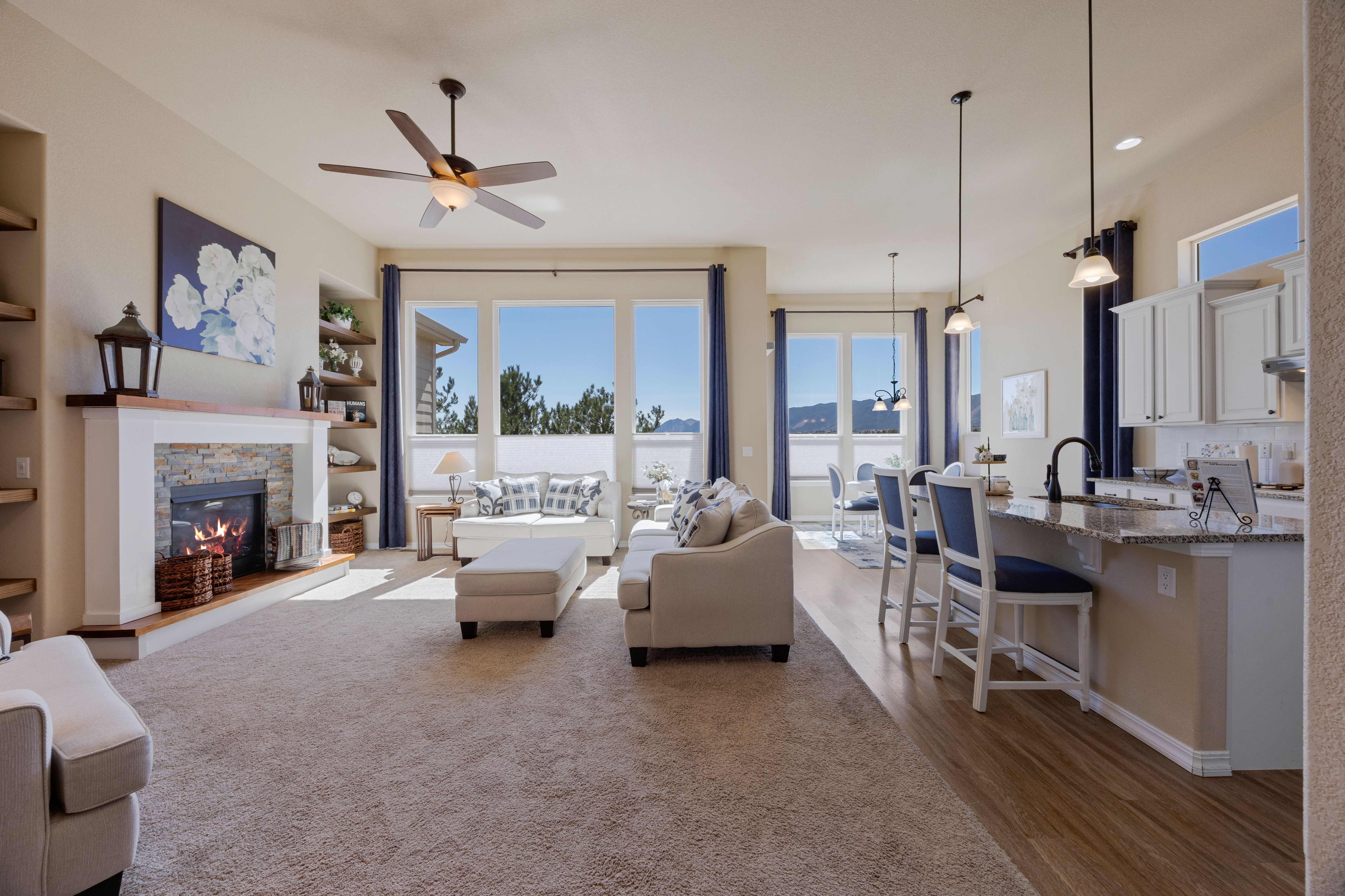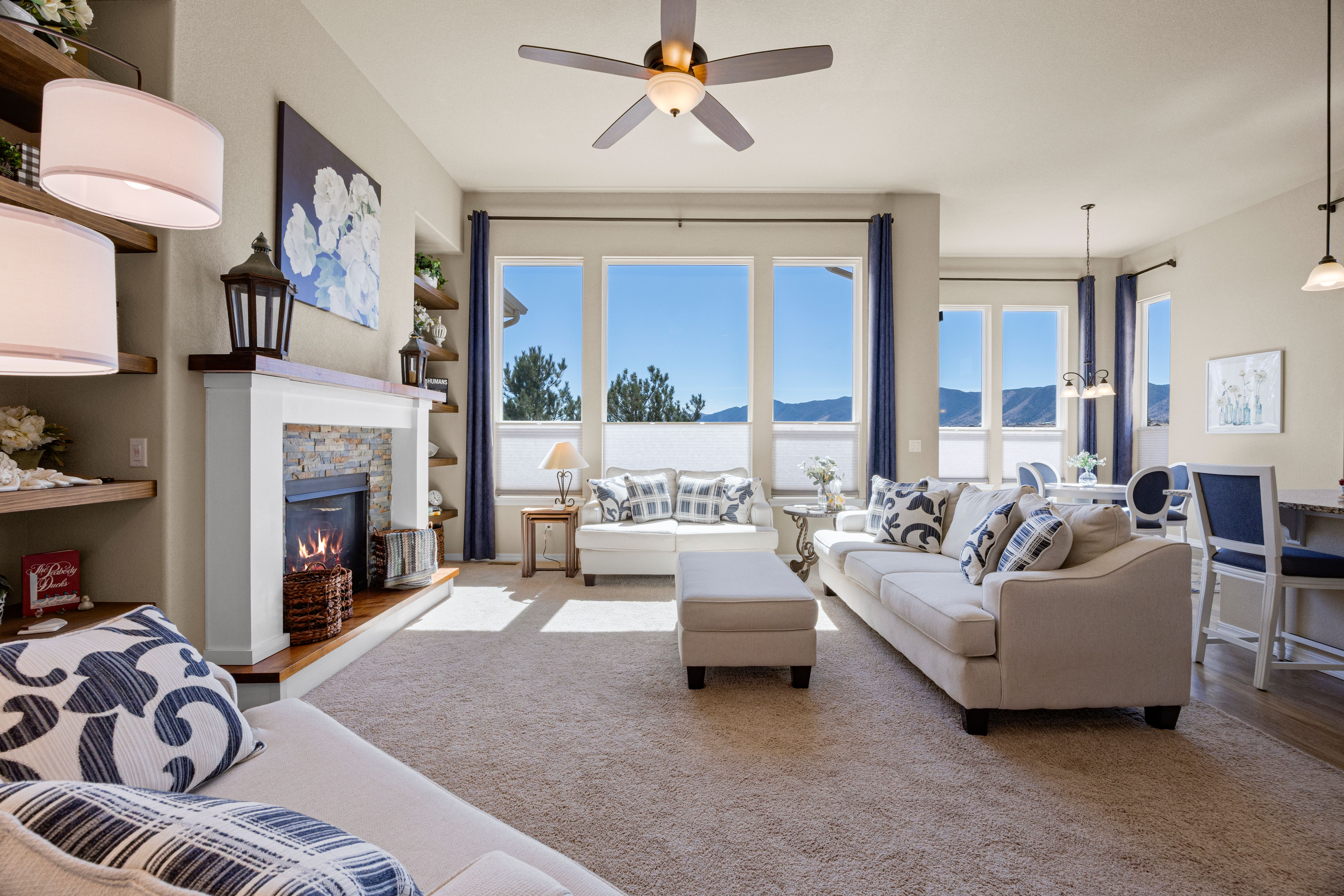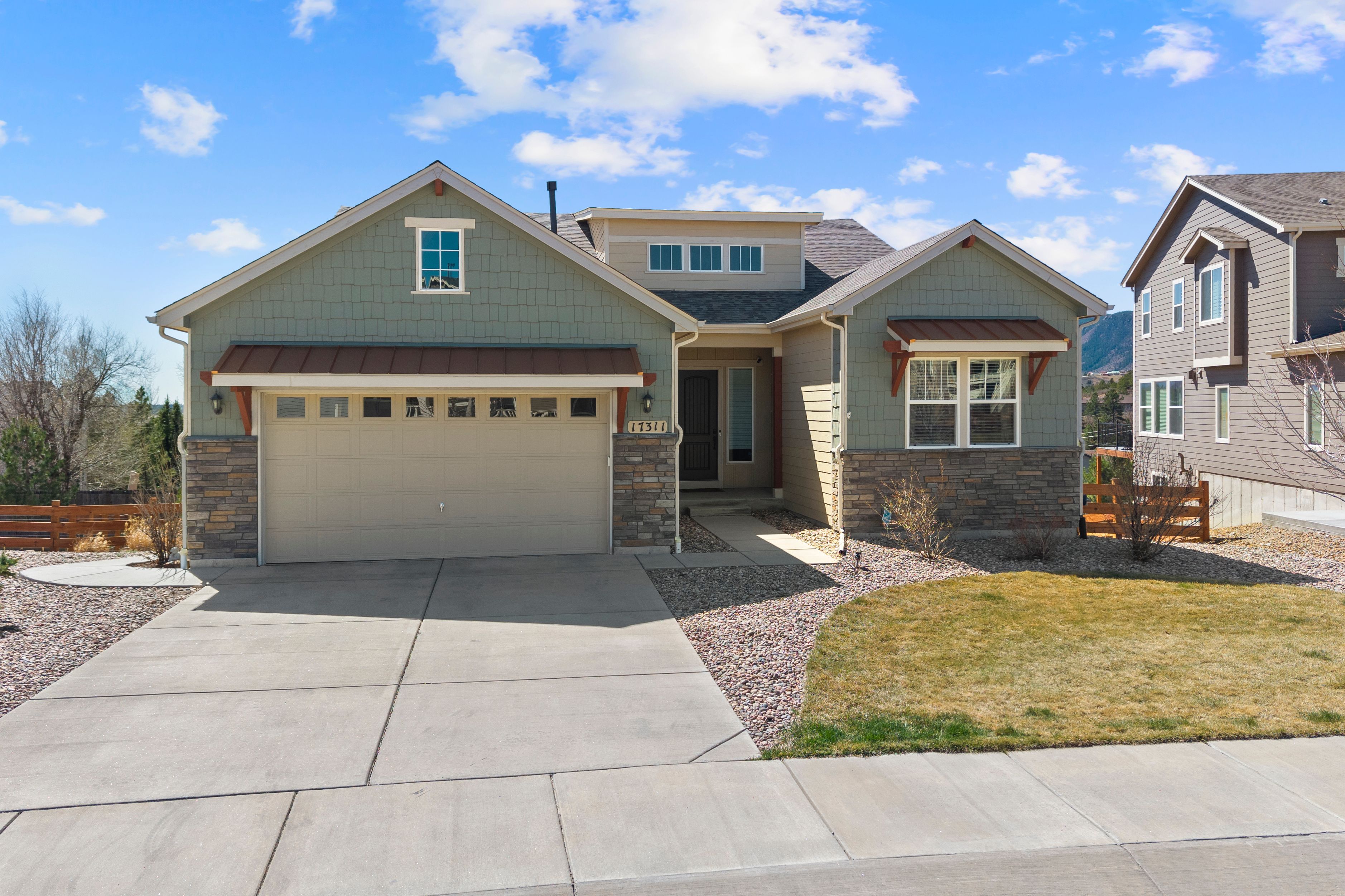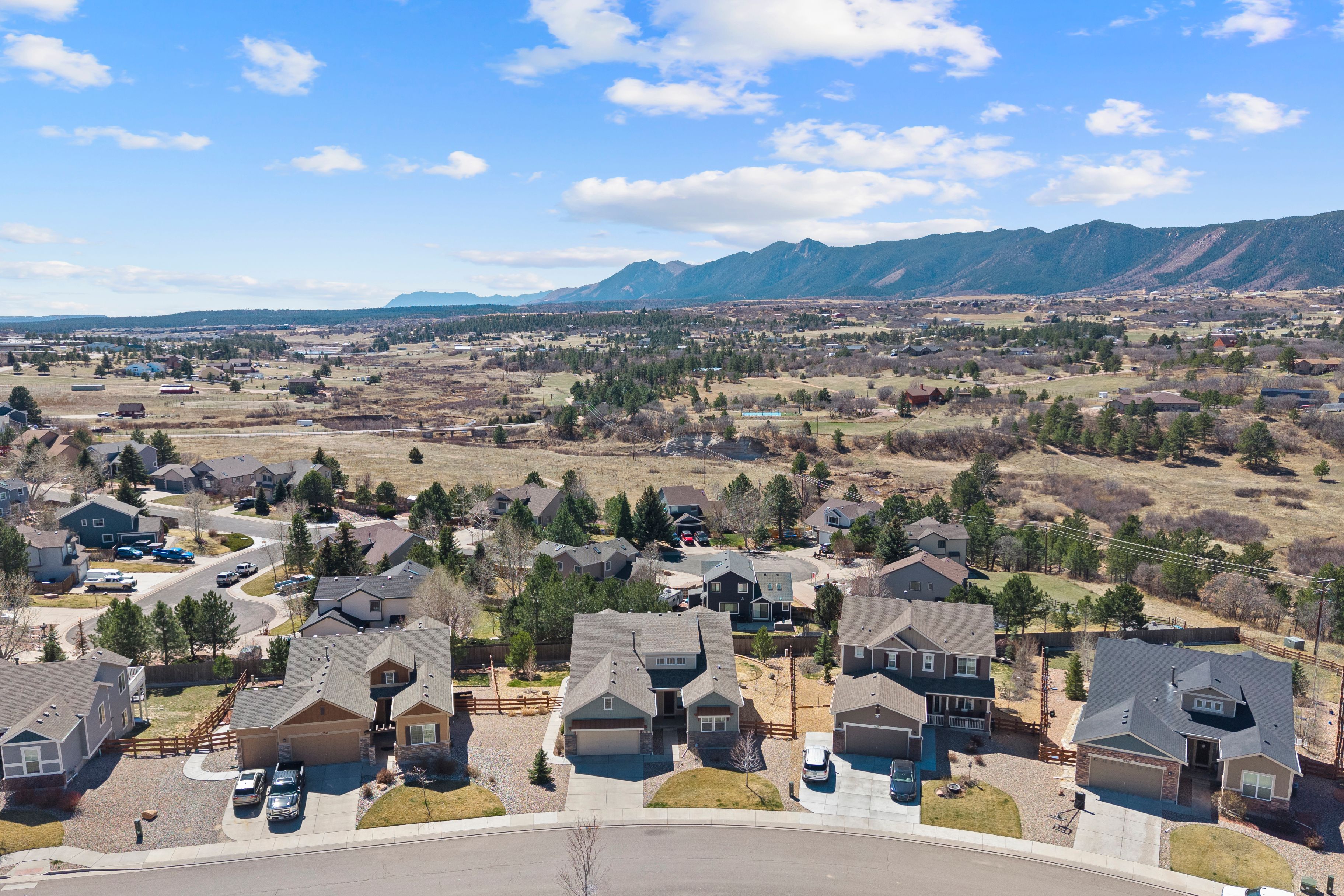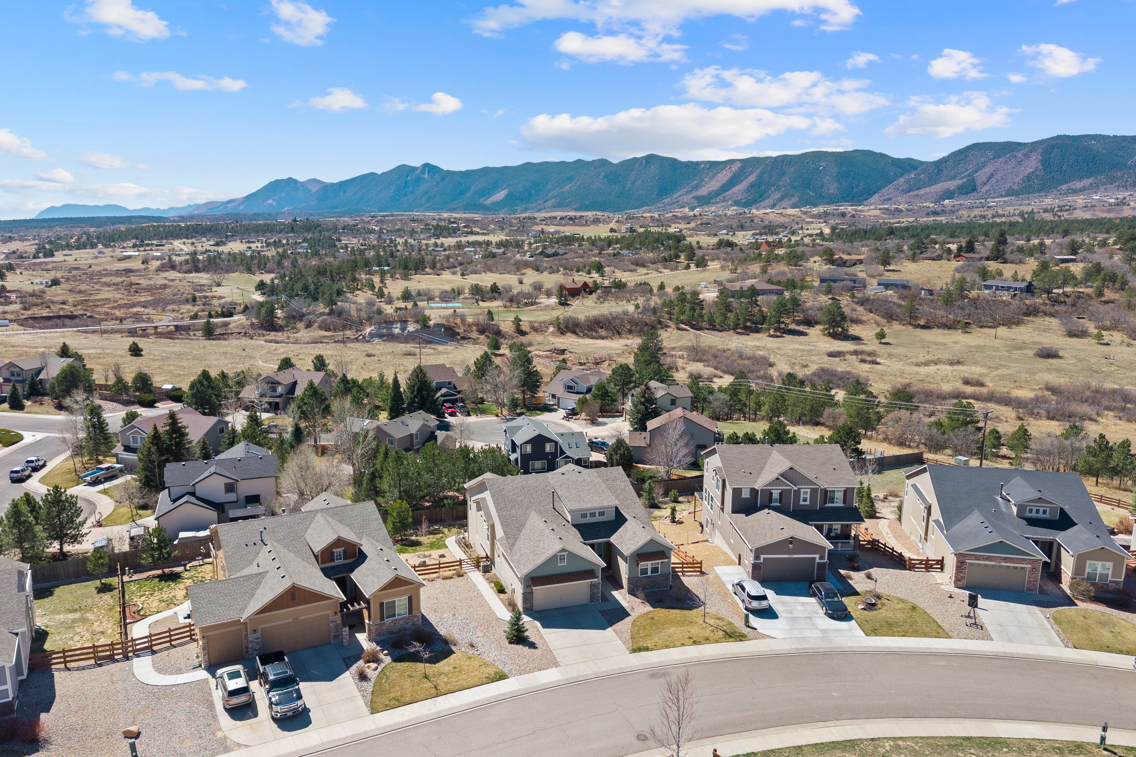 This OPEN, SPACIOUS, UPGRADED, WALKOUT Rancher is Meticulous and with VIEWS!!! Yes you have it all. It is like a little piece of Colorado. We are Tucked away on a Cul De Sac and it is so peaceful and quiet that you can hear the leaves rustle in the breeze. This house has everything from it's 5 bedrooms to the huge 7 ft Butlers pantry that is a breeze way to the formal dining room. The Gourmet kitchen glows of upgraded granite with a super breakfast bar working Island and counters and cabinets galore. The walk in pantry is hidden in the butlers pantry. We have stainless steel appliances to include upgraded gas cook top, Hood Vent, double ovens and Refrigerator. The kitchen also accommodates an eat in area for those informal moments and walks out to a composite deck where you can relax with a morning coffee and watch the sun rise. Decompress in the evening with your favorite beverage under the stars of the night sky. The Great room has views and is spacious and has a cozy stone fireplace with a natural walnut hearth and built in shelving. Retire to your primary suite with it's attached bath and sink into a hot bubble bath. There is a bedroom and full bath in the front corner of the house. If entertaining is your thing, well look no further. The Massive walk out basement has 3 great bedrooms and full bathroom. The dry bar has a wall of custom shelving great for that book worm. Walk out to a wonderful covered patio where you can enjoy a hot tub in privacy and mountain range views. The yard is like a private little park lush with annual flowers and 4 fruit trees. And all this is just down the street from historic Monument with farmers markets, concerts, quaint shops and restaurants, the lake and trails. Yes peace and tranquility with a small town feel. If you must leave this haven I 25 is just minutes away.