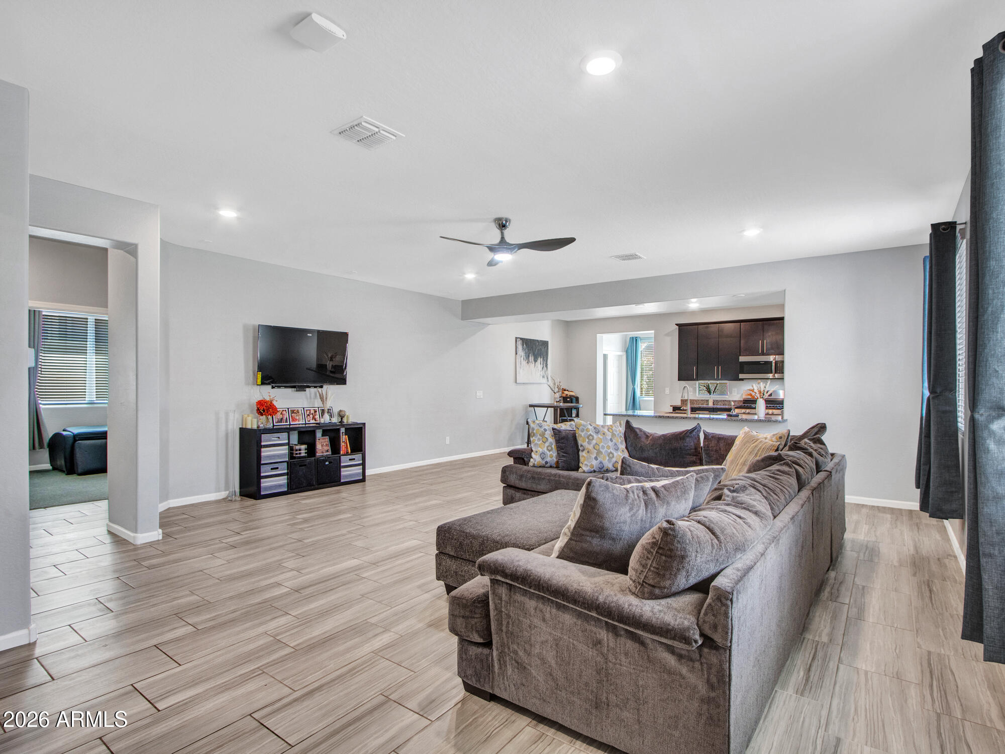 Move right in and start enjoying the Anthem lifestyle in this beautifully maintained 4-bedroom, 2.5-bath home with a dedicated office. The open great room flows seamlessly into a chef-inspired kitchen featuring quartz countertops, stainless appliances, gas stove, breakfast bar, and walk-in pantry. The split primary suite offers privacy and comfort, while the backyard delivers true Arizona living with mountain views, a sparkling pool, built-in BBQ, gas fireplace, and turf play area. Living in Anthem means access to the 63-acre park, Big Splash water park, Olympic-size pool, tennis, pickleball, sports fields, catch-and-release lake, miles of trails, community center events, dining, shopping, and convenient I-17 access.