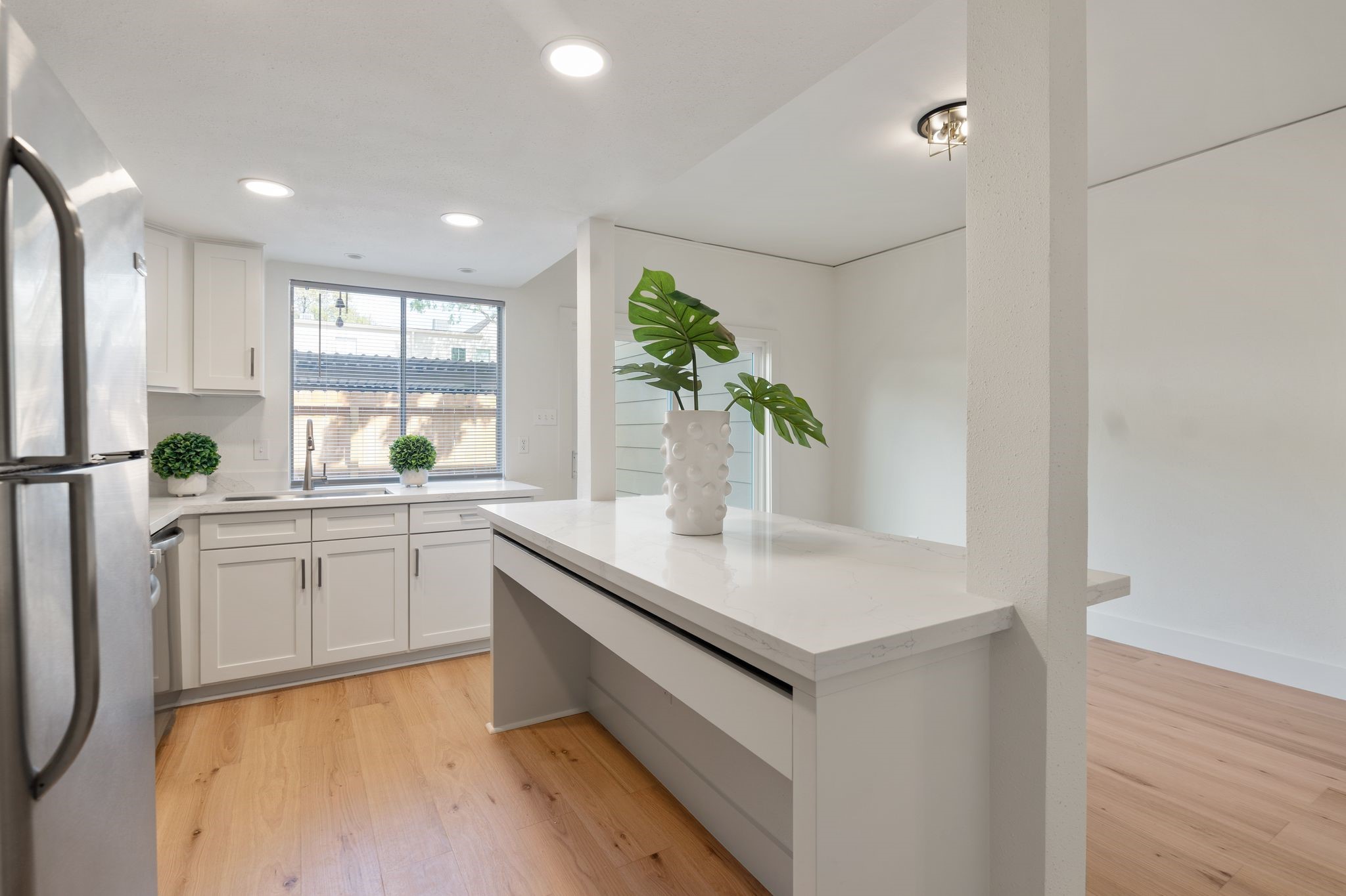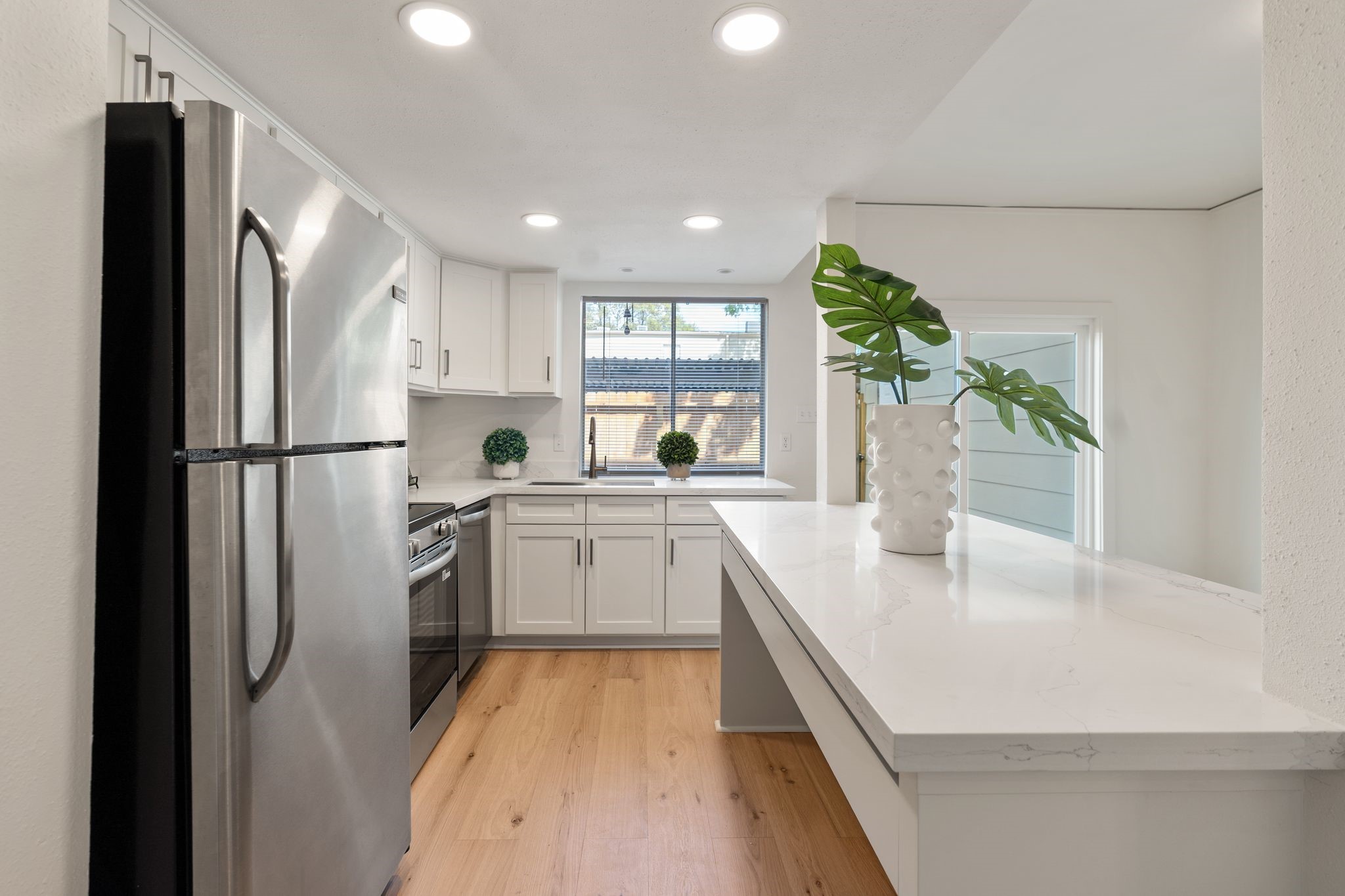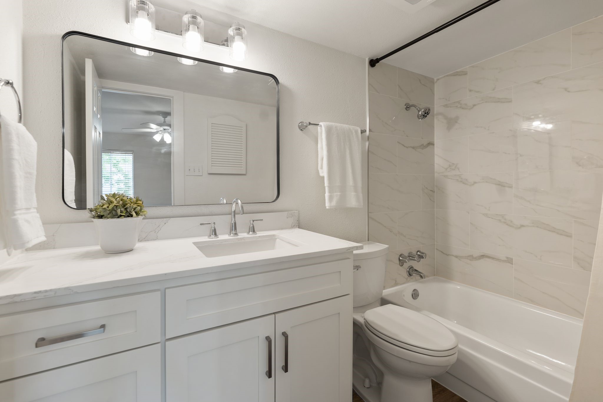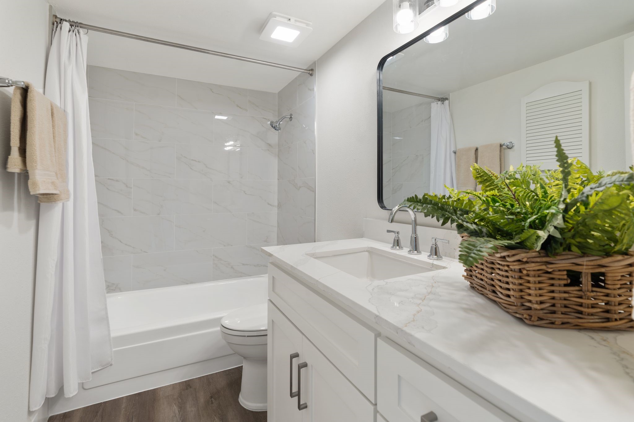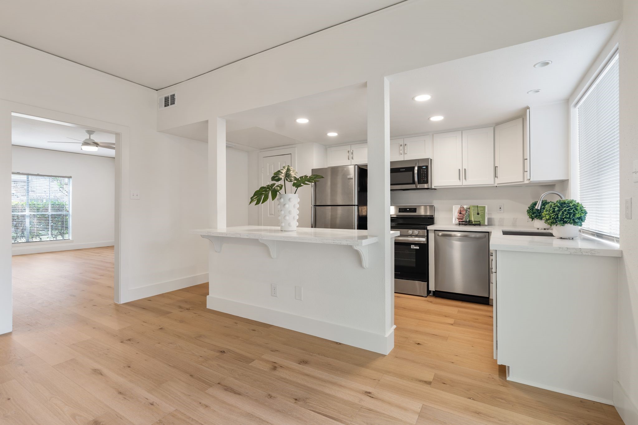 Fully remodeled townhome in a beautifully maintained community, extensively updated in 2026 with timeless finishes and major capital improvements. Highlights include new hardwood flooring downstairs, upstairs carpet, fresh paint, recessed lighting, updated fixtures/hardware, & new roof. Renovated kitchen features updated cabinetry, breakfast island with quartz countertops, and stainless appliances. All bathrooms have been fully remodeled. First floor offers spacious living plus flexible space for study or dining. Upstairs features two oversized bedrooms w/walk-in closets & updated en-suite baths. Private brick patio w/turf, recent fencing, & two reserved covered parking spaces directly behind unit. Pool access steps away. HOA includes water, trash, cable, and more. Low tax rate. Property and improvements did not flood during Harvey. Prime Memorial/Energy Corridor location with quick access to I-10, Beltway 8, shopping, dining, and Spring Branch ISD schools nearby. All info per Seller.