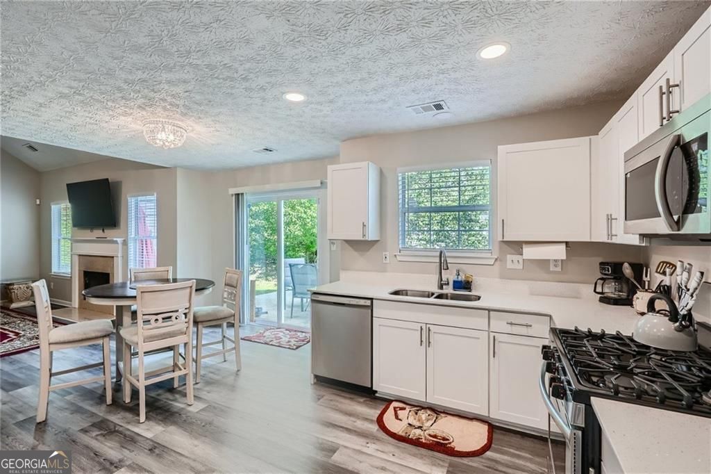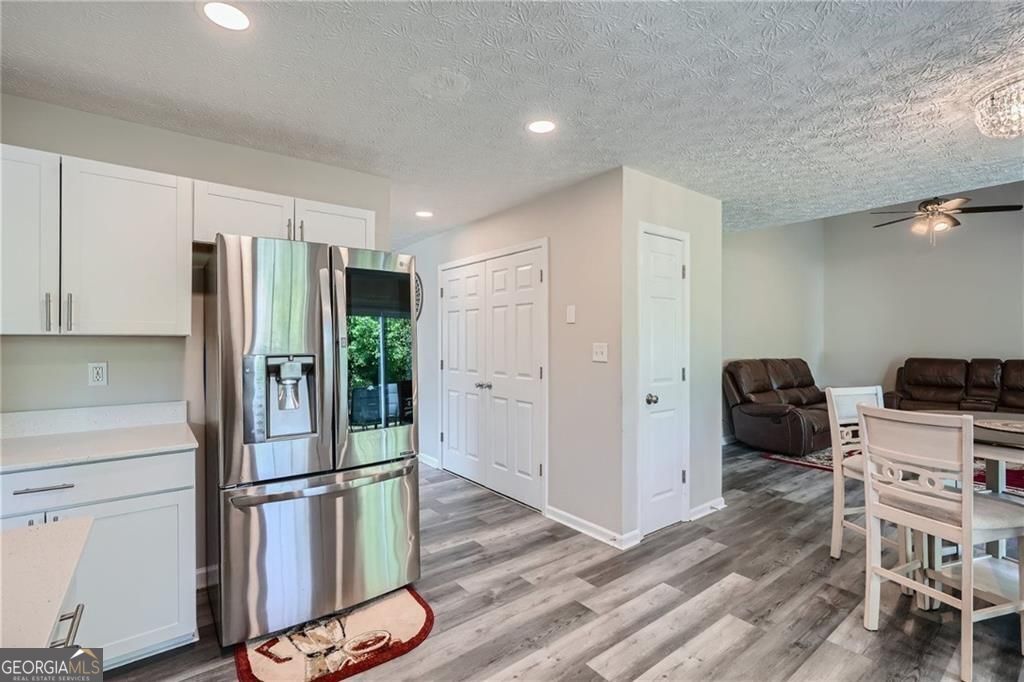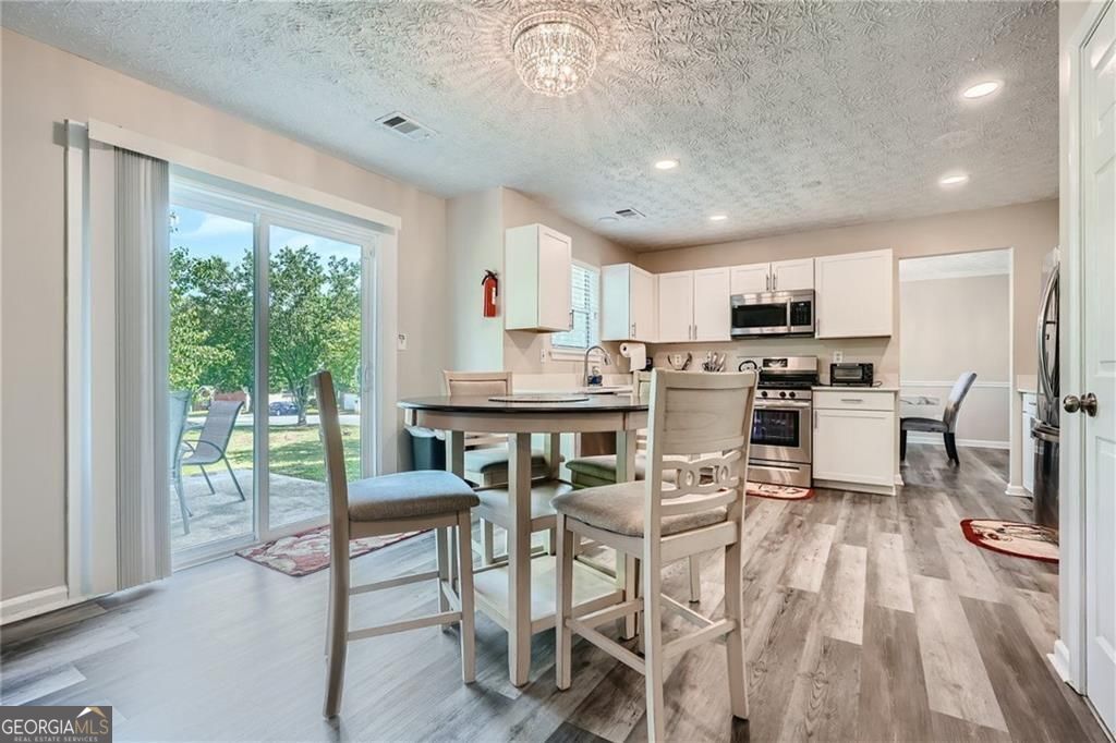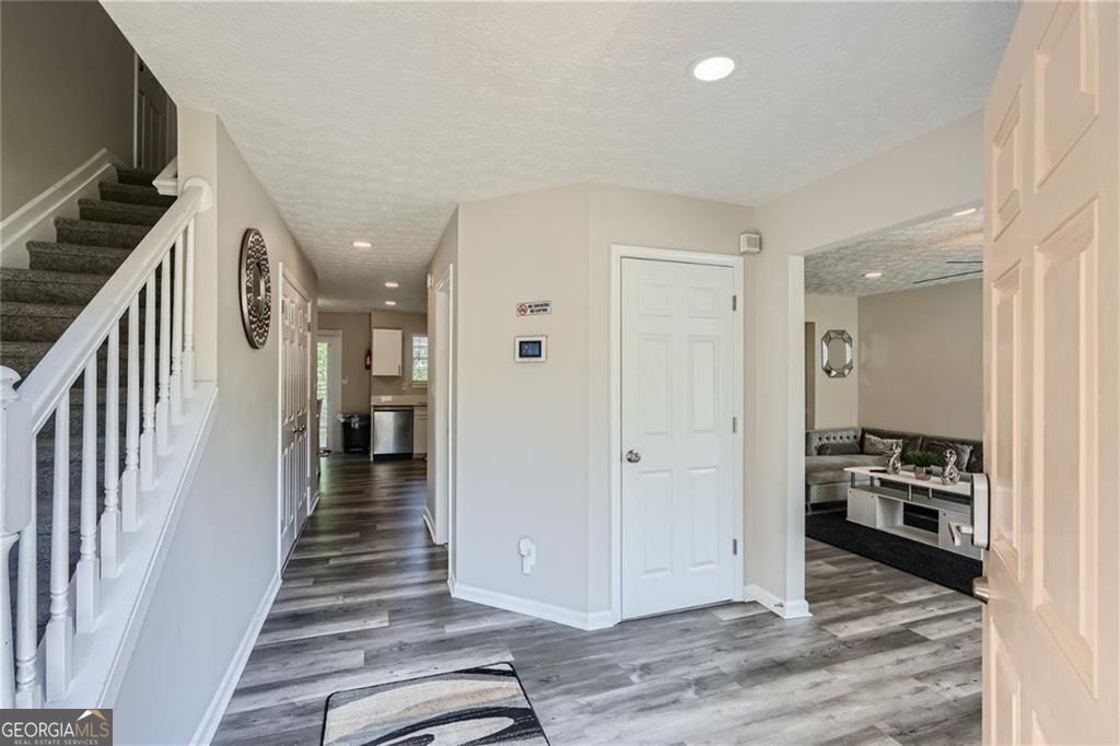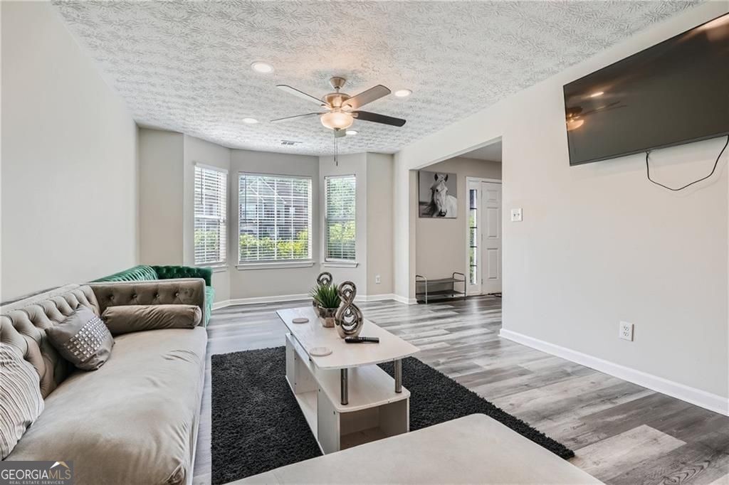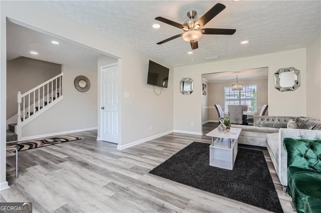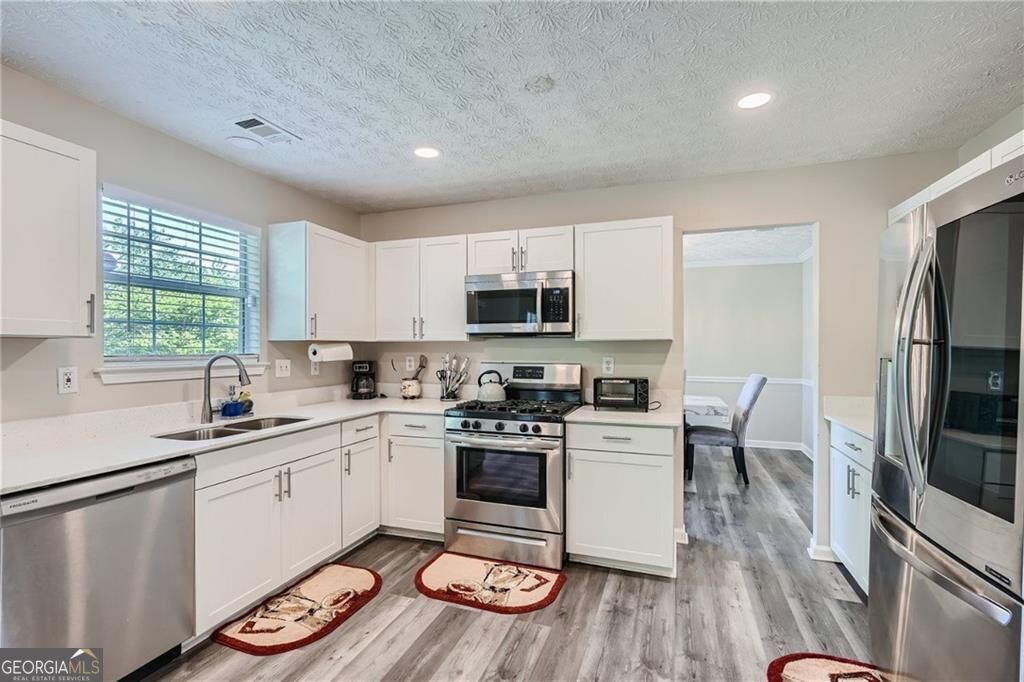 This two-story Ellenwood residence features an open-concept main level with a modern kitchen - including stainless steel appliances, ample cabinetry, and counter space - that connects to a breakfast nook opening to a covered patio and private backyard, plus a separate family room with fireplace and a powder room rounding out the main floor. Upstairs, the primary suite offers a walk-in closet and en suite bath with dual sinks and a dedicated shower, with additional bedrooms and a full hall bath completing the upper level. Easy-care flooring, neutral finishes, and a double-car garage make this home move-in ready. The location adds exceptional value: Panola Mountain State Park - a 1,635-acre preserve and National Natural Landmark just minutes away - offers 25 miles of trails, catch-and-release fishing on Alexander Lake, archery, bike rentals, and ranger-led hikes to a rare granite outcrop. Locally, Ellenwood Park on River Road provides a multi-use field, basketball and tennis courts, a playground, picnic area, and walking trails, with DeKalb County investing over $2 million in new park improvements underway. The Panola Mountain Golf Course, a 27-hole course with scenic views, is also within the community. Everyday needs are covered by nearby grocery stores, pharmacies, and retailers, and the area offers diverse dining along major corridors including local favorites and national chains. Hartsfield-Jackson Atlanta International Airport is approximately 13 miles away - roughly a 20-minute drive - and MARTA bus connections provide a public transit link for commuters. The property falls within the Clayton County Public Schools service area, with East Clayton Elementary, Cedar Grove Elementary, and Cedar Grove High School among the nearby public options; buyers should verify current attendance zones directly with the district. The area is also within a short drive of Clayton State University and the Georgia Archives.