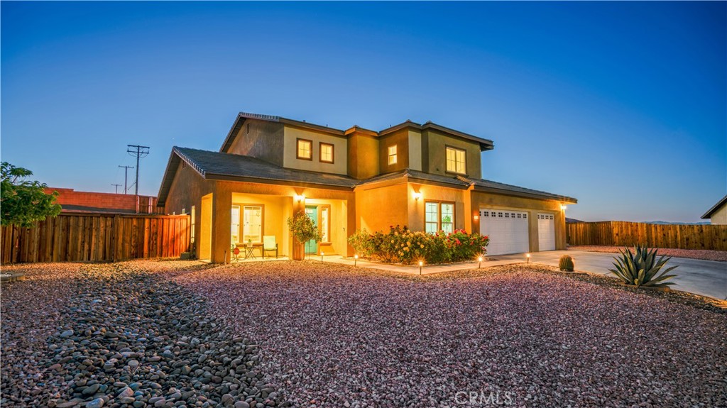 Prepare to Fall in Love! What could be better than a gorgeous, spacious home on the largest lot in the neighborhood? How about FULLY PAID SOLAR - with the seller willing to pay it off at closing with an acceptable offer! As you turn onto Cactus Wren Court, one home immediately stands out. Positioned at the end of a peaceful cul-de-sac, this impressive property sits on a sprawling 0.71-acre lot with a sweeping yard designed for beauty and easy maintenance. The front landscaping features attractive colored rock for water conservation, while blooming roses add a charming touch. Step inside to a dramatic soaring two-story entry, creating a grand first impression for you and your guests. The front living room and adjacent dining area are spacious and filled with natural light from large view windows. The kitchen is thoughtfully designed with beautiful cabinetry, granite countertops, and ample workspace - perfect for gourmet cooking or everyday meals. The oversized island is ideal for breakfast, gatherings, or entertaining. The kitchen opens seamlessly to a separate family room, where a cozy natural gas fireplace creates a warm and inviting atmosphere. Step outside to your private desert retreat. The covered patio features a hot tub for relaxing under the stars. A pathway leads to an above-ground pool and pergola, offering shaded space to unwind and escape the desert heat. This expansive 2,827 sq ft home offers exceptional versatility, including a main-floor bedroom and bathroom with a walk-in shower, ideal for guests or multi-generational living. A separate office with double-door entry provides a perfect work-from-home setup. Upstairs, the grand primary suite is a true sanctuary, complete with a huge walk-in closet, dual sinks with generous counter space, a soaking tub, walk-in shower, and private water closet. Two additional guest bedrooms share a spacious hall bathroom with double sinks and ample storage. A large laundry room with built-in cabinetry is conveniently located upstairs. Additional highlights include a 3-car garage, reverse osmosis water filtration system, and a gas line on the back patio for your dream BBQ setup. For those working at the Naval Hospital at the Marine Base in 29 Palms, this home is within the on-call distance for the hospital! This home truly offers both comfort and convenience in every detail. This is more than a home - it's a dream worth living! Come experience it for yourself! Schedule a viewing with an Agent today!