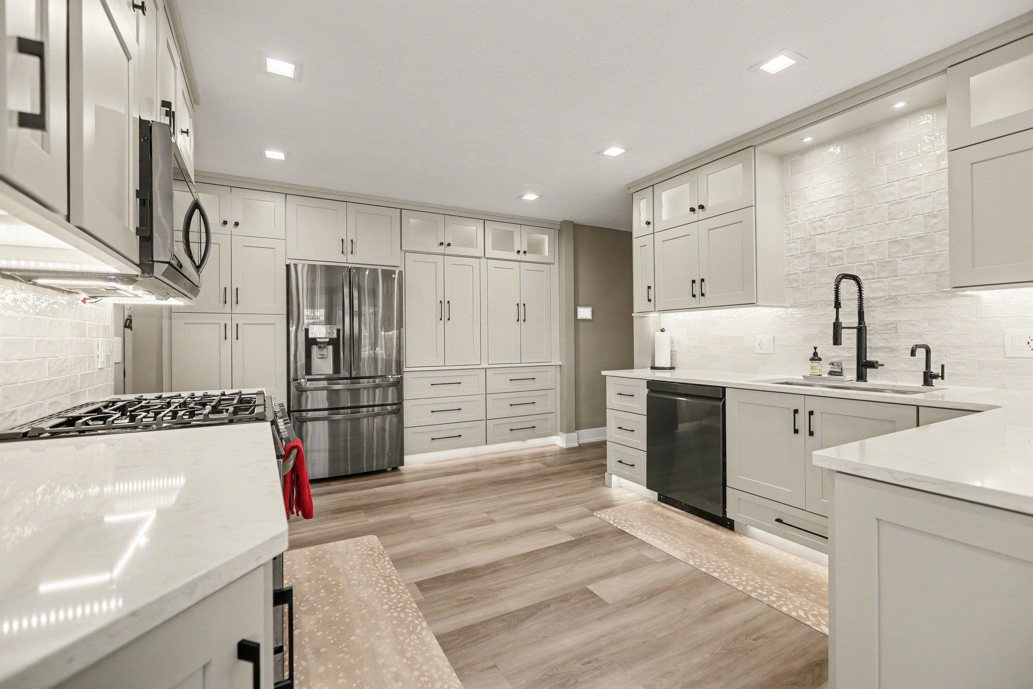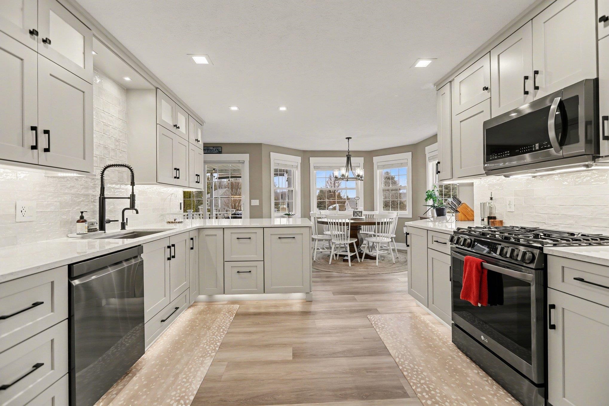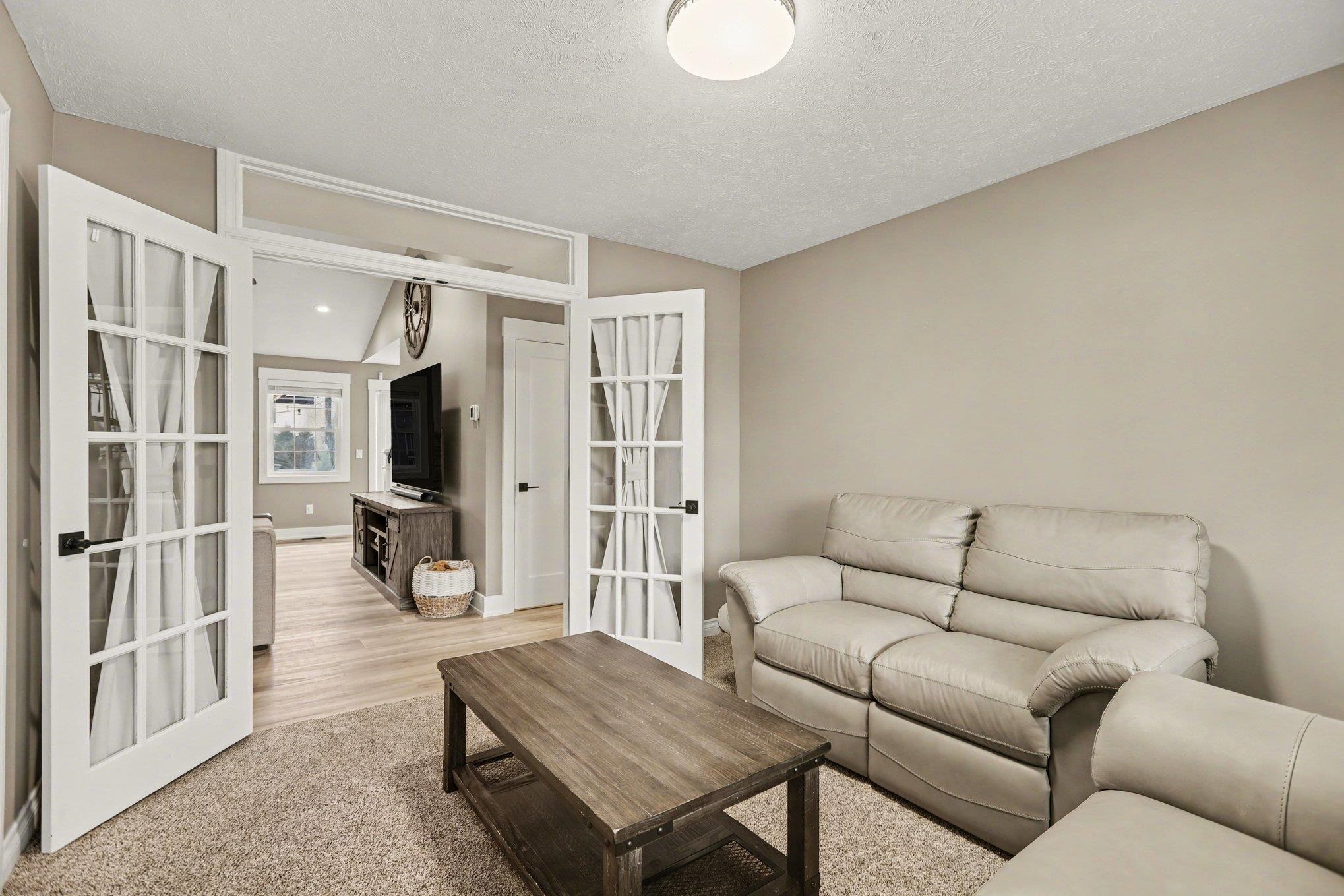 Welcome to this exceptionally upgraded home in the desirable South Creek neighborhood, where thoughtful improvements and meticulous care set this property apart. Offering 5 bedrooms, 2.5 baths, and nearly 4,000 square feet of living space, this home delivers both space and standout features. The heart of the home is the beautifully updated kitchen, showcasing quartz countertops, Omega custom cabinetry, and new luxury laminate flooring that flows throughout the main living areas. Natural light fills the home, complemented by privacy wood blinds and upgraded lighting with smart home features. The main-level family room features vaulted ceilings and a cozy gas fireplace, creating an inviting gathering space. Step onto the newly upgraded deck with adjustable pergola overlooking the large irrigated yard and custom stone fire pit. The walkout lower level adds versatility with a spacious living area, bedroom #5, abundant storage, and plumbing in place for a future full bathroom. A true highlight is the fully upgraded garage and showcase man cave, complete with EV charging station, showroom lighting, smart lighting systems with illuminated cabinetry, and hot and cold water ideal for hobbyists or a premium workspace. Additional upgrades include architectural exterior lighting, new retaining walls, a custom storage building, new decking, a new water heater (2023), and a constant-pressure well system (2023). A home where upgrades, functionality, and pride of ownership truly shine.