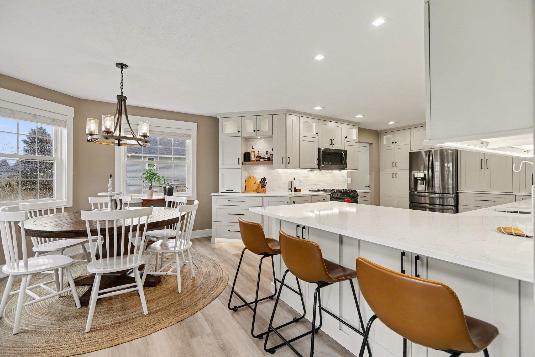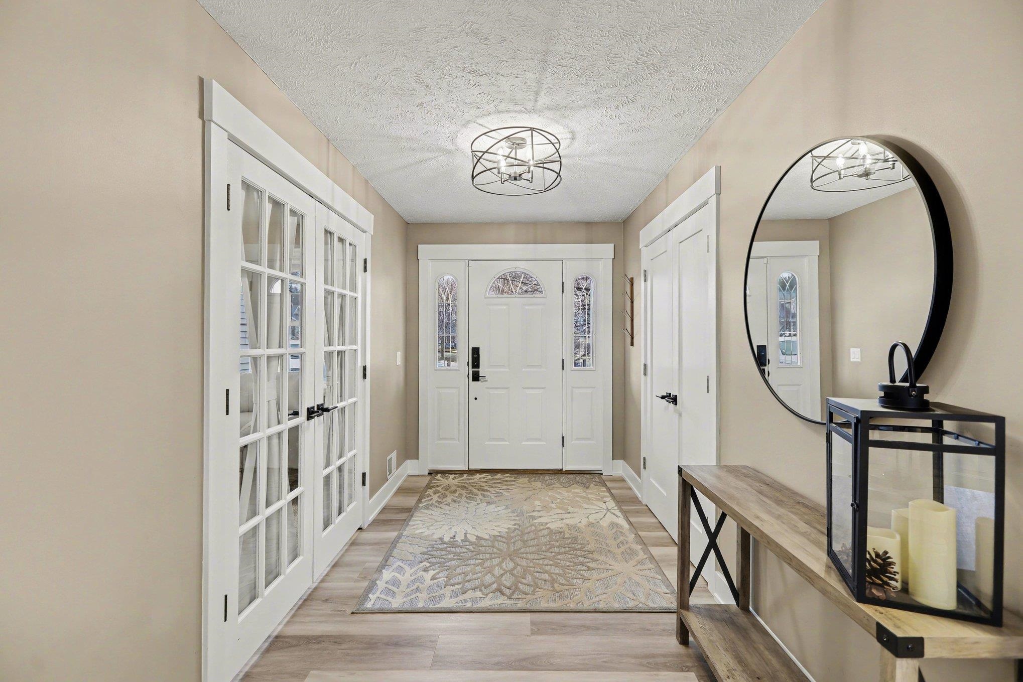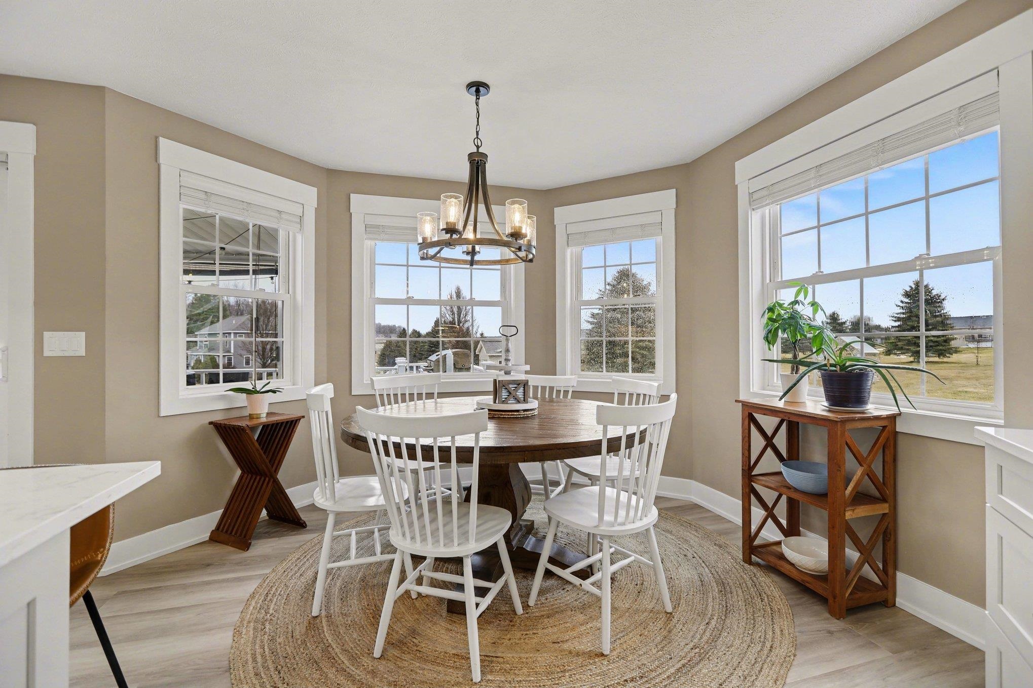 Welcome to this exceptionally upgraded home in the desirable South Creek neighborhood, where thoughtful improvements and meticulous care set this property apart. Offering 5 bedrooms, 2.5 baths, and nearly 4,000 square feet of living space, this home delivers both space and standout features. The heart of the home is the beautifully updated kitchen, showcasing quartz countertops, Omega custom cabinetry, and new luxury laminate flooring that flows throughout the main living areas. Natural light fills the home, complemented by privacy wood blinds and upgraded lighting with smart home features. The main-level family room features vaulted ceilings and a cozy gas fireplace, creating an inviting gathering space. Step onto the newly upgraded deck with adjustable pergola overlooking the large irrigated yard and custom stone fire pit. The walkout lower level adds versatility with a spacious living area, bedroom #5, abundant storage, and plumbing in place for a future full bathroom. A true highlight is the fully upgraded garage and showcase man cave, complete with EV charging station, showroom lighting, smart lighting systems with illuminated cabinetry, and hot and cold water ideal for hobbyists or a premium workspace. Additional upgrades include architectural exterior lighting, new retaining walls, a custom storage building, new decking, a new water heater (2023), and a constant-pressure well system (2023). A home where upgrades, functionality, and pride of ownership truly shine.