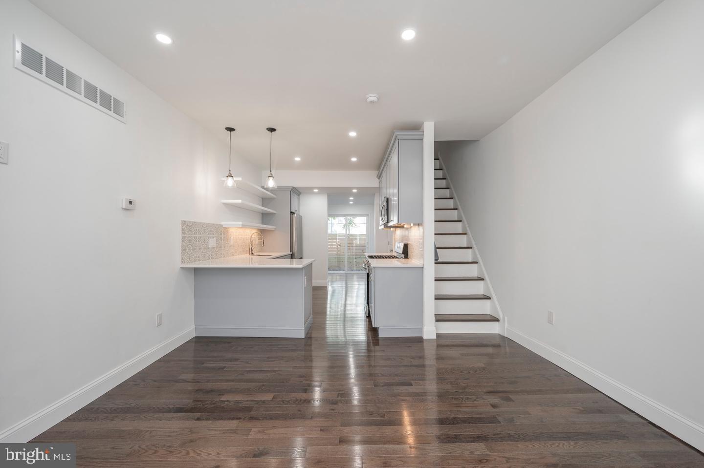 Welcome to this historic row home with a new interior. This home was taken down to the studs and meticulously rehabbed with stylish details. A licensed architect was involved in design, selection of all finishes and construction. New roof, windows, central air, finished basement. The living area is bathed in sunlight, the chef's kitchen is open and inviting and the dining area could also be used as a home office. There is a convenient powder room right off the dining area. Open the sliding glass doors to the patio to enjoy morning coffee or margaritas with friends. Upstairs, find a bright primary bedroom with ample closets and shelving, a 2nd bedroom and a brand new full bath. The full basement is perfect for a gym, play room, rec room or storage.