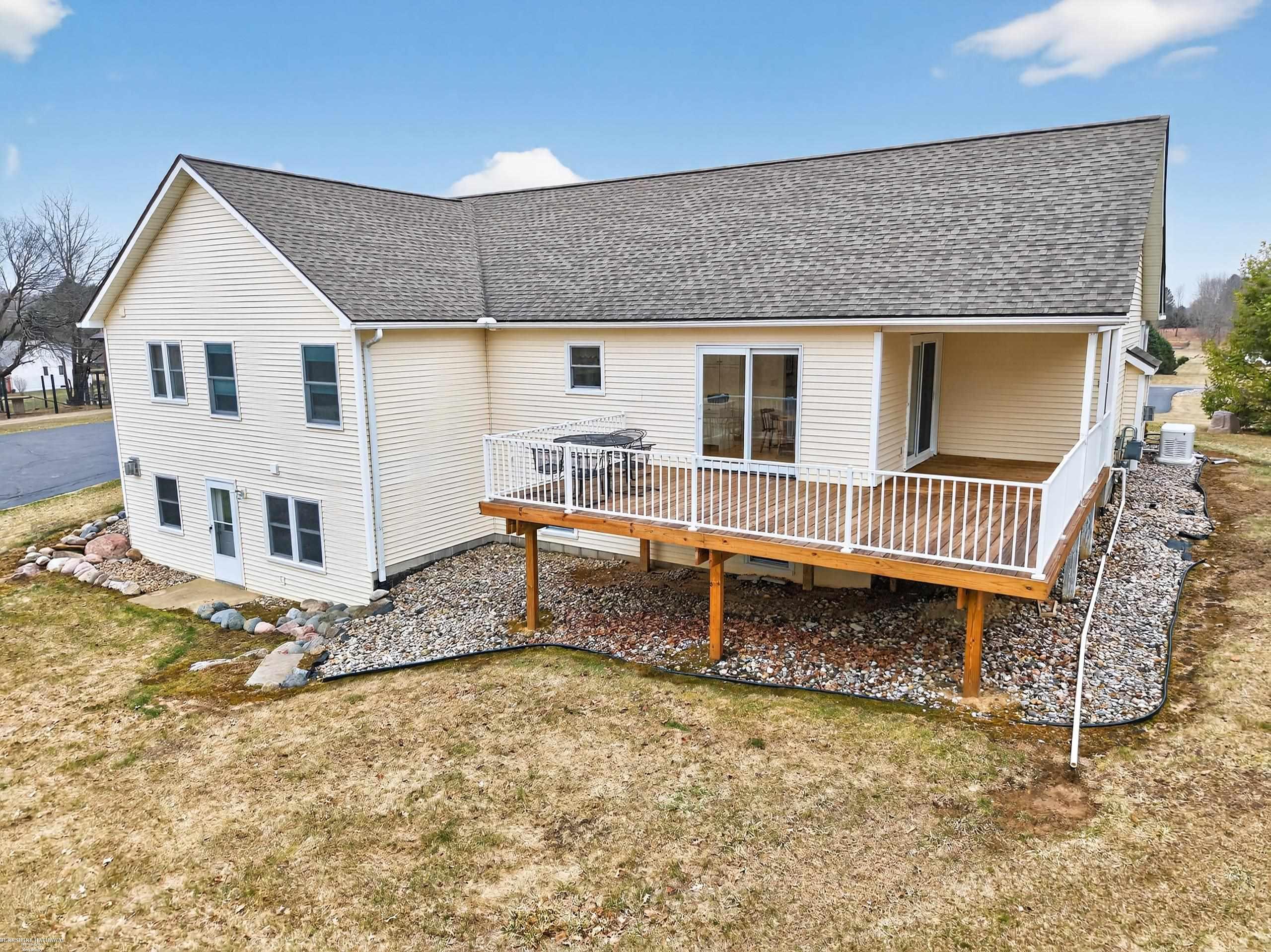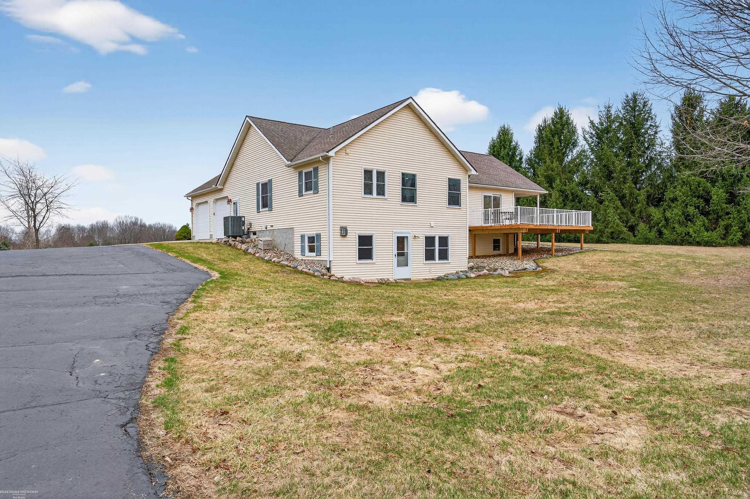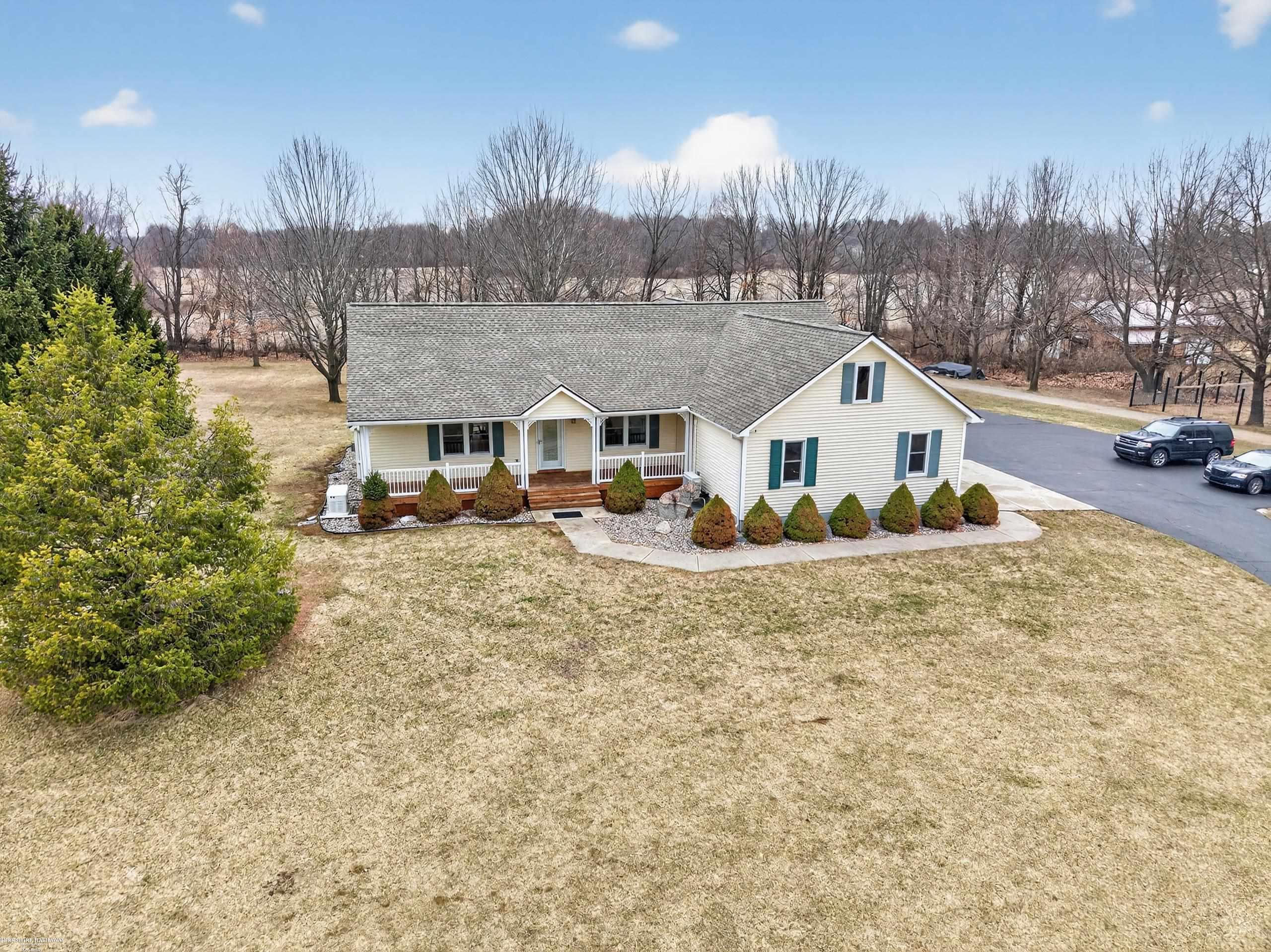 This beautifully maintained 3-bedroom, 2-bath home, built in 2001, offers 1,620 square feet of comfortable living space surrounded by peaceful countryside views. A long paved driveway leads to a bright open-concept interior featuring birch hardwood flooring and a spacious kitchen with quartz countertops, abundant cabinetry, and a center island perfect for gathering and entertaining. Recent major updates provide peace of mind, including a new natural gas furnace and central air (2021), dimensional shingle roof (2021), whole-house generator (2022), and new well pump with casing and bladder (2024). Additional features include ADA high-rise toilets, a whole-house surge protector, electric car charger, and heat and A/C in the attached garage. Enjoy relaxing or entertaining from the elevated deck overlooking wide-open acreage, while the walkout lower level offers added flexibility and direct backyard access. A 2-car attached garage and 30x40 pole barn provide excellent space for storage, hobbies, or workshop needs. Offering privacy, functionality, and valuable updates throughout, this property delivers the best of country living with modern comfort.