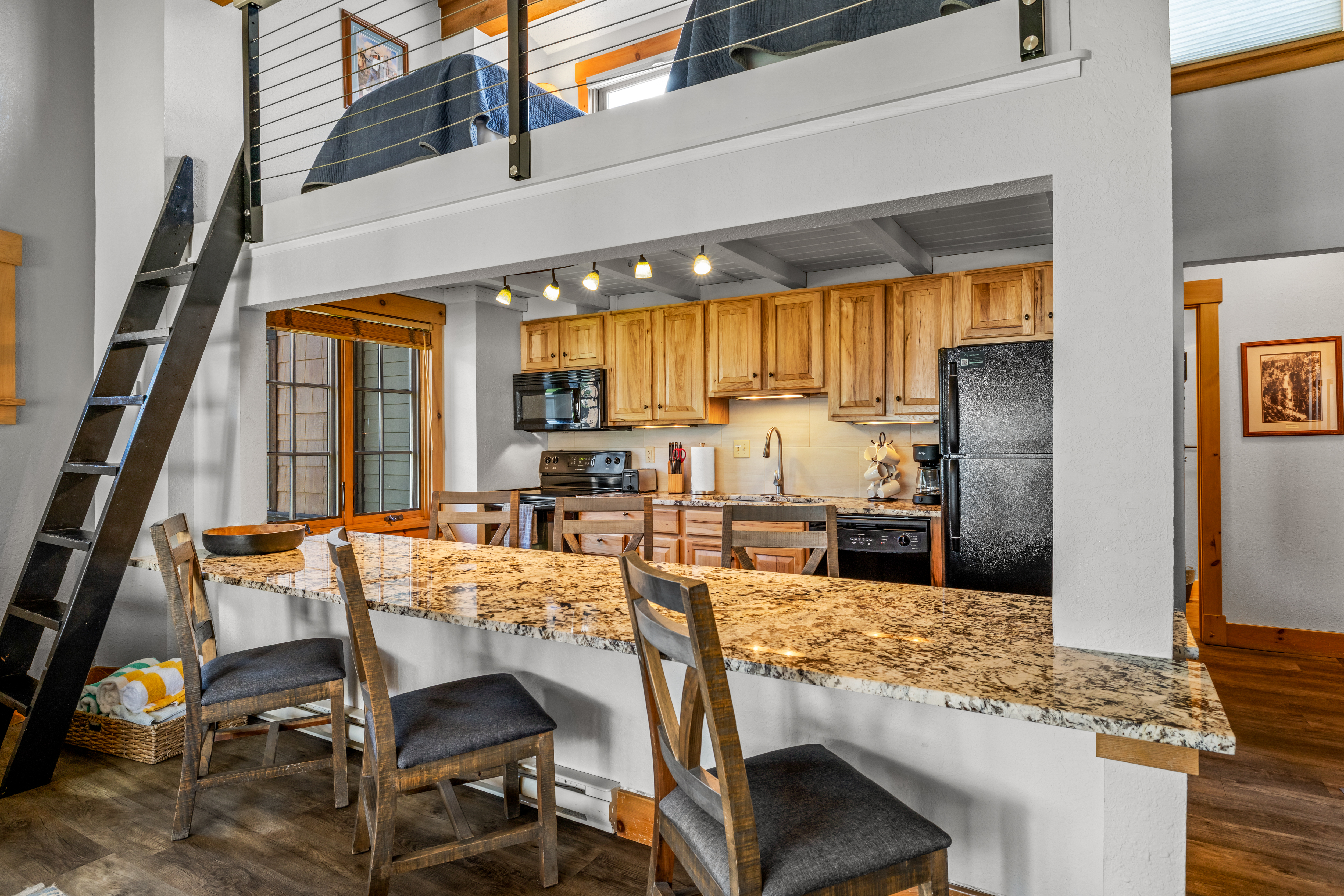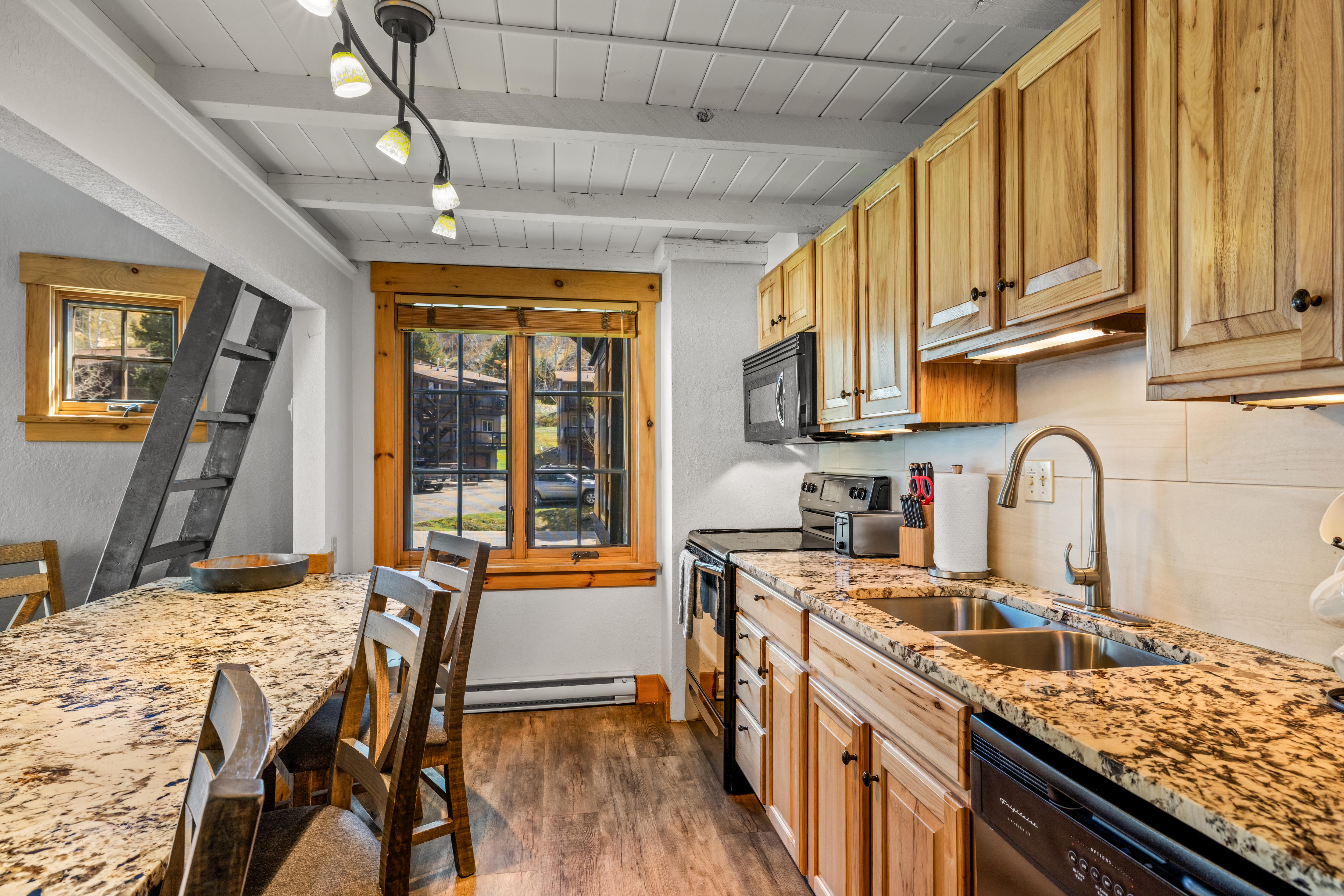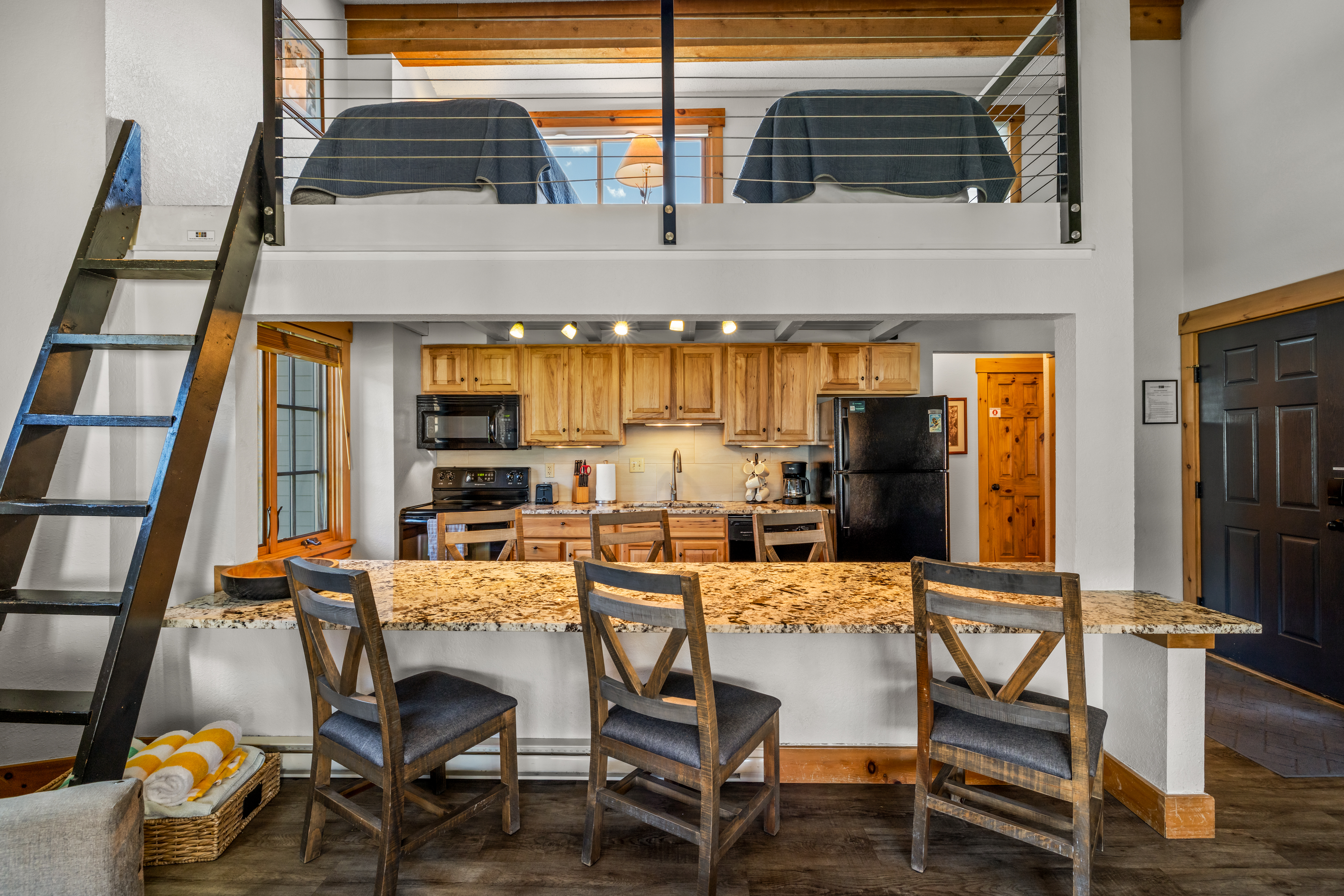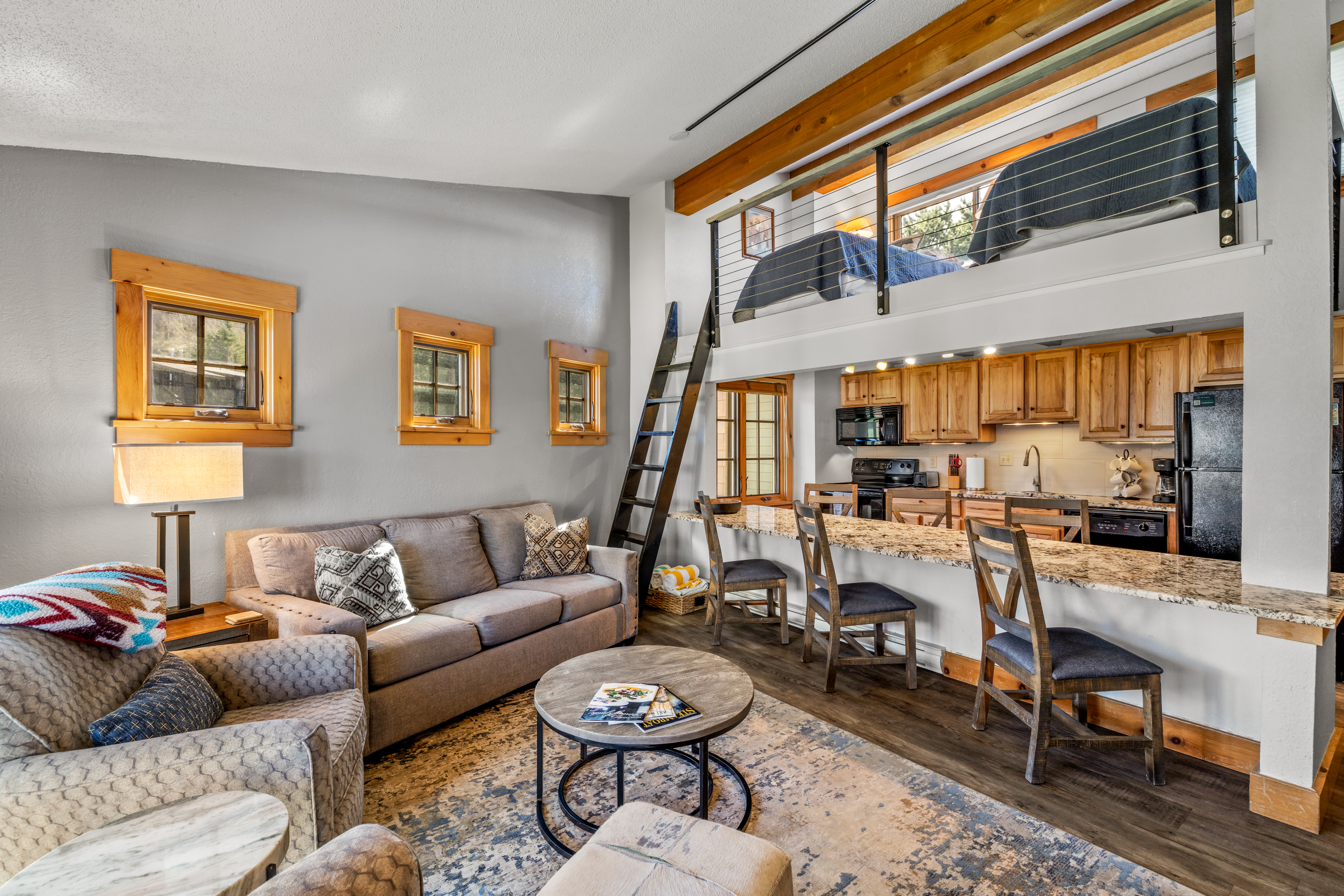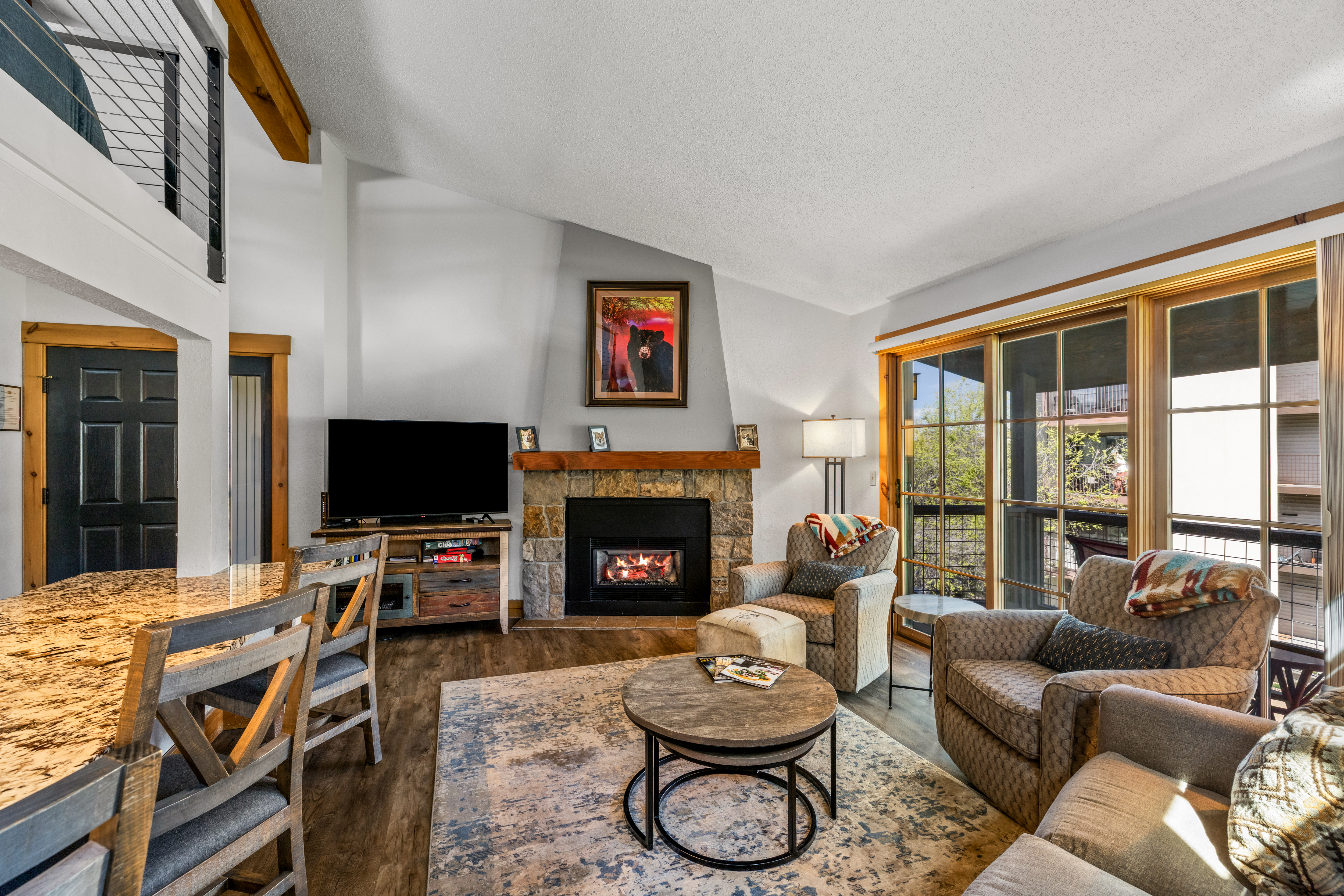 Tucked into the desirable Northstar community—a boutique complex of just 12 units—this 2-bedroom plus loft, 2-bath condo offers a rare advantage with a grandfathered short-term rental license, allowing for nightly rentals—just under a mile from the Steamboat Ski Resort. Thoughtfully updated, this top-floor residence features new flooring, windows, trim, and furnishings, creating a warm and inviting alpine retreat. The light-filled living room showcases vaulted ceilings, a cozy gas fireplace, and comfortable seating, while the fully equipped kitchen offers a large granite countertop ideal for dining or entertaining. The flexible layout provides excellent sleeping capacity with a king primary suite, a queen guest bedroom, and a loft with two twin beds. Two updated bathrooms include a tub/shower combination and a walk-in shower. Enjoy mountain views from your private covered patio or unwind in the community’s indoor hot tub and sauna. Additional amenities include ski locker storage, shared coin laundry, and parking for two vehicles. Located less than a quarter mile from the free city bus, you’ll have easy access to the ski area, downtown, and everything Steamboat has to offer—making this an ideal mountain getaway or investment opportunity.