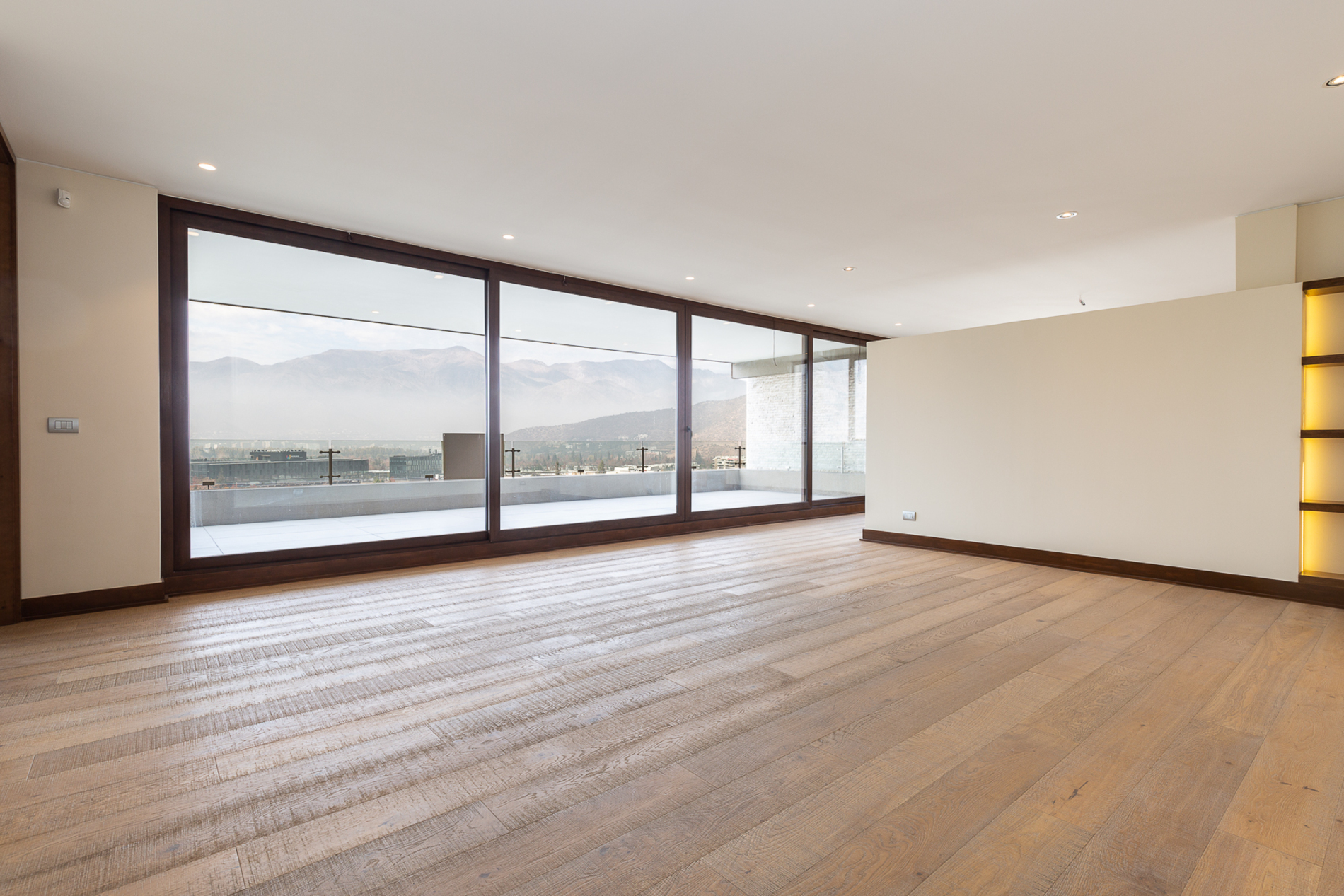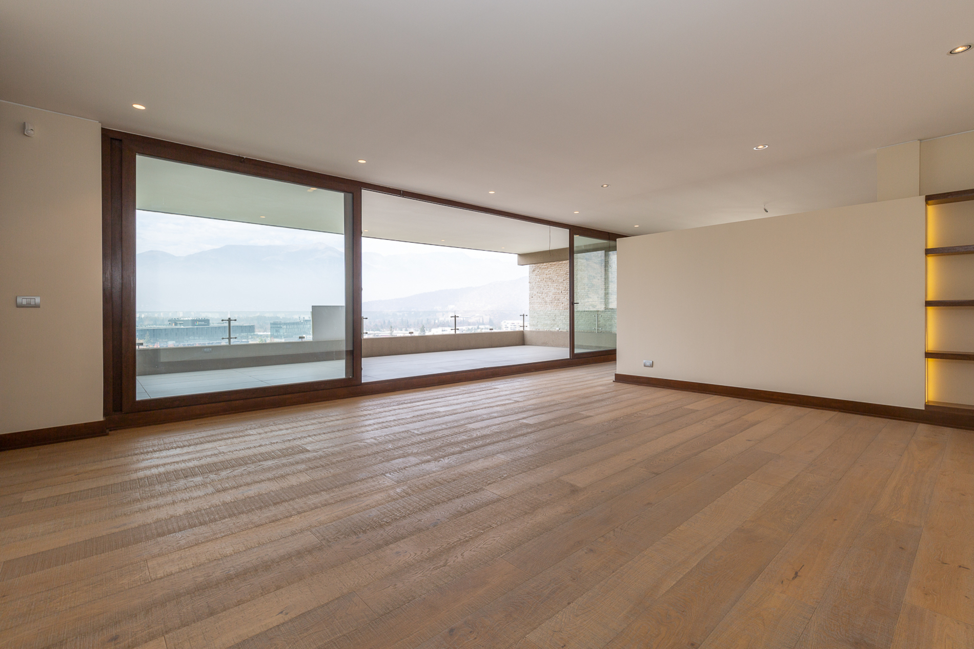 Exclusive penthouse with mountain views, located in Los Trapenses, close to schools and shopping mall, with excellent connectivity. Entrance hall with marble flooring and stone wall cladding. Guest bathroom. Spacious, separate living and dining rooms with access to a terrace. Family room or home office. Kitchen with breakfast area, loggia, and service bedroom with bathroom. Primary bedroom en suite with terrace access and two walk-in closets. Two bedrooms in suite with terrace access. Rooftop (206 m²) with panoramic views, barbecue area (quincho), and swimming pool with deck. Features: Wood flooring in living room, dining room, family rooms, and bedrooms Porcelain tile in bathrooms and kitchen Radiant floor heating Double-glazed (thermopanel) windows 5 parking spaces, 1 storage and private gym Miele and Smeg kitchen appliances 24/7 security