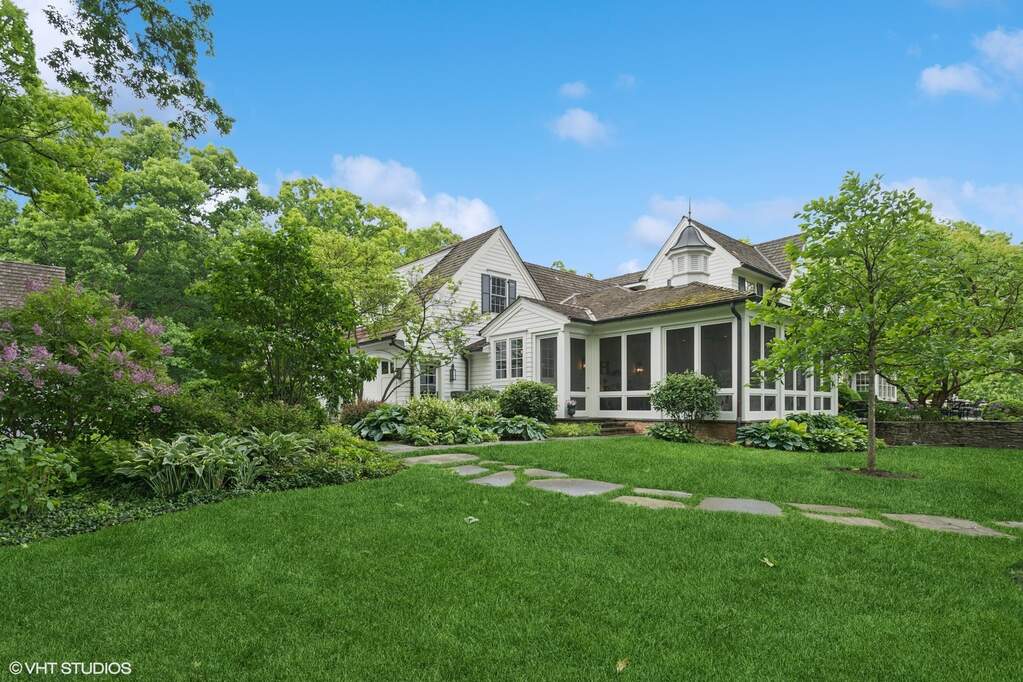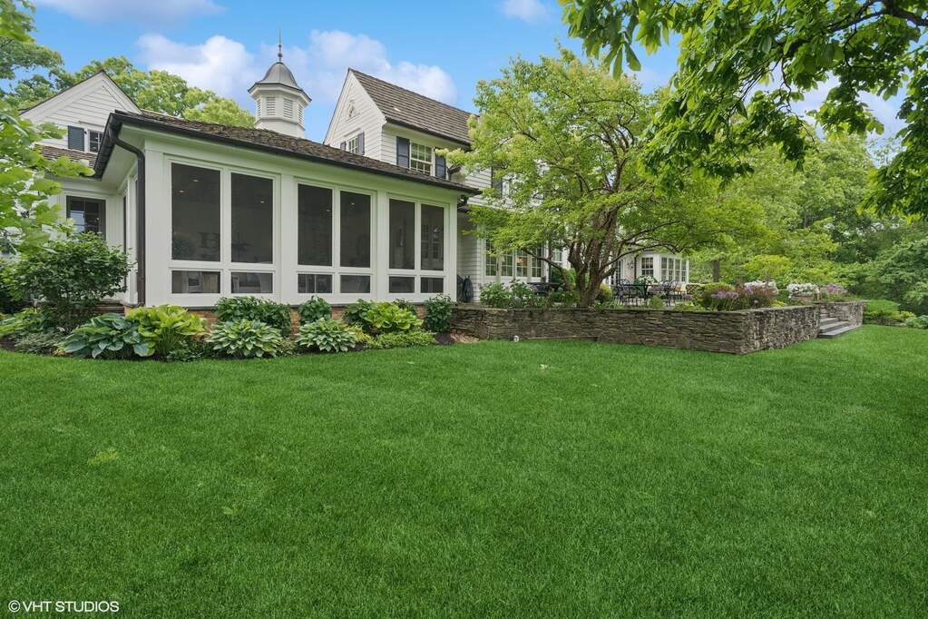 Back by popular demand, this gorgeous Wayne estate offers complete privacy with conveniences located within minutes. Situated on 12.4 acres, this stunner was fashioned after the Wayne homes of the 1930s/1940s, designed by architect Dan Marshall and built by PJ Murphy Builders 2010. In a Hamptonesque and bucolic setting, ideal for enjoying with family and friends, and the train, excellent private schools, shopping and several private country clubs all within a 5-20 minute drive. Charm and character exude through the wide corridors of this 8,134 sq ft home, not including the finished, deep-pour basement with 3,665 sq ft. There's a lovely screen porch with 486 sq ft, a total of 5 car garage spaces - extra wide doors, two spaces connected with attached garage, and three cars in detached garage with open storage above, by staircase. The full basement has stained concrete flooring, with a casual vibe, plus a wonderfully-wide entry into the entertainment area. With a full bath including steam shower, kitchenette, entertaining mecca, TV/fireplace lounge area, and a separate game nook, the space captures you. An extra is the deep pour, which allows for greater ceiling height. The lower windows are sunny and make it feel like an extension of the home rather than "a basement". Bluestone and antique paver hardscape, wonderful Pennsylvania fieldstone walls, and HoerrSchaudt designed landscaping are fabulous, with heated entry bluestone steps at the front entryway off the circular drive. Channel your inner-Martha Stewart with the newly re-picketed fenced-in vegetable garden. You HAVE to see this from the upper levels to see the true beauty of design and function. The terrace is fantastic and has underground drainage and irrigated pots for ease of care on the perimeter and front entry. The gunite pool just resurfaced in the fall of 2024. Copper gutters, copper lanterns, top-of-the-line interior and exterior hardware, honed marble and granite throughout, WITH top-of-the-line appliances and other appointments. A FLOWER ROOM/dog room with dutch door, mudroom with lockers, a laundry room to die for . . . so much to describe! Cabinetry is provided by Past Basket of Geneva, and custom built-ins are specially designed and specialty carpenter-built throughout. Paneled library and office nook with fireplace is so cozy and warm, but windows allow you to enjoy the scenery that is your own. The guest suite is on the main level and has a porch to capture the views while guests sip their morning coffee in their separate space. The spacious guest bath has honed marble vanity top, custom built-in around and vanity, marble flooring and shower floor, all with Anne Sacks tile. Fabulous and roomy closets off main entry corridor and even a custom-built tablecloth hutch, set back into the wall and off dining. The butler's pantry with walk-in pantry is not to be missed. With its Miele coffee system built in, beverage/wine fridge,etc - an entertainer's dream and positioned between the kitchen and dining area, it's perfect for ease of use. The kitchen, gathering room, and casual dining are enormous but cozy, and double sets of French doors lead to the amazing terrace. Everything you'd want, but have to see. OH, the living room! So many ways to use this space, with fireplace and window wall and ceiling height that is just so perfect and many seating arrangement options. The primary bedroom and three other bedrooms are upstairs, along with an exercise room, which is spacious. The upstairs landing/additional family room with great built-ins and plentiful seating arrangements. Original barn repainted and re-stained 2017. The home is a must-see and truly unlike any other home in Kane County. It's designer-finished and completed with the finest quality one would want in a new build, but understand that at price per sq ft on a new build, you couldn't come close to this price today. We are offering this incredible property, down from $6,499,000 to $5,950,000.