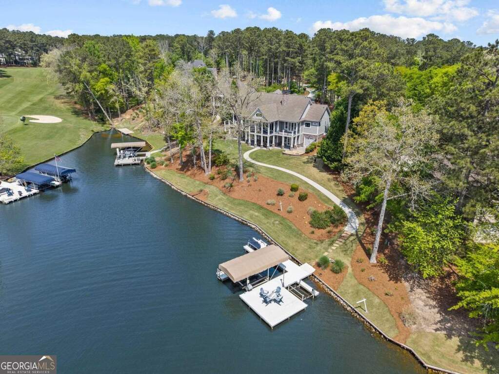 Experience luxury living in this stunning lakefront home nestled within the sought-after Harbor Club community at Lake Oconee. This enchanting property offers an unrivaled location on an award-winning, 18-hole championship golf course designed by esteemed architects Jay Morrish and Tom Weiskopf. Savor breathtaking, panoramic views with over 185 feet of pristine lake frontage. The property showcases a premium composite max dock complete with boat and jet ski lifts, alongside remarkable views of the #5 green and #6 tee box, certain to captivate golf enthusiasts. Beautifully remodeled in 2013, this home emanates elegance and sophistication. Upon entry, a striking custom mahogany door welcomes you to an inviting open floor plan. The great room is a masterpiece featuring vaulted ceilings, a floor-to-ceiling stone fireplace, and captivating lake views. The gourmet kitchen boasts custom maple wood shaker cabinets, granite countertops, and dual islands, perfect for culinary endeavors. On the main level, you'll find two spacious bedrooms, including a luxurious primary suite offering more of those mesmerizing lake views. Step outside to enjoy expansive porches and patios, perfect for entertaining or relaxing while soaking in the tranquility of the surroundings. Above the three-car garage, discover a private suite, an ideal retreat for guests. The terrace level presents a vast entertainment area complete with a wet bar, two sumptuous ensuite bedrooms, and doors leading to a charming deck. Outside, lush landscaping and a magnificent stone firepit offer the perfect setting for gathering and enjoying memorable evenings under the stars. This property is a rare find at Lake Oconee, appealing to families, active adults, retirees, and anyone seeking a tranquil, peaceful community offering a blend of luxury and recreation. Additional interior pictures coming soon.