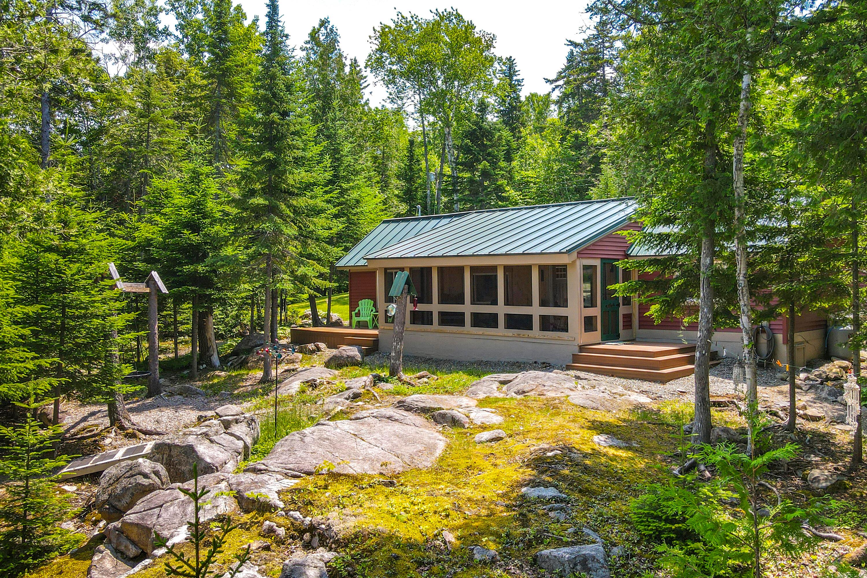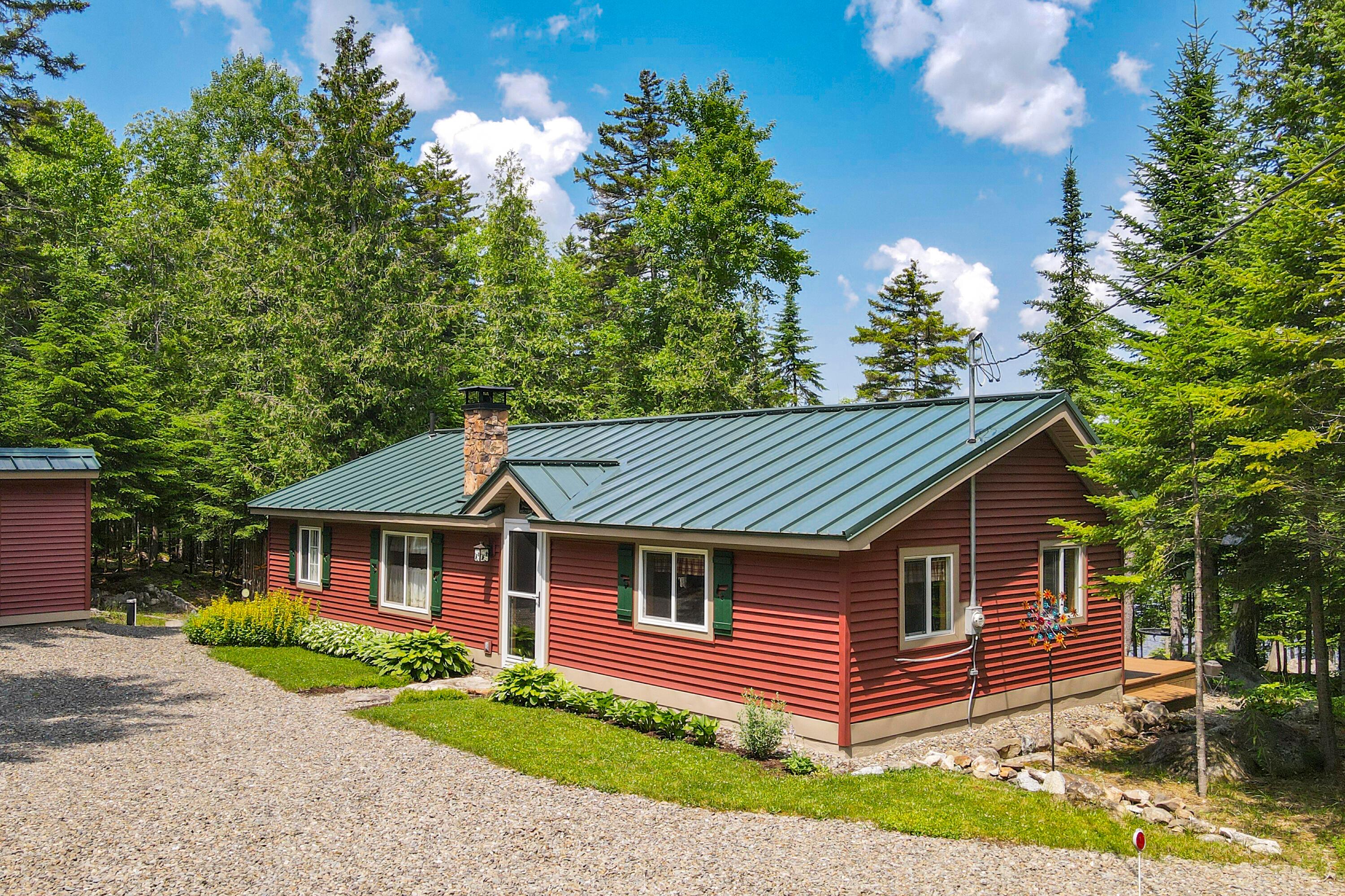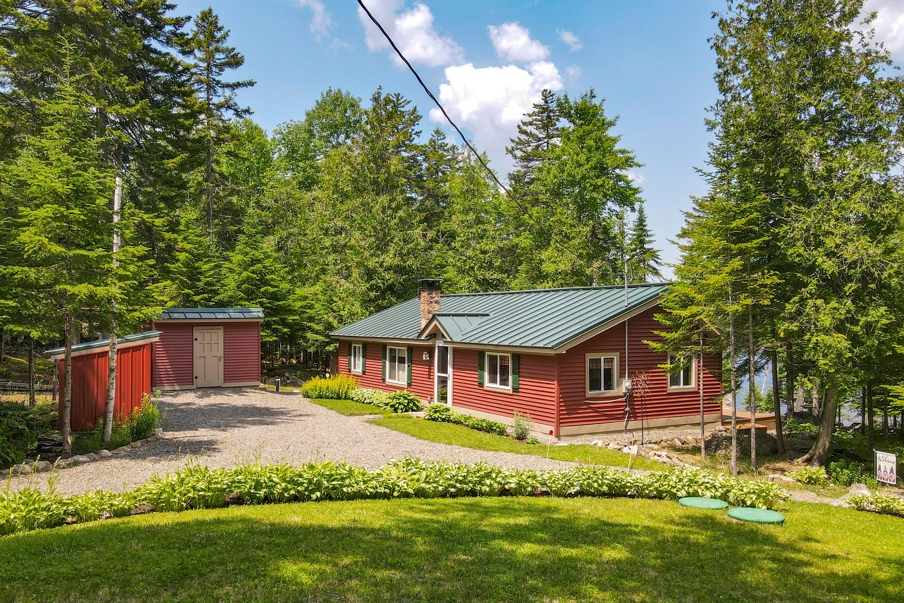Discover the peaceful beauty of Meduxnekeag Lake (Drews Lake) with this thoughtfully remodeled 2-bedroom, 1-bath cabin, privately situated near the end of a quiet road on a 0.76-acre lot with 200 feet of pristine waterfront. Completely redesigned in 2017, the home blends modern efficiency with classic lakeside charm. The interior showcases cedar tongue-and-groove walls and ceilings, along with updated electrical, plumbing, insulation, windows, doors, subflooring, and flooring throughout. The kitchen features solid surface countertops, custom cabinetry, and a breakfast bar, while abundant natural light enhances the warm, inviting living spaces. Designed for low-maintenance enjoyment, the exterior offers composite decking, vinyl siding, a metal roof, and trim. The beautifully landscaped grounds include pea stone pathways leading to the water's edge, where a floating dock (installed in 2019) awaits. Additional features include a wood shed, a powered shed ideal for a bunkhouse or extra storage, and parking for 1-4 vehicles, including space for a boat trailer. Inside, you'll also find a stackable washer and dryer, a built-in triple bunk in the guest room, pocket doors throughout, and easy on/off storm panels for the screened porch. Whether you're looking for a seasonal escape or a year-round retreat, this meticulously maintained property offers a rare opportunity to enjoy waterfront living on sought-after Drews Lake. Schedule your showing today and explore the 3D tour to experience it for yourself.