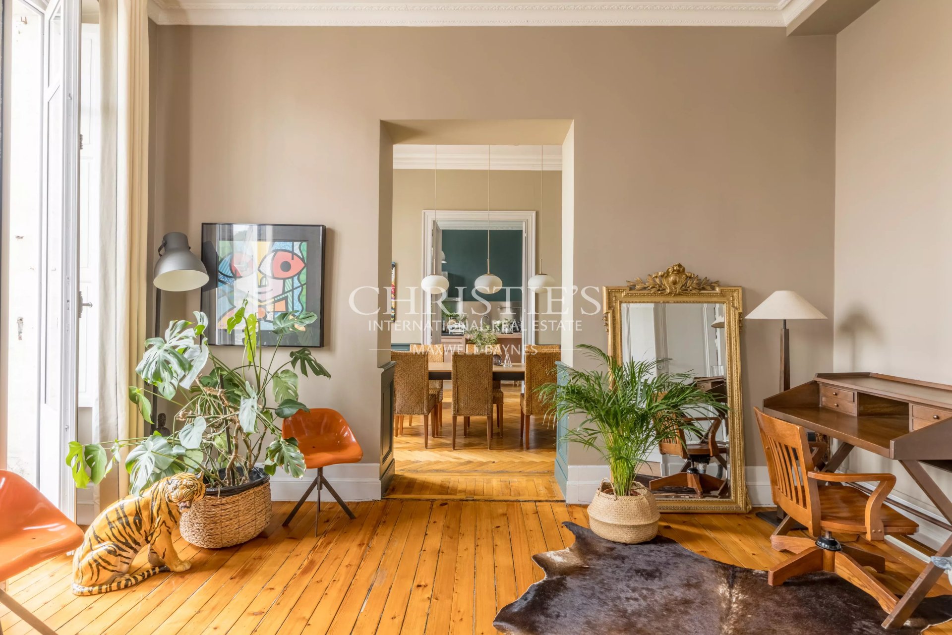 With 180 m² of Carrez floor area (approximately 220 m² of living space), this rare property benefits from dual east/west exposure, providing exceptional natural light throughout the day. The charm of the original architecture is perfectly preserved, featuring 12-foot-high ceilings, original hardwood floors, and spacious rooms.