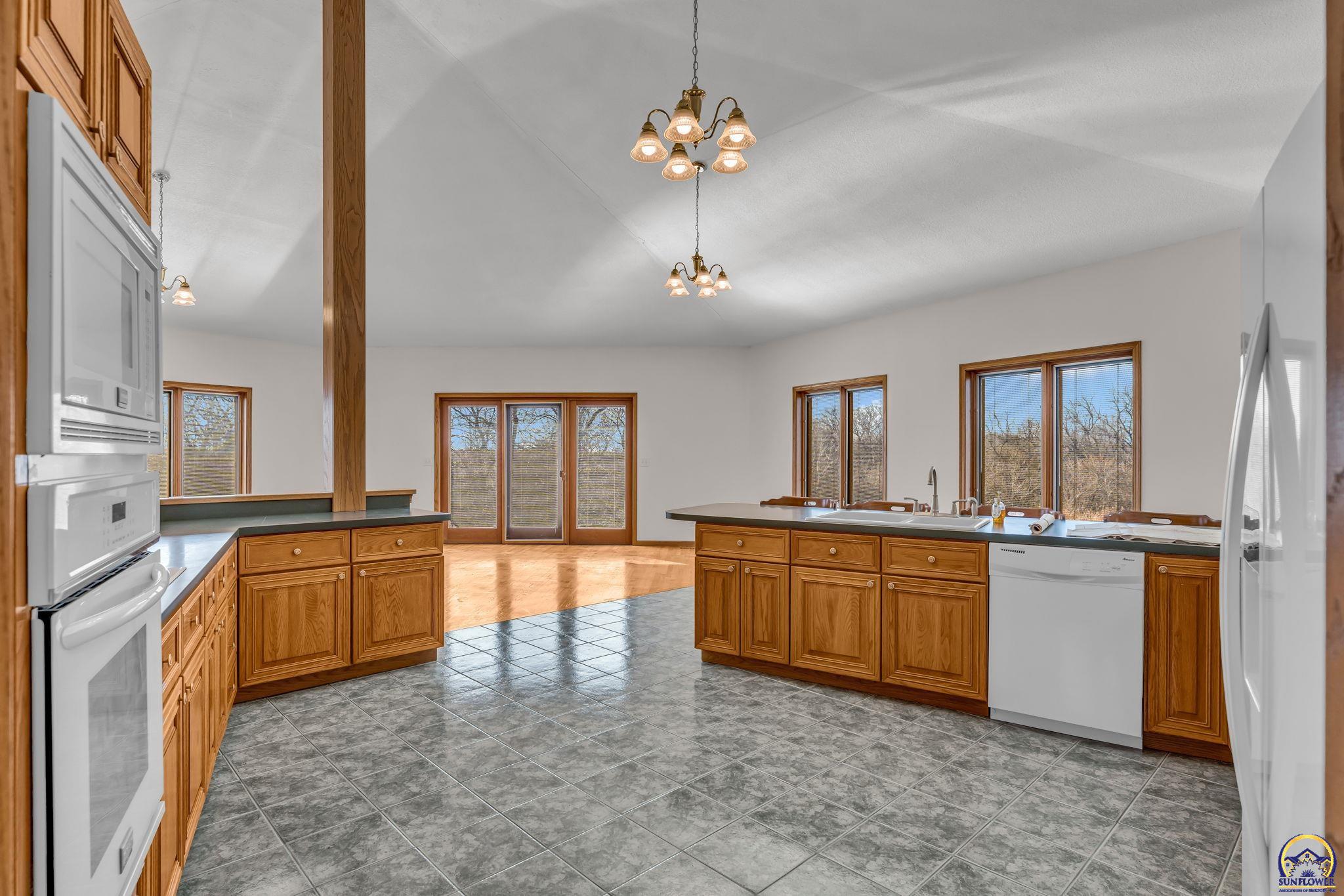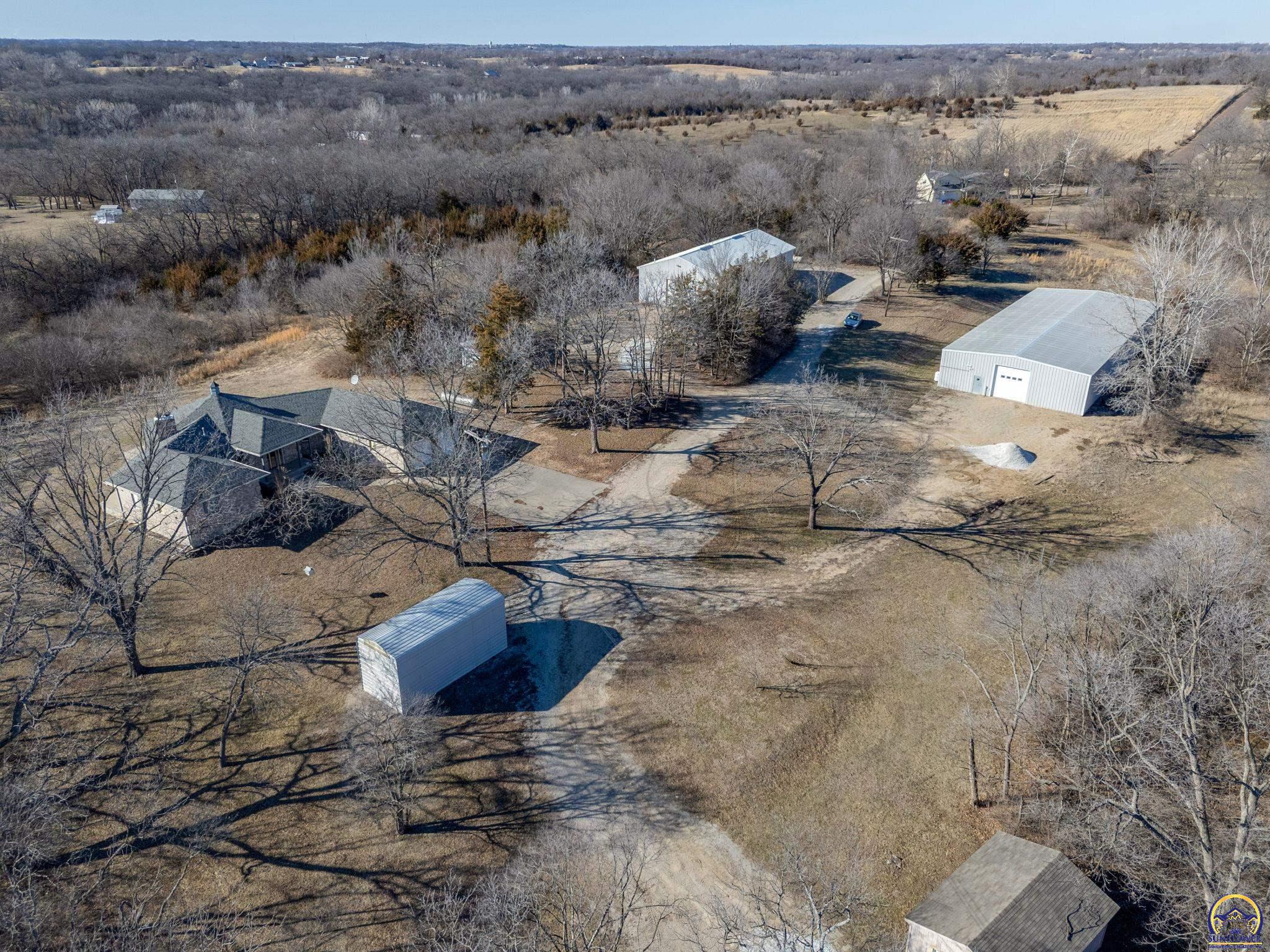 This is a rare opportunity to own two separate homes and multiple outbuildings on adjacent parcels totaling 18.35 acres on the outskirts of Topeka in Seaman Schools with views and privacy. Not only are the homes uniquely different, so are the outbuildings and the land making it ideal for multi generational living, VARIOUS income potential or a very private estate for the entire family to live and play on. Anyone who seeks privacy but convenient to Topeka amenities should tour these properties. Let's talk about this portion of the property: 2660 NE Kaw Valley School Rd sits on the highest point of the property with an elevation change of almost 100 ft. If you've always wanted your next home sitting on top of a hill, this is a rare find. The main custom built home was believed to be built by "the Gartner Brothers" who built a lot of homes in the area. The floor plan is available. The most unique feature is on the back of the house where you can take in the sunsets to the west, watch wildlife or look at the river to the south/east or see the cityscape from multiple spots in your huge kitchen, dining area and living room due to the hexagon shaped space and windows. It was a dream come true for the owners. The primary suite was well thought out being on the opposite side of the house from the remaining bedrooms. The Suite has a fireplace, luxury bathroom, large walk in closet and is just down the hall from the Main level laundry. The remaining 2 bedrooms and Full bath are on the north side of the house offering kids or guest their own privacy. The Unfinished basement with Full bath offer expansion options including a storm shelter under the exterior patio. Many hours can be spent outdoors whether tending to a garden, picking apples, peaches, pecans or persimmons storing utensils in the garden shed, sitting on the wrap around patio on the back or working out in the 40 x 80 outbuildings where many hours were spent working on many projects. Its future use is up to you! This is a dream for anyone who looking for a workshop, a car repair shop, wants a man cave with heat and a bathroom. This portion of the property sits on 7.23 acres of the total 18.35 acres. Please refer to the MLS#: 243896 2520 NE Kaw Valley School Rd for the additional listing details.