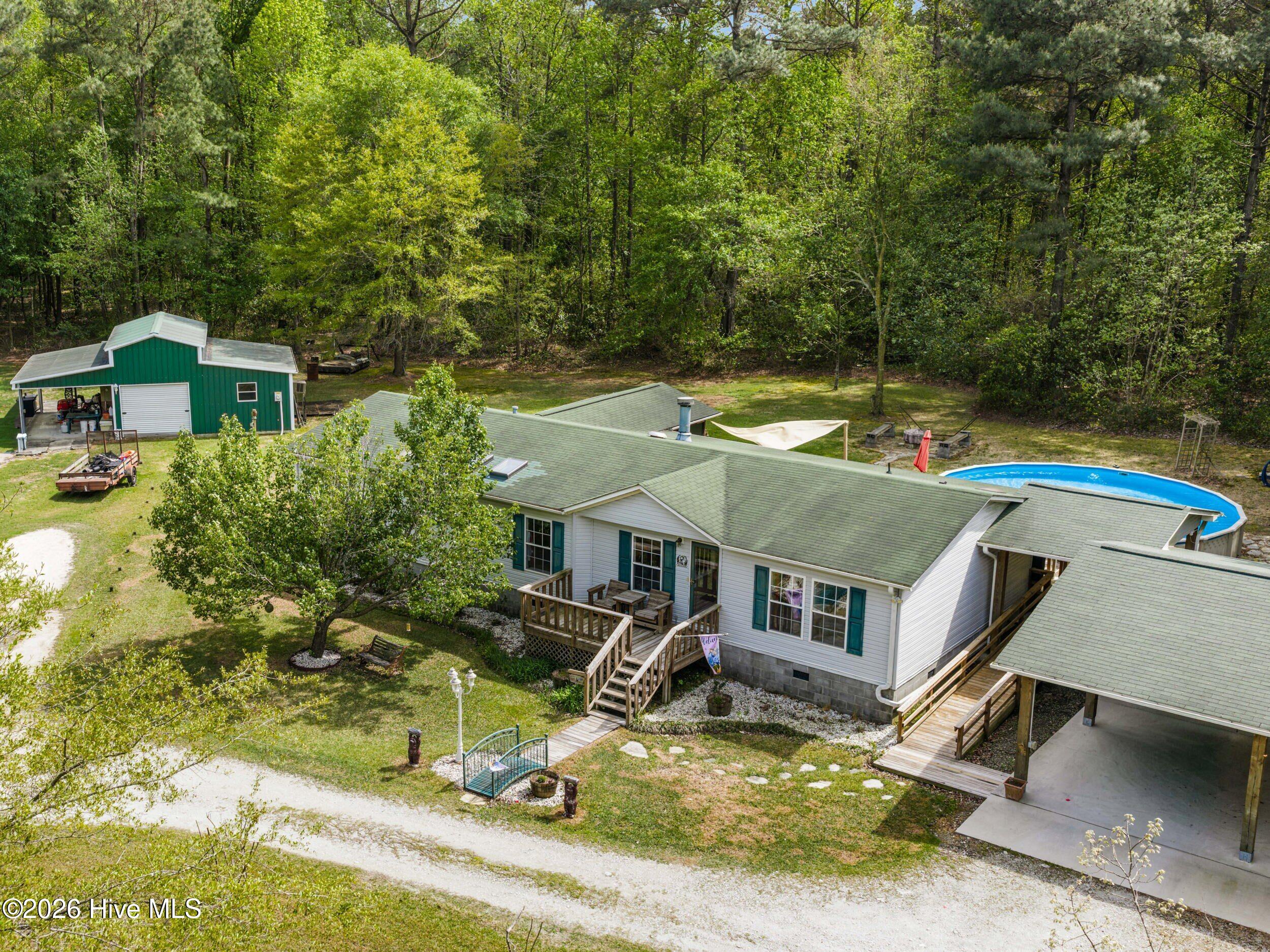 Escape to your own slice of paradise with this beautiful country property set on nearly 14 acres! This charming 3-bedroom, 2-bath home offers the perfect blend of comfort, space, and outdoor living. Step inside to a gourmet kitchen that's sure to impress, featuring ample space for cooking, gathering, and entertaining. The home's inviting layout provides both functionality and a cozy feel throughout. Outdoors, you'll find everything you need to relax and enjoy the peaceful surroundings. Cool off in the impressive 30-ft above-ground pool, complete with a spacious back deck and stunning flagstone patio--perfect for summer gatherings. Unwind in the evenings around the fire pit area, taking in the quiet country setting. Additional features include outside storage and a dedicated workbench area, offering plenty of room for hobbies, tools, and projects.