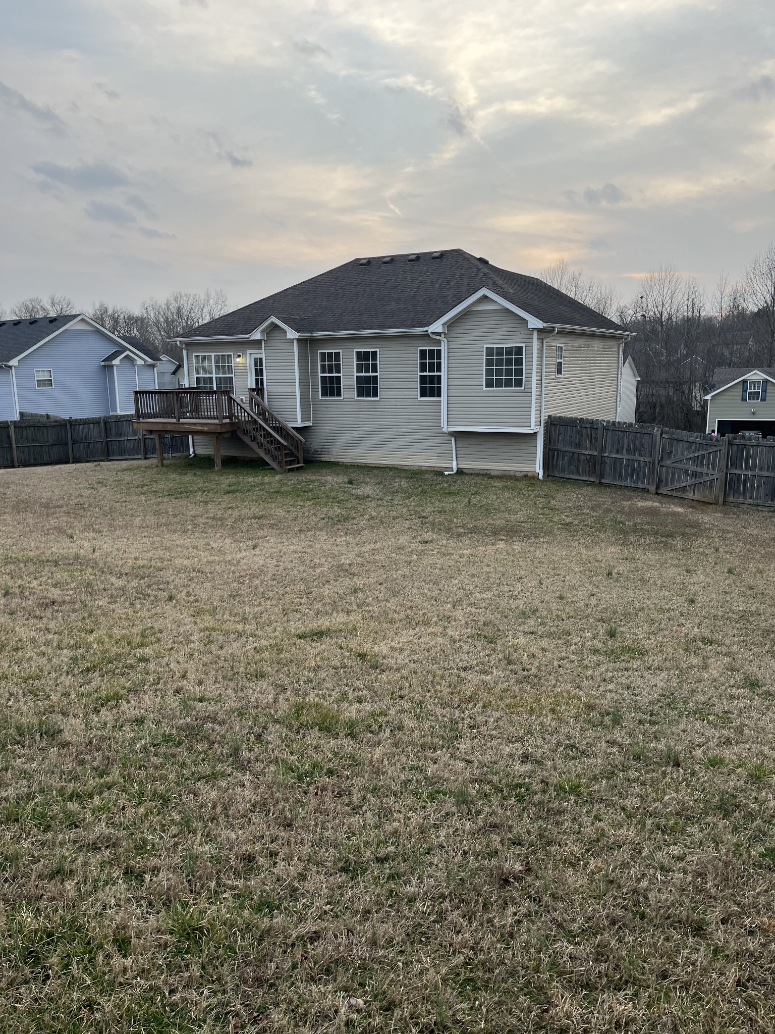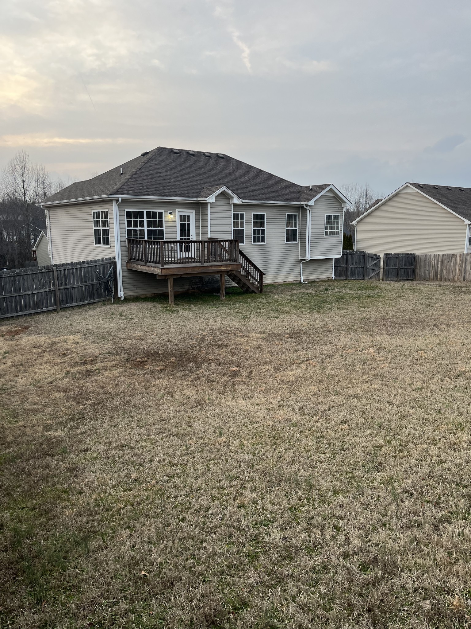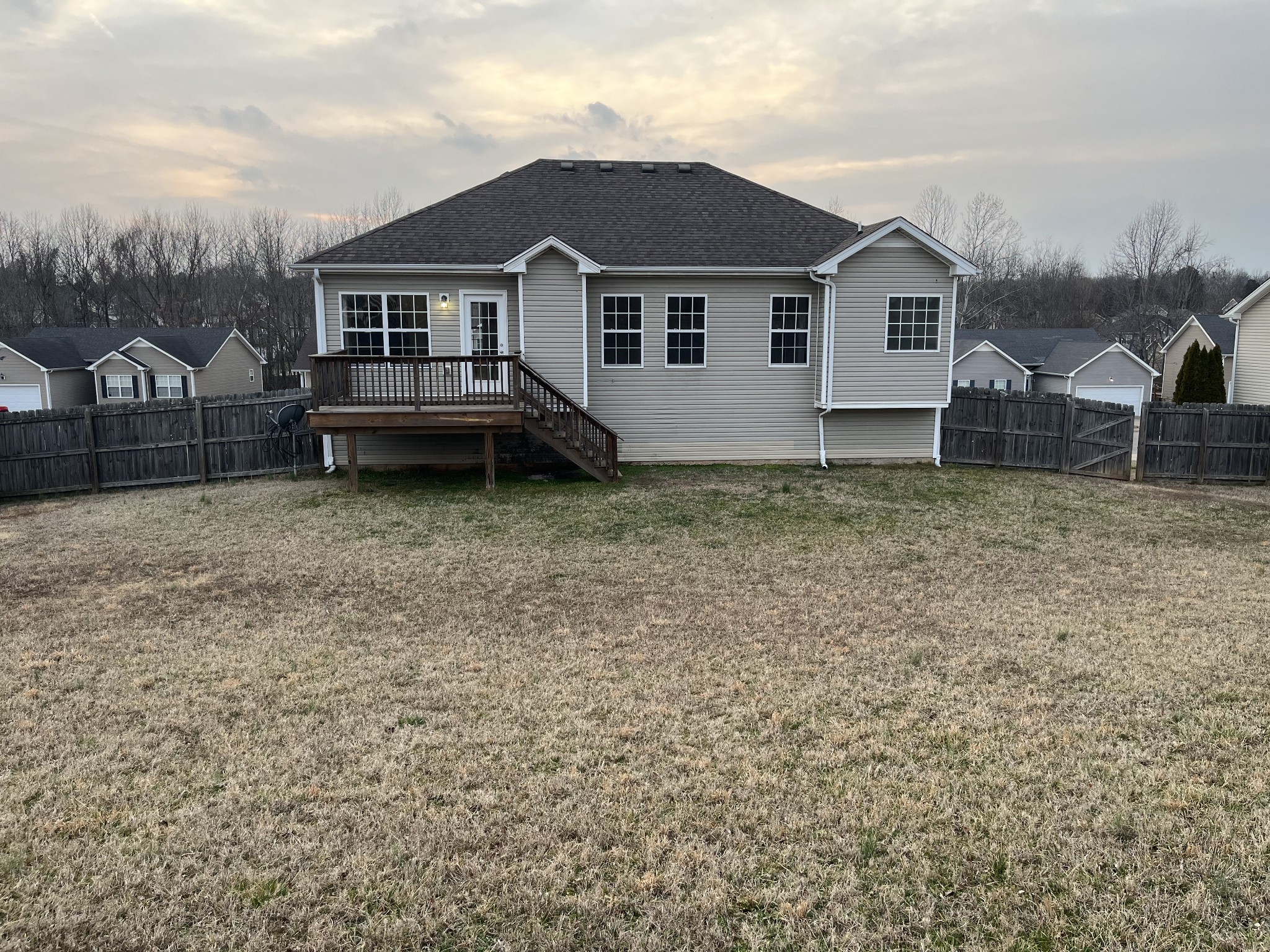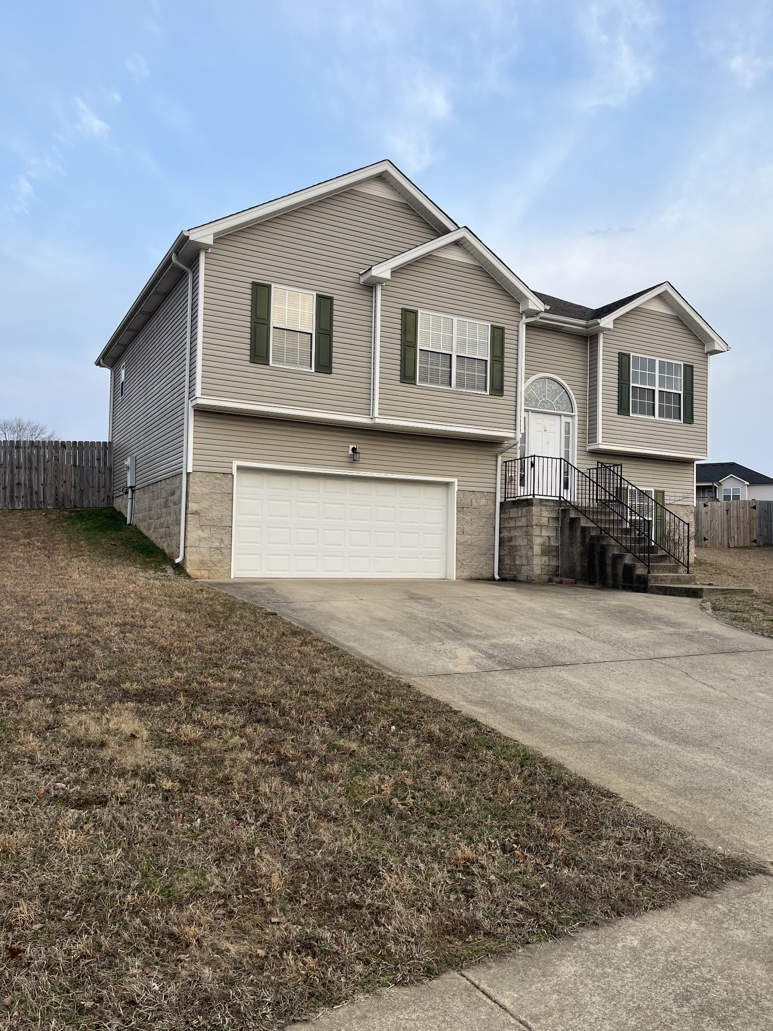 This spacious split-foyer home offers 3 bedrooms and 2 full baths on the main level plus an additional two finished rooms (multiple possible uses) and another full bath on the lower level. One extra room is 9'x10'. The other is huge at 33' long and 11' wide for the first 19' and then 7' wide for the remaining 14'. Come and see this large area for yourself, and imagine the possibilities. There is also an unfinished 7'x7' utility room at the back of the garage that currently only contains the water heater. Excellent area for additional storage space. Primary bath has double vanities, garden tub and separate shower. The built-in dishwasher and microwave in the kitchen make meal preparation and cleanup a breeze. The formal dining area is perfect for entertaining. The eat-in kitchen offers another cozy space for casual dining. The 2 car basement garage (22'x20') provides convenient parking and extra storage space. Step outside onto the back deck, and enjoy the fresh air. Ceiling fans throughout the house provide a refreshing breeze during the warmer months. The rear wood privacy fence ensures a sense of seclusion and security. Stay comfortable year-round with the central heat/air system. Electric washer/dryer connections are present. The trey ceiling adds a touch of elegance to the home's interior. The interior has been freshly painted. Enjoy the two playground/park areas in the neighborhood. Home is conveniently located just a short distance from Fort Campbell and shopping areas.