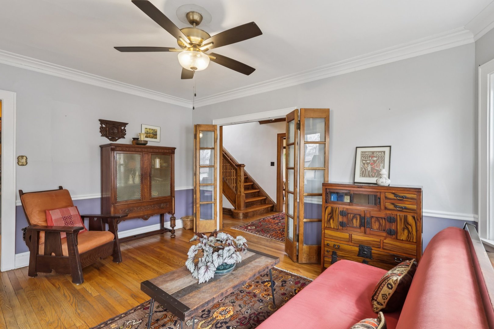 Welcome to this spacious 3-bedroom, 2.5-bath home set on a rare double lot in a vibrant Oak Park location. Rich hardwood floors, original woodwork, and thoughtfully designed living spaces create a warm and inviting feel throughout. The main level features a welcoming entry with beautiful millwork and a gracious flow between living spaces. A large living room with built-in details and gorgeous original stained-glass windows connects seamlessly to a bright sunroom-perfect for relaxing, working, or soaking in natural light throughout the day. A separate family room offers additional living space, while an adjacent area overlooking the backyard provides flexibility for an office, reading nook, play space, or whatever suits your needs. An addition at the back of the home expands the kitchen and dining area, creating a spacious and light-filled hub for everyday living and entertaining. East, west, and south exposures flood the home with sunlight, especially during the winter months. Upstairs, generously sized bedrooms offer comfort and versatility, including a large primary bedroom with room for a king-sized bed, two additional spacious bedrooms, and a tandem room ideal for a home office, creative space, or quiet retreat with views of the yard. A walk-up unfinished attic provides excellent storage and potential for future expansion. The fully finished basement adds even more functional space for recreation, guests, or exercise. Outside, enjoy a backyard designed for both relaxation and entertaining, featuring a deck, patio, and mature perennial gardens that provide color throughout the growing season. A 2-car garage plus an additional parking space adds convenience. Perfectly located near public transportation, this home is a few blocks from the Blue Line and less than a mile from the Green Line. Enjoy easy access to neighborhood amenities just blocks away, including grocery options, parks, restaurants, and coffee shops. Additional nearby highlights include the Oak Park Conservatory, Rehm Pool, Oak Park Bakery, Hole in the Wall ice cream shop, and the South Oak Park business district, with even more shopping, dining, and library access within a mile. A well-located home offering space, character, natural light, and flexibility-ready for its next chapter.
