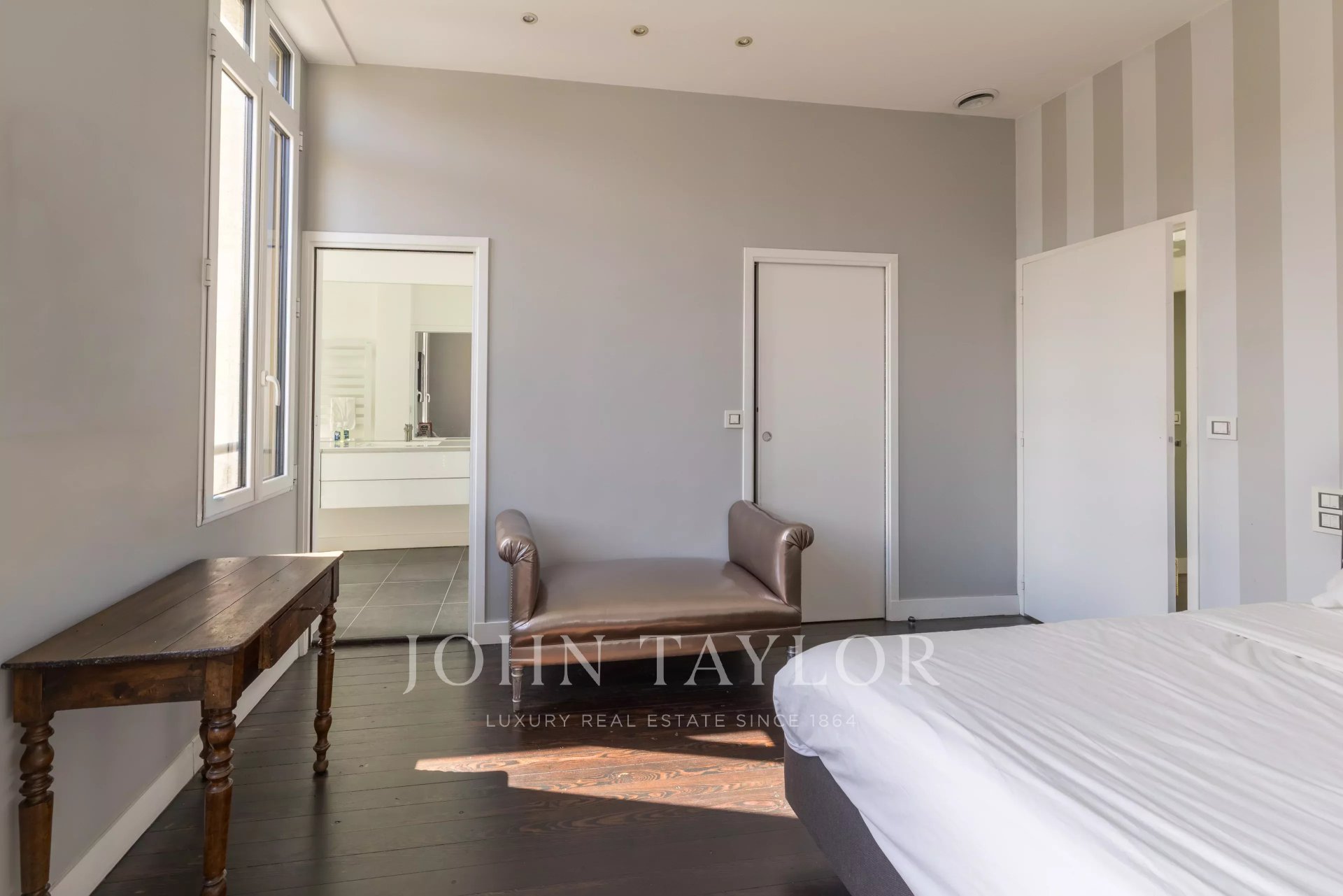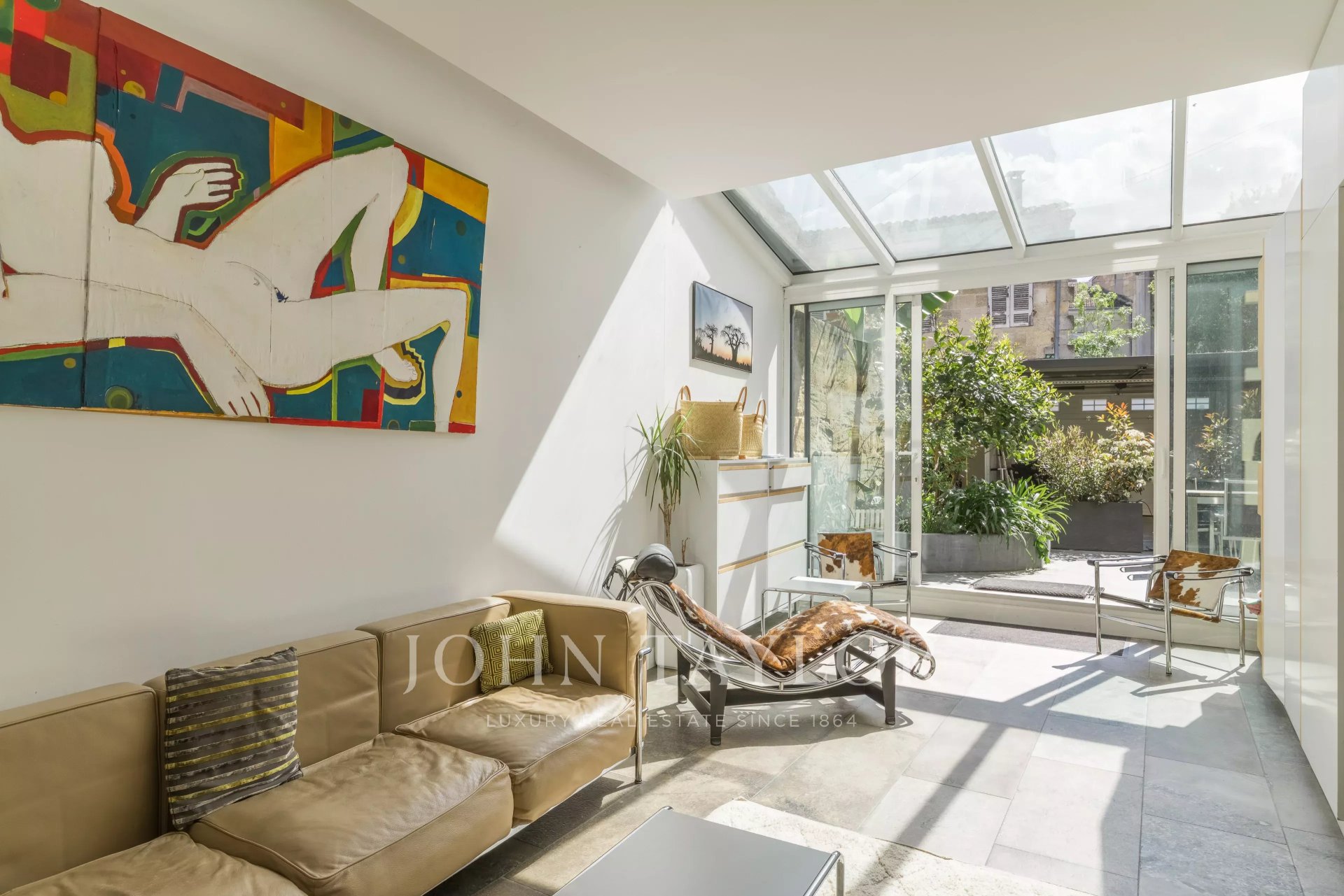 Ideally located in the sought-after Saint-Seurin district of Bordeaux, this charming townhouse offers 116 m² of stylish living space. Boasting seven spacious rooms, including three comfortable bedrooms, the home is bathed in light thanks to large sliding windows with double glazing, providing an open and contemporary ambiance ideal for both relaxation and entertaining.Step inside to discover inviting interiors featuring a modern lounge opening onto a lush, private terrace. The property is designed for comfort and convenience, featuring an intercom system, ample storage, and a practical car port. The architectural blend of traditional Bordeaux stone with contemporary finishes creates a truly unique atmosphere, perfect for families or professionals seeking a move-in ready residence.A standout feature is the beautiful heated swimming pool, promising tranquil moments year-round. Enjoy outdoor living in the landscaped courtyard adorned with mature plants and floral touches. This is a rare opportunity to own a superb, low-maintenance property in one of Bordeaux’s most picturesque and vibrant neighborhoods.