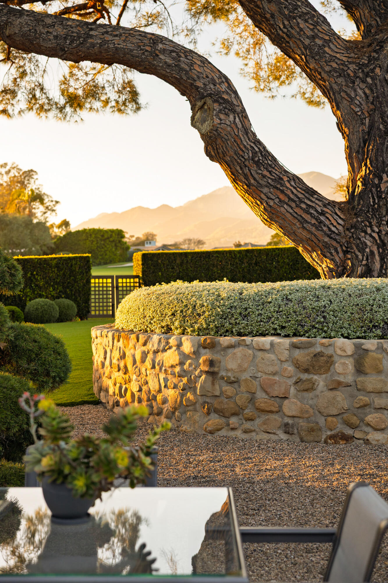 Commanding, unobstructed mountain views define this beautifully reimagined residence, once home to internationally acclaimed architect A. Eugene Kohn. With remarkable privacy and a premier setting at the corner of Birnam Wood's 18th and 1st holes, the property reflects a thoughtful transformation distinguished by refined quality, graceful proportions, and an exceptional sense of comfort. Vaulted ceilings and generously scaled windows and doors fill the interiors with natural light, while the mountains remain a dramatic presence throughout. The kitchen is beautifully appointed with custom cabinetry and elegant surfaces, and the bathrooms convey a sophisticated palette that feels both timeless and current. The main living areas are warm and welcoming, opening naturally to the gardens, terraces, and pool for a seamless indoor-outdoor connection. Extensive landscaping and manicured grounds enhance the atmosphere of privacy and beauty, while the home's architectural pedigree adds a meaningful layer of distinction. The overall impression is one of quiet sophistication in an exceptional Birnam Wood setting.