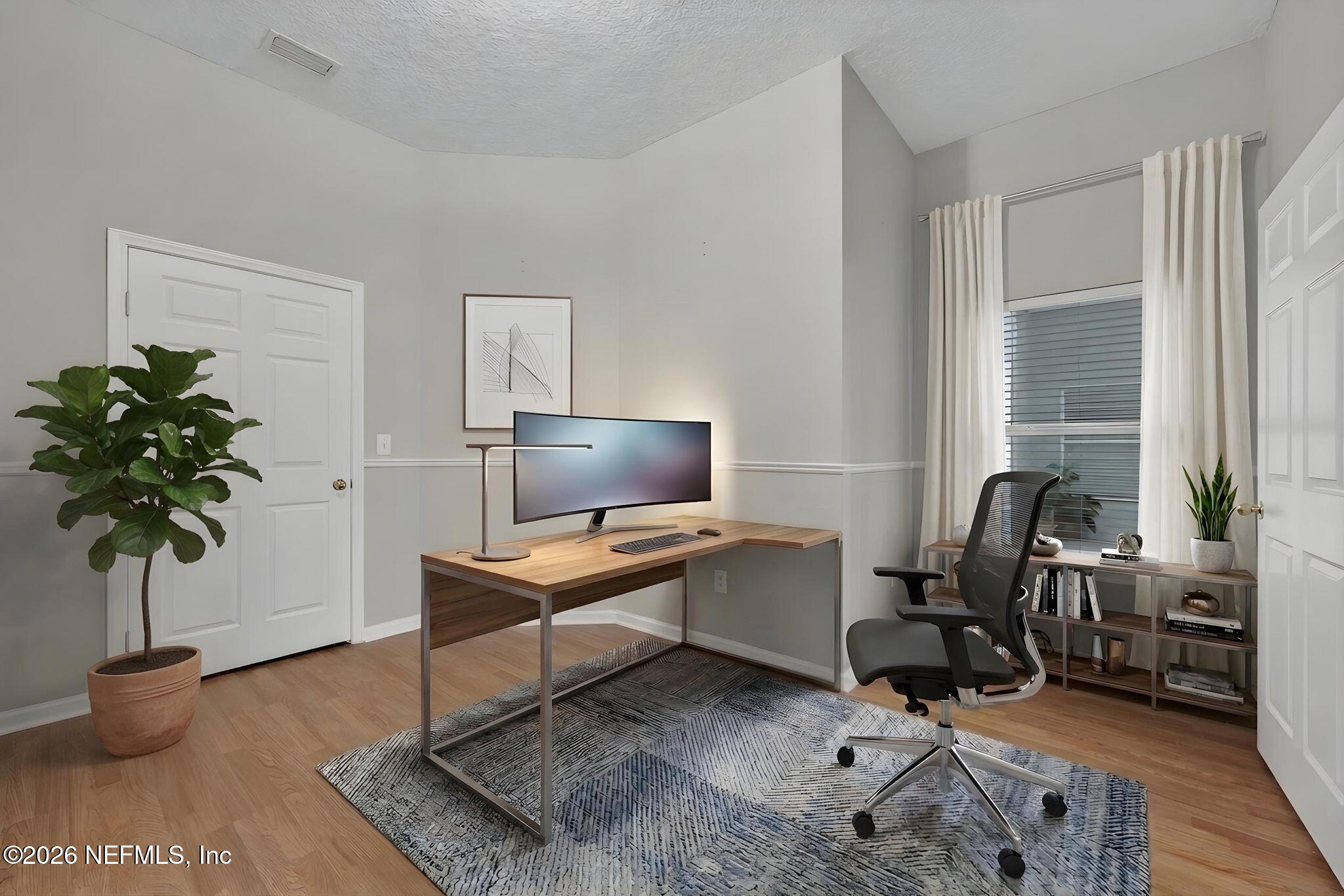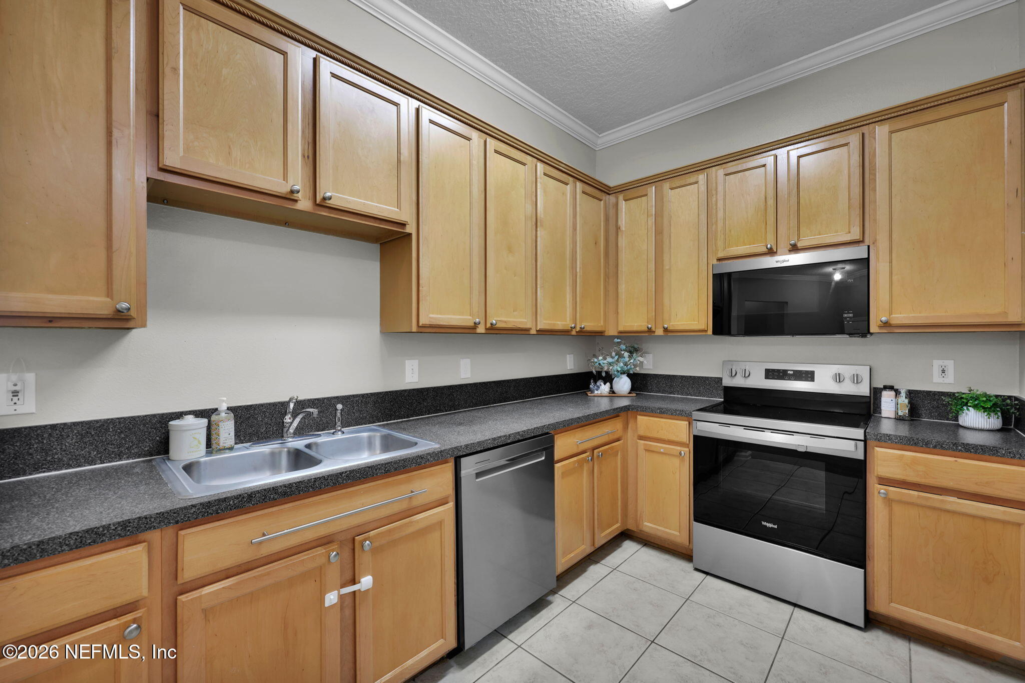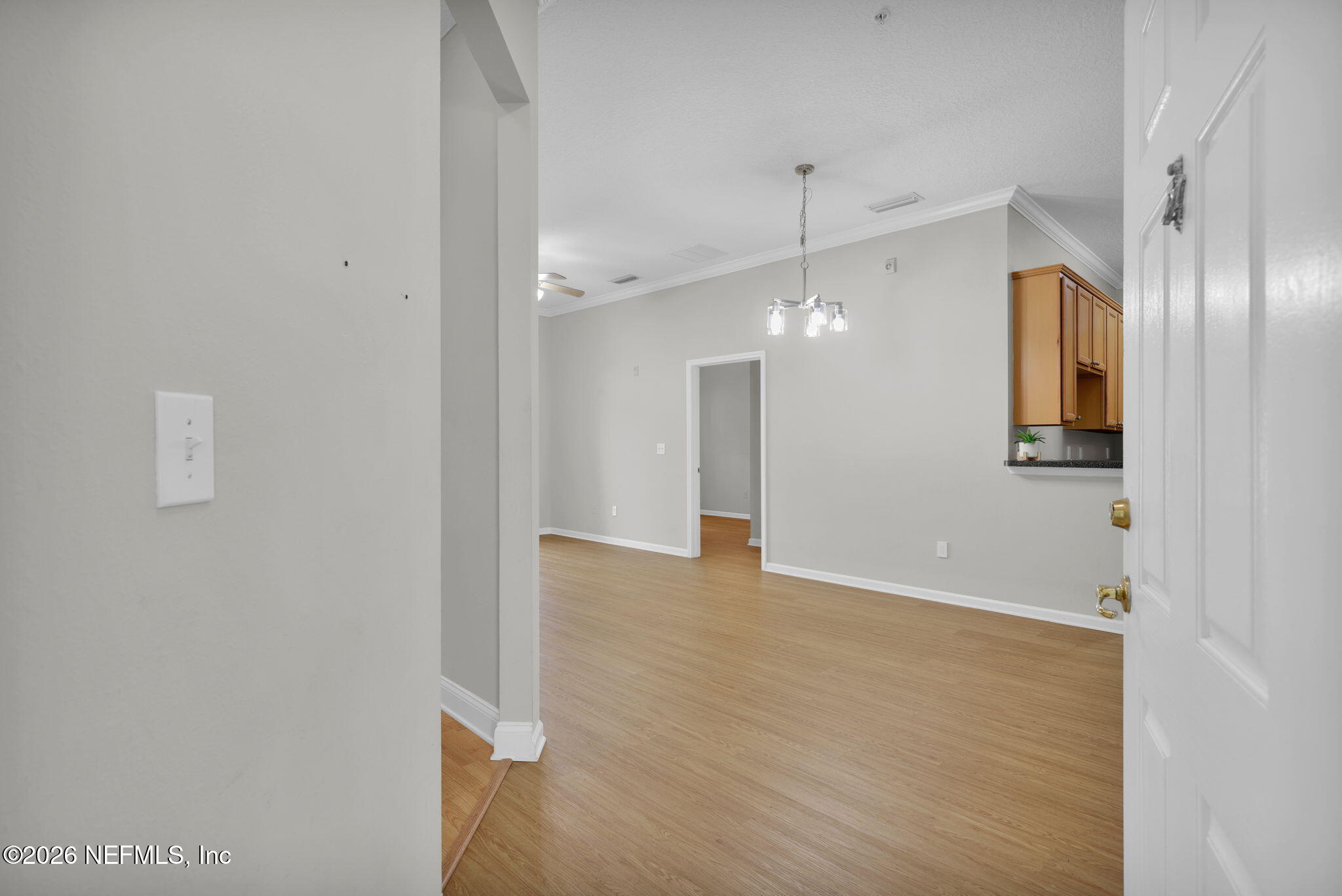 Ground-floor condo with a private garage in the gated community of Windsor Falls, ideally located in the heart of Southside-just minutes to St. Johns Town Center, UNF, FSCJ, the beaches, and downtown Jacksonville. This 3-bedroom, 2-bath home offers a bright, open layout with high ceilings, crown molding, and wainscoting that add character throughout. The split floorplan provides privacy, while the main living spaces feel open, comfortable, and full of natural light. The third bedroom features double doors and a large walk-in closet, making it a beautiful option for a home office or flex space. Laminate flooring and stainless steel appliances create a clean, easy living environment, with seamless flow from the kitchen into the main living area. Enjoy a covered back porch for outdoor living, along with community amenities including a pool and fitness center-all in a highly convenient location close to shopping, dining, and major commuter routes.