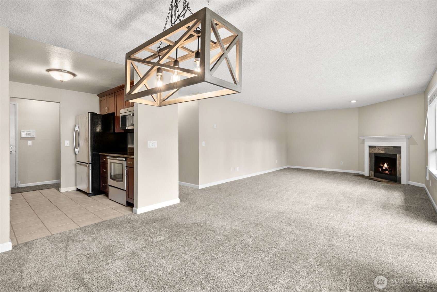 Experience refined Northwest living in this beautifully maintained Tall Firs condo, offering 1,207 sq ft of thoughtfully designed space. Sunlight pours through large windows, illuminating the open living and dining areas and highlighting the classic wood-burning fireplace - a timeless focal point that adds warmth and character. The upgraded kitchen provides generous cabinetry and counter space, creating a clean, functional environment for everyday living.Both bedrooms offer comfortable proportions and excellent storage, while the private balcony/patio invites quiet moments surrounded by the community's natural greenery. A dedicated covered carport enhances convenience year-round.Tall Firs is known for its established setting, well-kept grounds, and welcoming amenities. This home is ideally positioned near Federal Way's signature destinations, including Redondo Beach, Dash Point State Park, Celebration Park, The Commons, and a variety of dining and services. Commuters will appreciate quick access to I-5, Hwy 99, and the Federal Way Transit Center. HOA dues cover water, sewer, garbage, landscaping, and exterior maintenance. Home warranty included for added peace of mind. Ask about how you could get $5000 credit towards buyer costs.