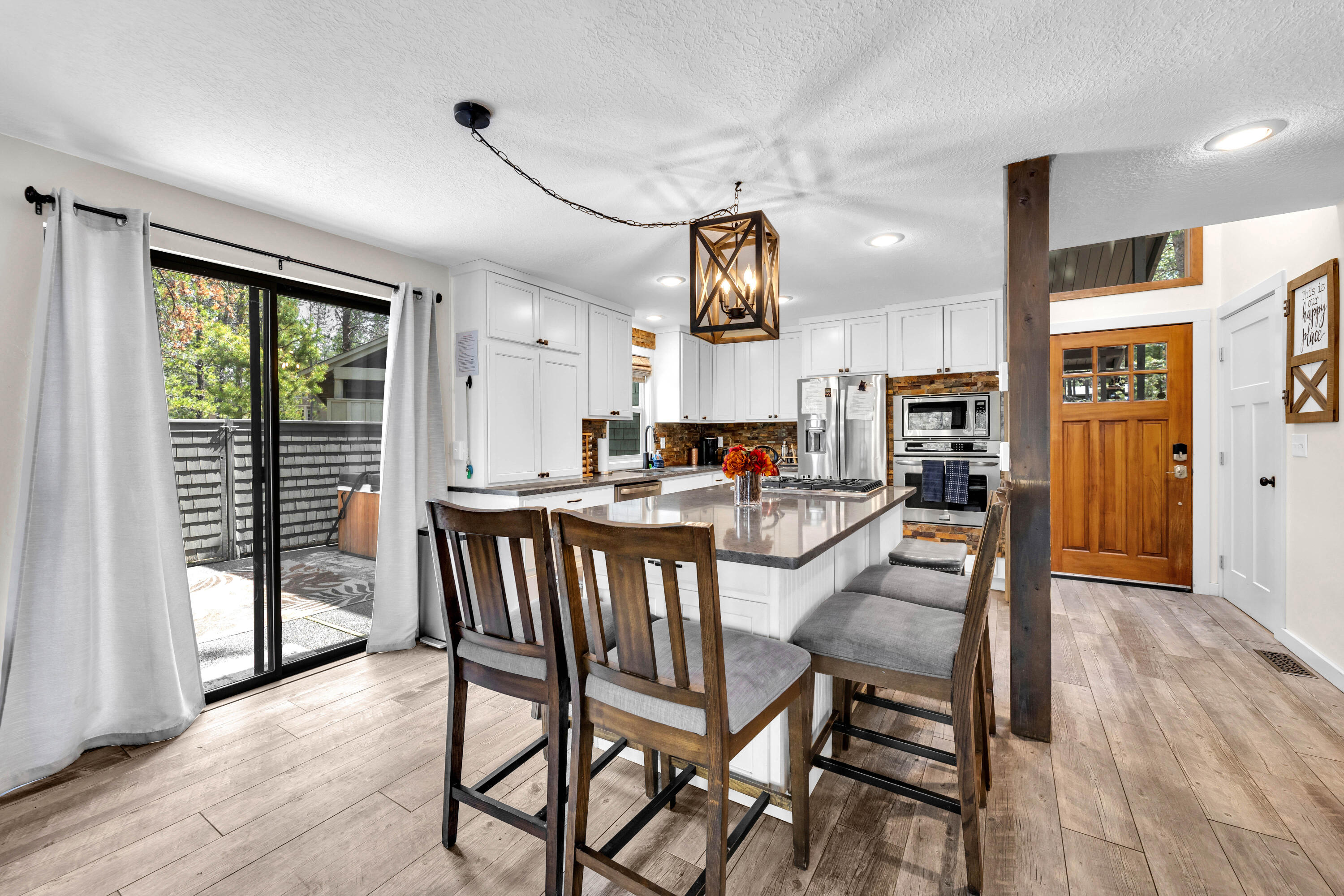 Now offering a 1% lender buy-down with the use of the preferred lender! Located just across the street from the Sunriver Aquatic Center (SHARC) and minutes from The Village, you'll enjoy unbeatable convenience paired with the natural beauty of Central Oregon. Inside features a spacious kitchen with ample storage, perfect for gathering and entertaining. With 1 bed, 1 full bath downstairs and 3 additional bedrooms and a 2nd bath upstairs, there's space for everyone to spread out and enjoy. Relax in the hot tub and enjoy 2 private decks on beautiful days, perfect for winding down in privacy. Whether you're seeking a full-time residence, a vacation retreat, or a proven income-producing rental, this home delivers. Surrounded by miles of scenic trails and just a short drive to Mt. Bachelor, the Cascade Lakes, and Bend, adventure and relaxation are always within reach. This is more than a home--it's where your family comes together, and unforgettable memories are made.