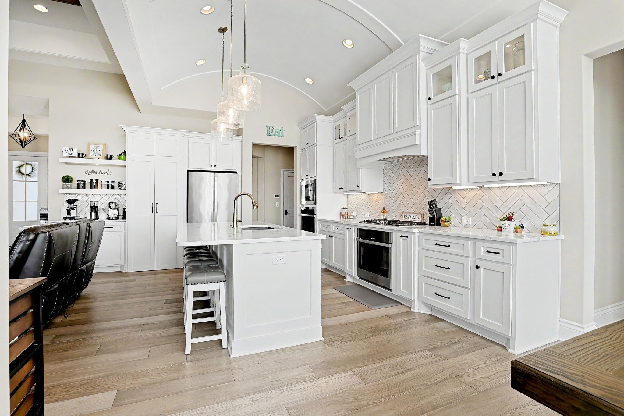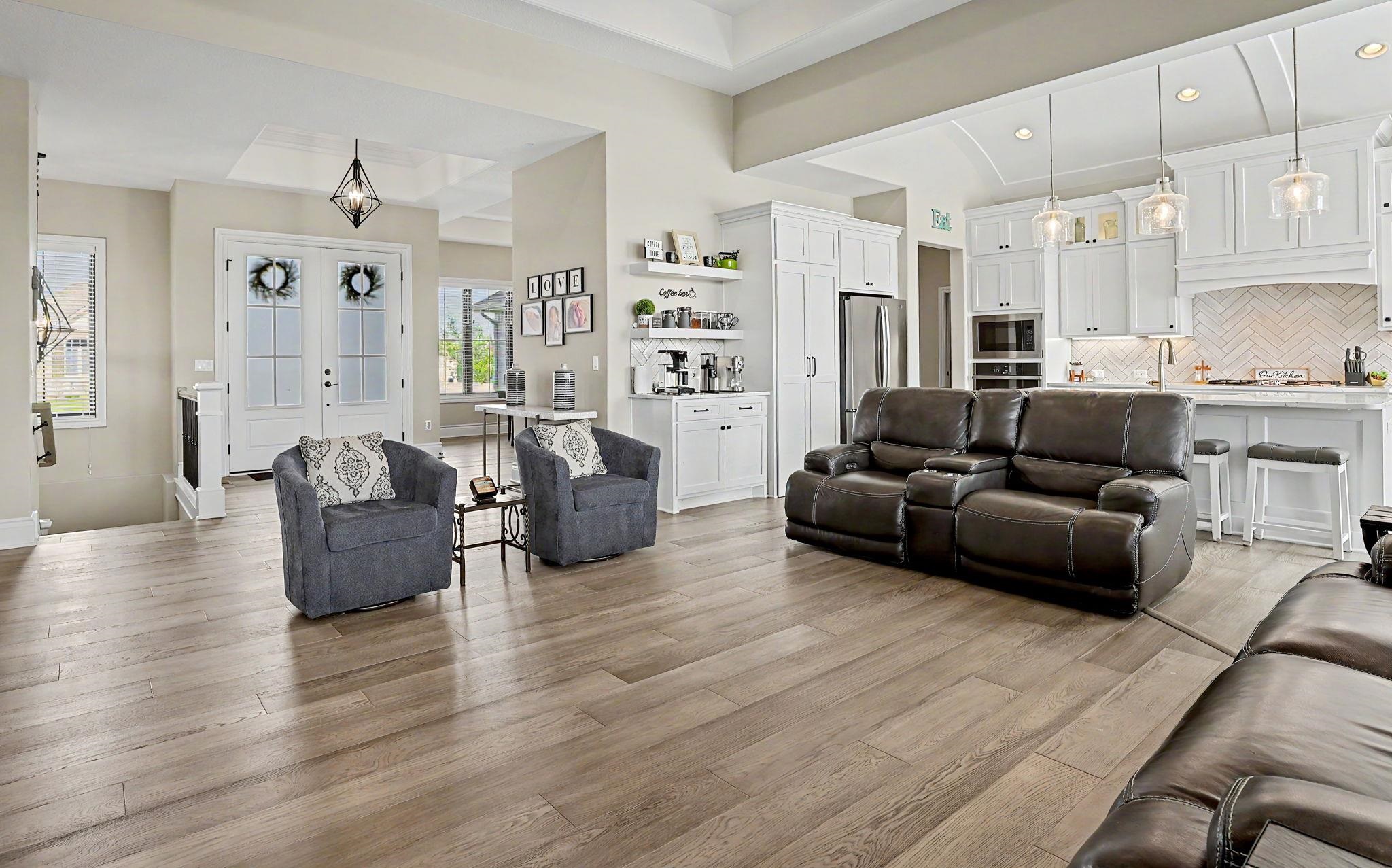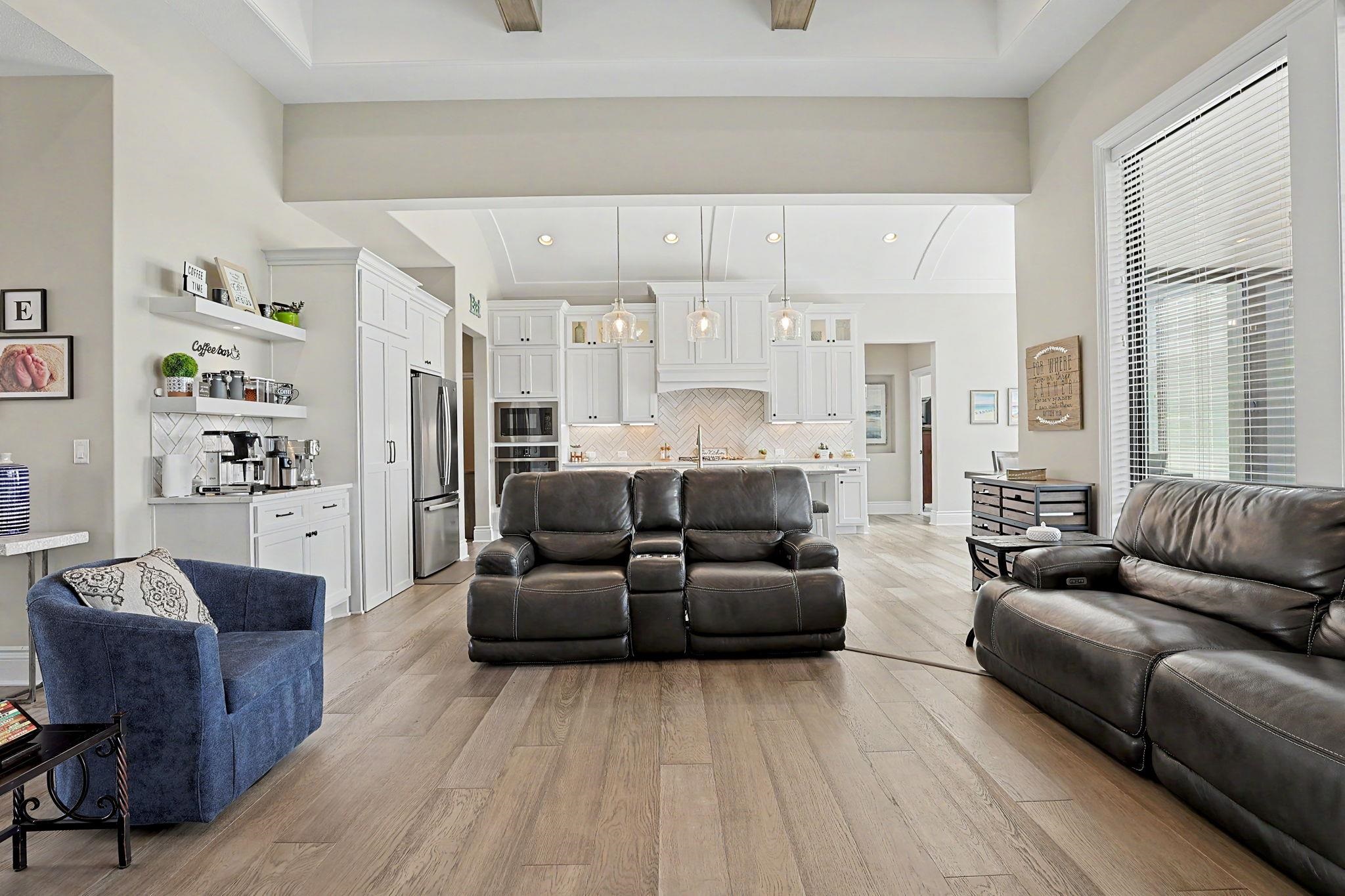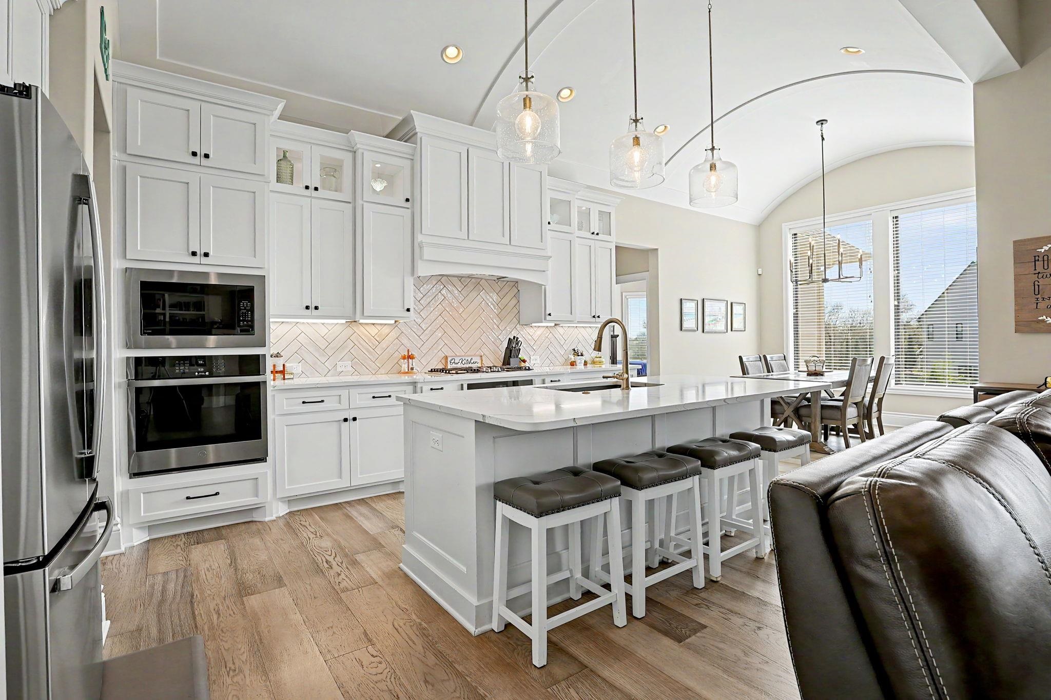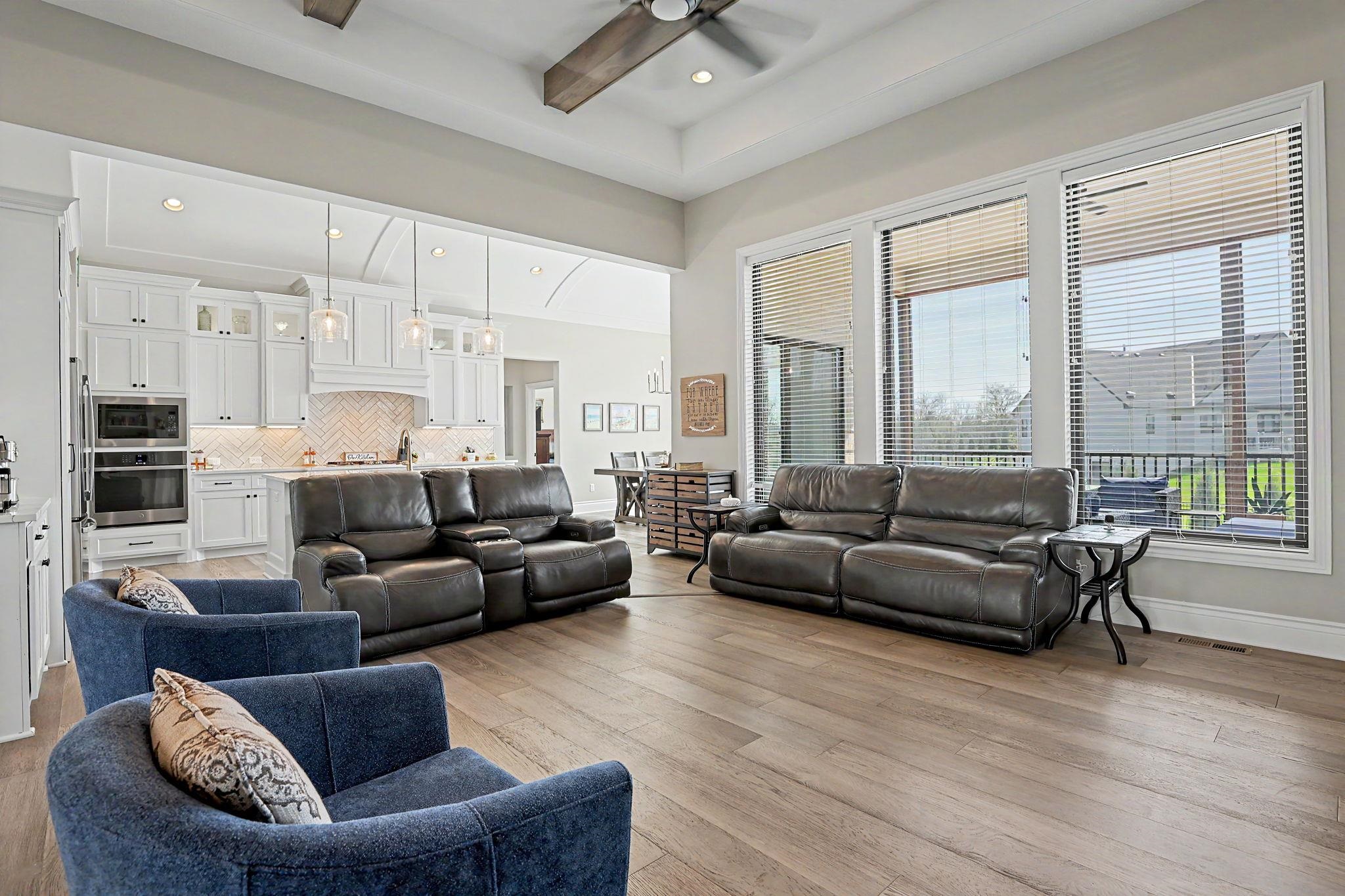 Crafted by the esteemed Fahsholtz Construction and nestled in the highly coveted Brookview community, this exceptional estate offers over 2,500 square feet on the main level alone, blending timeless elegance with masterful design. From the moment you enter, soaring ceilings, custom built-ins, and a statement fireplace create an atmosphere of refined sophistication. The grand living spaces flow effortlessly into a designer kitchen adorned with striking barrel ceilings, an expansive granite island, and upscale finishes - perfectly designed for both intimate gatherings and grand-scale entertaining. The primary suite is a private sanctuary, offering a spa-inspired bath complete with a luxurious soaking tub, oversized walk-in shower, and serene ambiance. Thoughtful details such as main-floor laundry with direct access to the primary suite enhance everyday convenience without compromising elegance. The walkout lower level is nothing short of spectacular - featuring 9-foot ceilings, view-out windows, a custom bar and secondary kitchen, an additional fireplace, three generously sized bedrooms, and two beautifully appointed bathrooms. Every inch of this home has been refreshed with new flooring, elevating its modern appeal. Step outside to your own resort-caliber retreat on .44 acres. A stunning saltwater pool with automatic under-deck cover anchors the backyard oasis, complemented by an expansive patio and a screened-in covered deck - creating seamless indoor-outdoor luxury living. An oversized four-car garage completes this remarkable residence.