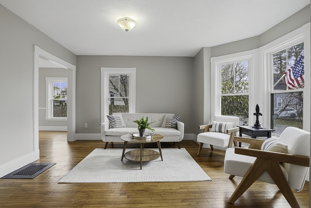 Welcome home to this charming 3-bedroom 2-bath Village Colonial that perfectly blends character, comfort, & convenience.Relax on the sweet farmer's porch before stepping inside to find beautiful hardwood floors throughout the entire home.The sun-filled livingroom features a lovely bow window, while the dining room offers timeless charm with a built-in cabinet perfect for gatherings & everyday livingThe spacious, cabinet-packed kitchen provides abundant workspace & direct access to the backyard, making entertaining a breeze.Upstairs, you'll find three generously sized bedrooms,including a primary bedroom w full bath.The second bath is full of personality, showcasing a vintage clawfoot tub, laundry area, and even a cozy towel warmer Set on a fenced, manicured lot, the outdoor space includes a brick paver patio, driveway, and walkway - ideal for relaxing or hosting.Tucked away on a dead-end street just 0.6 miles from Natick Common & close to commuter rail, shopping, restaurants & more!