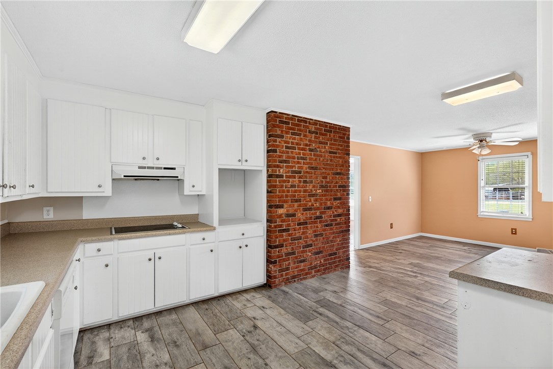 Enjoy peaceful country living just minutes from town! This nicely updated one-level brick home offers 3 bedrooms, 2 bathrooms, and an attached carport, all set on a spacious 2-acre lot. The kitchen features abundant counter space, plenty of cabinetry, and newer tile flooring. The comfortable living room includes a fireplace and a convenient built-in desk area. Just off the living room, a cozy sunroom overlooks the beautiful backyard and provides easy access to the outdoor space. The primary bedroom includes a private full bath with a walk-in shower. Outside, you'll love the large patio area, perfect for grilling and gathering with friends and family. Recent updates include a chimney cap (Nov 2019) and a 30-year architectural shingle roof installed in 2020.