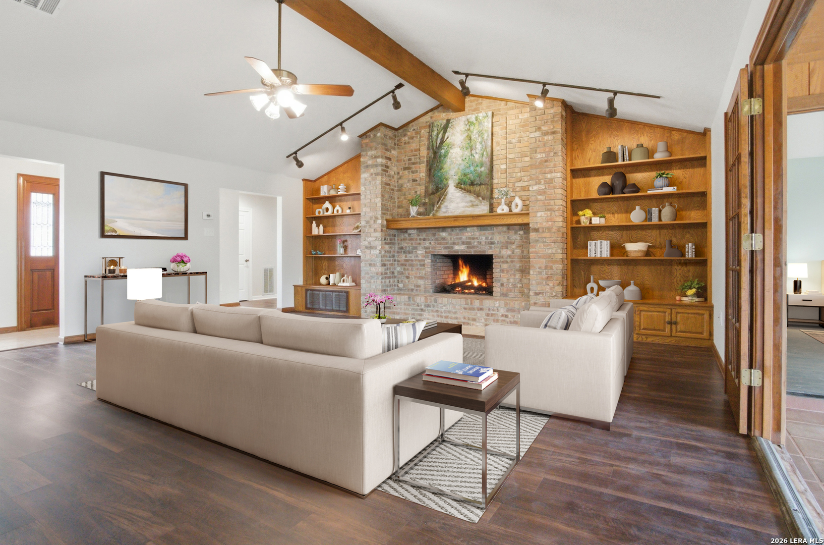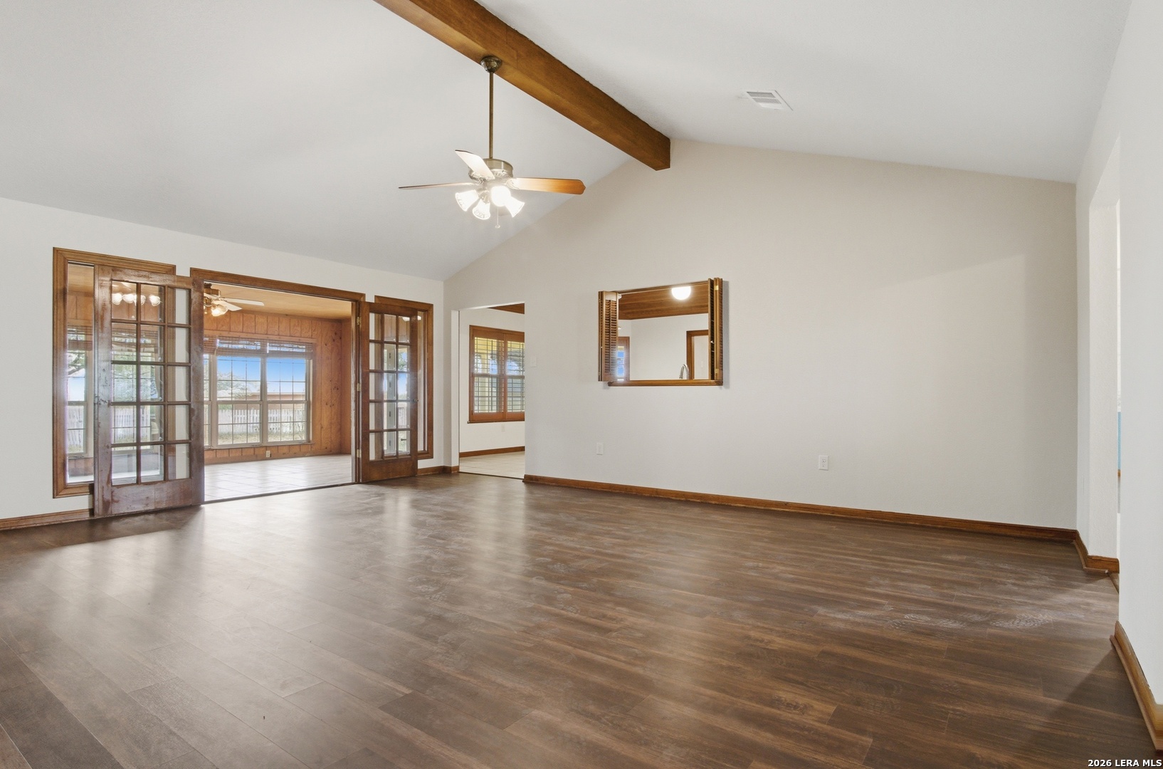 Escape the hustle and bustle and embrace the tranquility of this beautifully updated ranch-style retreat at 10742 New Sulphur Springs Rd. Situated on a sprawling 2.86-acre lot, this home offers the perfect blend of modern comfort and rustic charm. Step inside to an expansive living area featuring a soaring cathedral ceiling accented by a stunning exposed beam, creating a grand yet cozy atmosphere. The heart of the home is the kitchen. It has a grand island with newer appliances, lots of cabinetry, double ovens and flows seamlessly into a separate dining space, perfect for hosting social gatherings. The primary suite is a true sanctuary with an updated ensuite featuring a custom walk-in shower and double vanities. In addition to the 3 spacious bedrooms and Florida room, the oversized laundry room offers incredible versatility-easily transforming into a 4th bedroom, home office, or hobby space. Enjoy peace of mind with new windows, interior and exterior paint, along with a 2024 & 2021 HVAC system for year-round efficiency. With nearly 3 acres of land, the possibilities are endless-from gardening, raising chickens, a workshop space, to simply enjoying the Texas sunsets. Rare opportunity for acreage living with all the modern comforts-schedule your tour today!