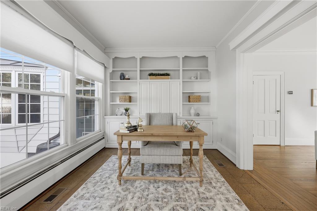 Located in the back of charming West Ghent with close proximity to Chelsea restaurants, Elizabeth River Trail, dog parks, and coffeehouse. Gracious home with tall ceilings, lovely oak floors French doors with two sunrooms. Fireplaces in both living and family rooms. Updated kitchen with granite countertops, stainless steel appliances. Large family room with gas only fireplace built-ins. Primary suite with tiled full bath and sunroom overlooking private backyard. Front and rear staircase. Some new interior paint. Close proximity to CHKD, EVMS, Sentara Hospital and Heart Pavilion. Colley Ave. restaurants and shops.