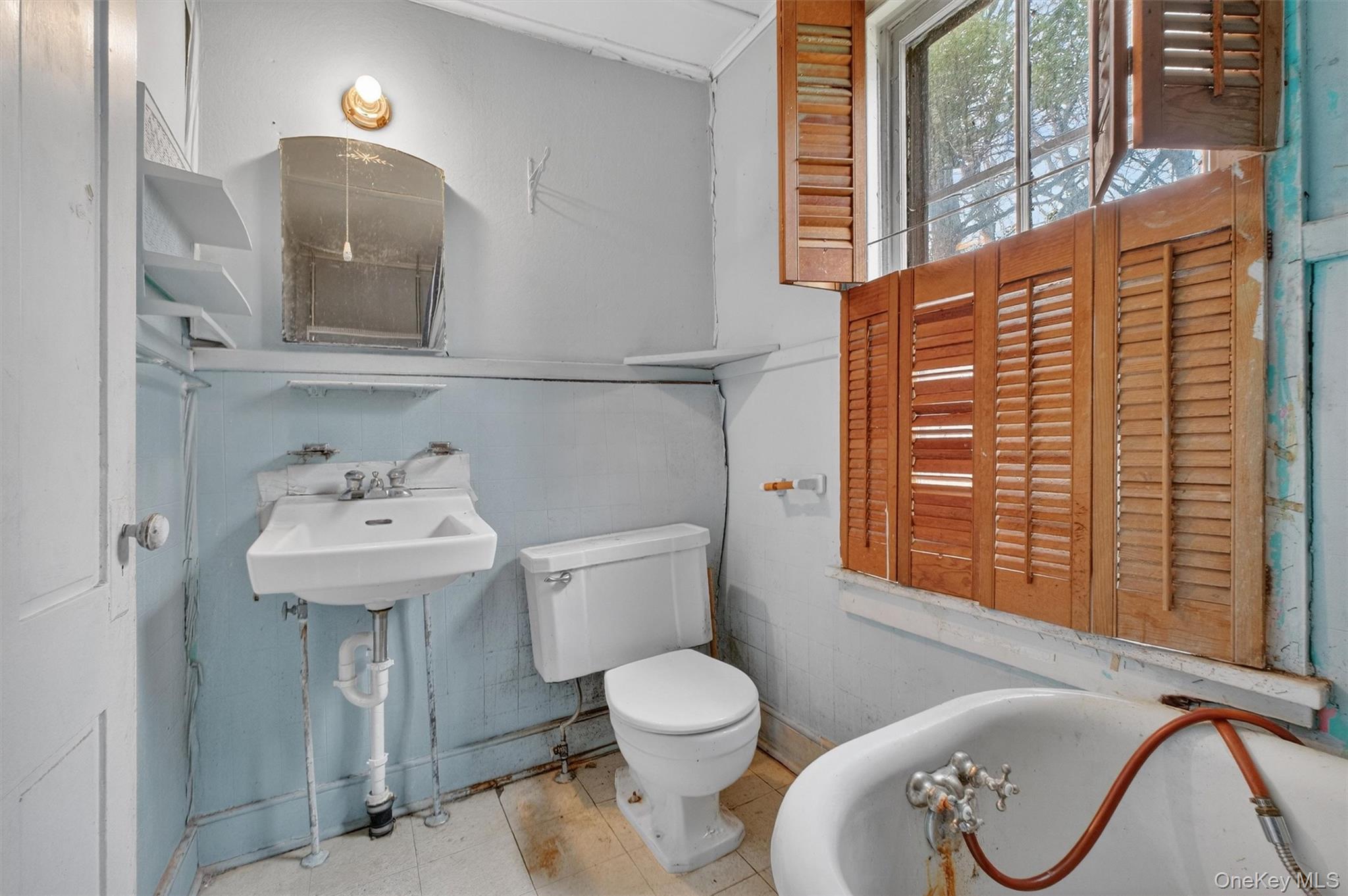 Opportunity Awaits - Attention Contractors & Investors! Set on approximately 2.4 acres across three parcels, this unique property offers scenic frontage along Wappingers Creek, with the home perched high above for breathtaking views (recently seen bald eagle soaring above the Wappingers Creek headed to the Hudson River). Public records indicate a circa-1800s home with 1,344 square feet, situated on roughly 2 acres. The layout includes a first floor with a kitchen, dining room, and spacious living room. Upstairs features a large landing - ideal for a home office - along with three bedrooms and a full bath. Additional highlights include a walkout cellar and a truly special setting with endless potential. Bring your vision and transform this antique property into something exceptional! Just south of the village of Wappingers Falls, near the New Hamburg train station and Rt 9D. Home sold AS IS.