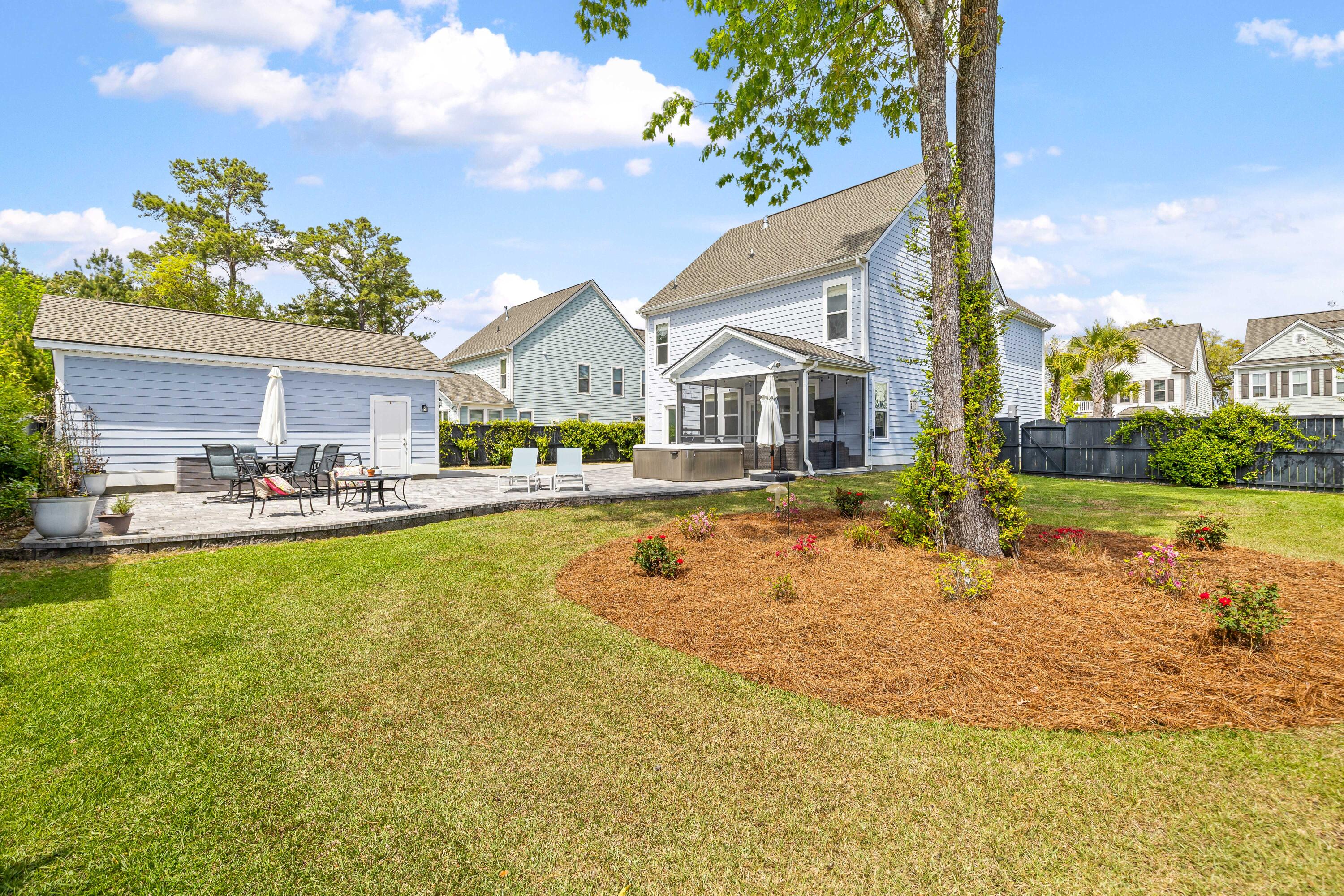 Welcome to 2085 Utsey Street located in the highly sought after Oakfield community on Johns Island. This Charleston Single style home offers over 2,800 square feet with 5 bedrooms and 3.5 bathrooms, all set on one of the largest and most private corner lots in the neighborhood!From the dual front porches and gas lantern to the professionally designed landscaping, the home immediately captures the charm and character of Lowcountry living.Step inside to find a beautifully maintained home where pride of ownership is evident throughout. A welcoming foyer leads into a formal dining room and flows seamlessly into the heart of the home, where the living room, kitchen, and eat in dining area come together in an open and functional layout designed for both everyday living and entertaining.The kitchen features quartz countertops, a natural gas cooktop with range hood, built in oven and microwave convection oven, a custom pantry, and ample cabinet space. The living room is filled with natural light and centered around a natural gas fireplace, while a large screened porch just off the main living area overlooks the private backyard. The main level primary suite offers a spacious retreat with dual walk in closets and a well appointed ensuite bathroom featuring dual vanities and a oversized walk-in shower with rainfall shower head. A dedicated laundry/mudroom and powder room complete first floor Upstairs, you will find a large loft that works perfectly as a second living space, playroom, or media room, with direct access to a private balcony that is ideal for starting or ending your day. Four additional bedrooms and two full bathrooms complete the 2nd floor offering ample space for everyone. The backyard is where this home truly stands out. Situated on one of the communities largest homesites, this .27 acre corner lot offers unparalleled privacy within the community. The space is highlighted by mature landscaping, a large paver patio, and a six person hot tub that conveys with property, creating the perfect setting for relaxing or entertaining. Additional features include full yard irrigation, whole home gutter system and active termite bond. Additionally this home is located in a "X" flood zone, requiring no mandatory flood insurance. Oakfield is a stunning, tree-lined neighborhood with impressive amenities, including a large resort-style pool, miles of walking trails, playgrounds, a putting green, bocce ball court, and a horseshoe pit. The neighborhood often hosts food trucks and community-led holiday events. Oakfield is conveniently located on Johns Island with quick access to Maybank Highway and is just minutes from popular restaurants such as Wild Olive, Royal Tern, Minero, and Low Tide Brewing -- plus a short drive to Downtown Charleston, Kiawah Island, or Folly Beach!