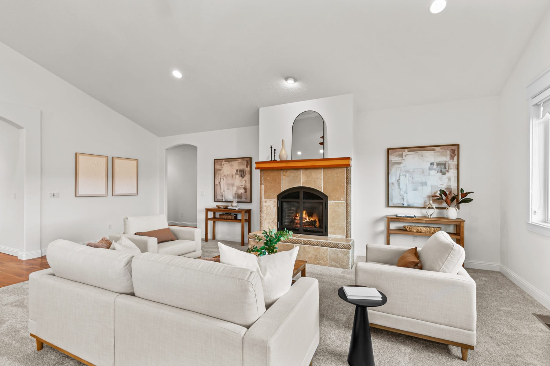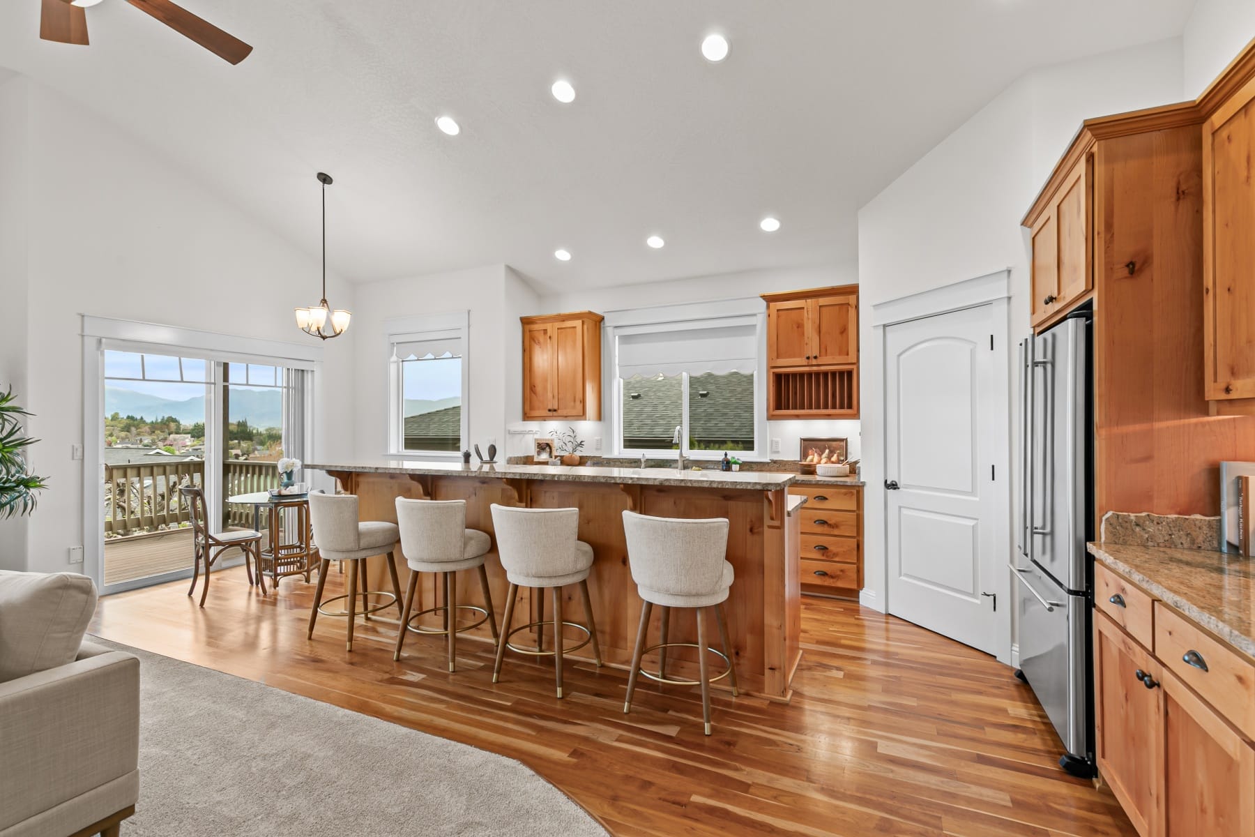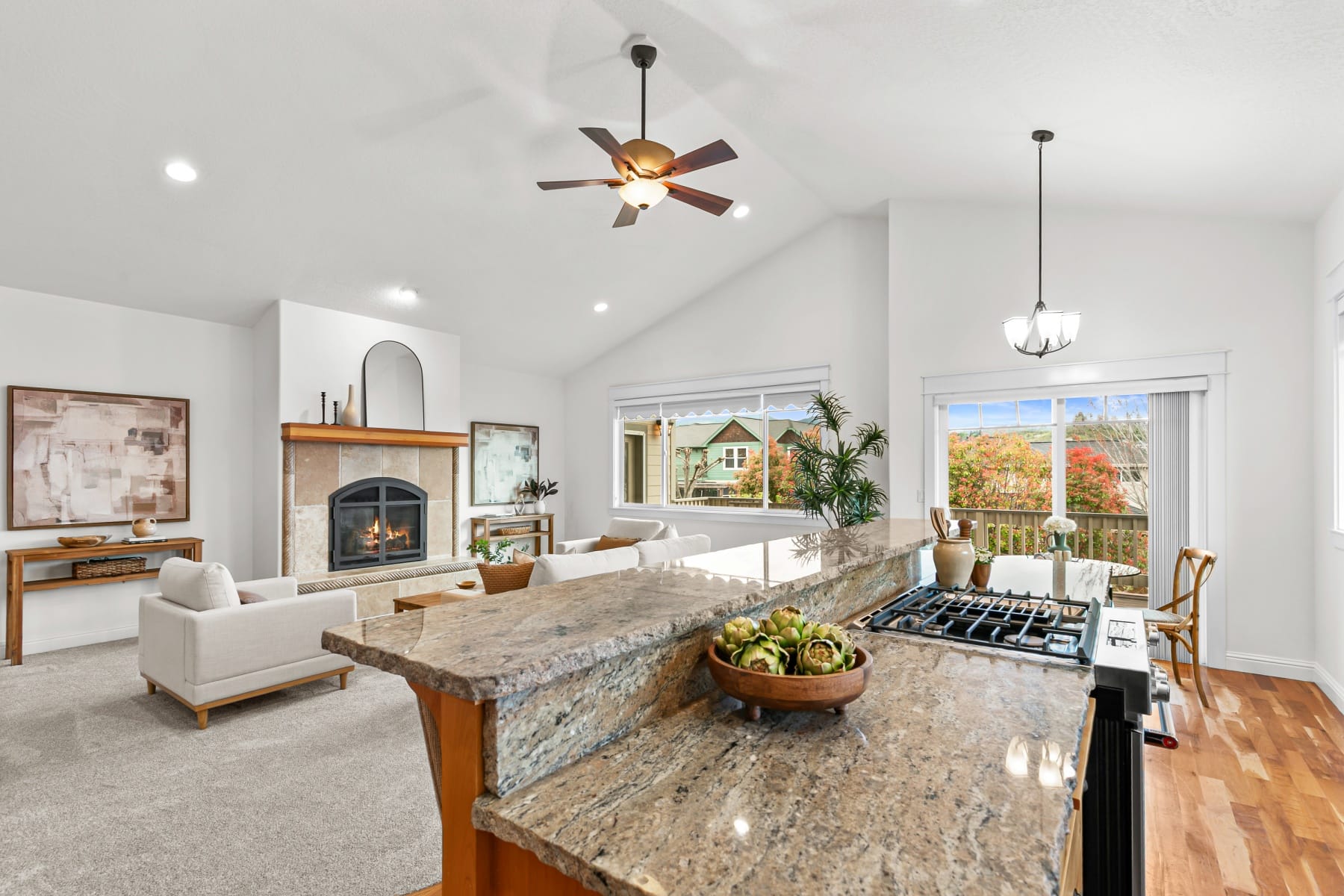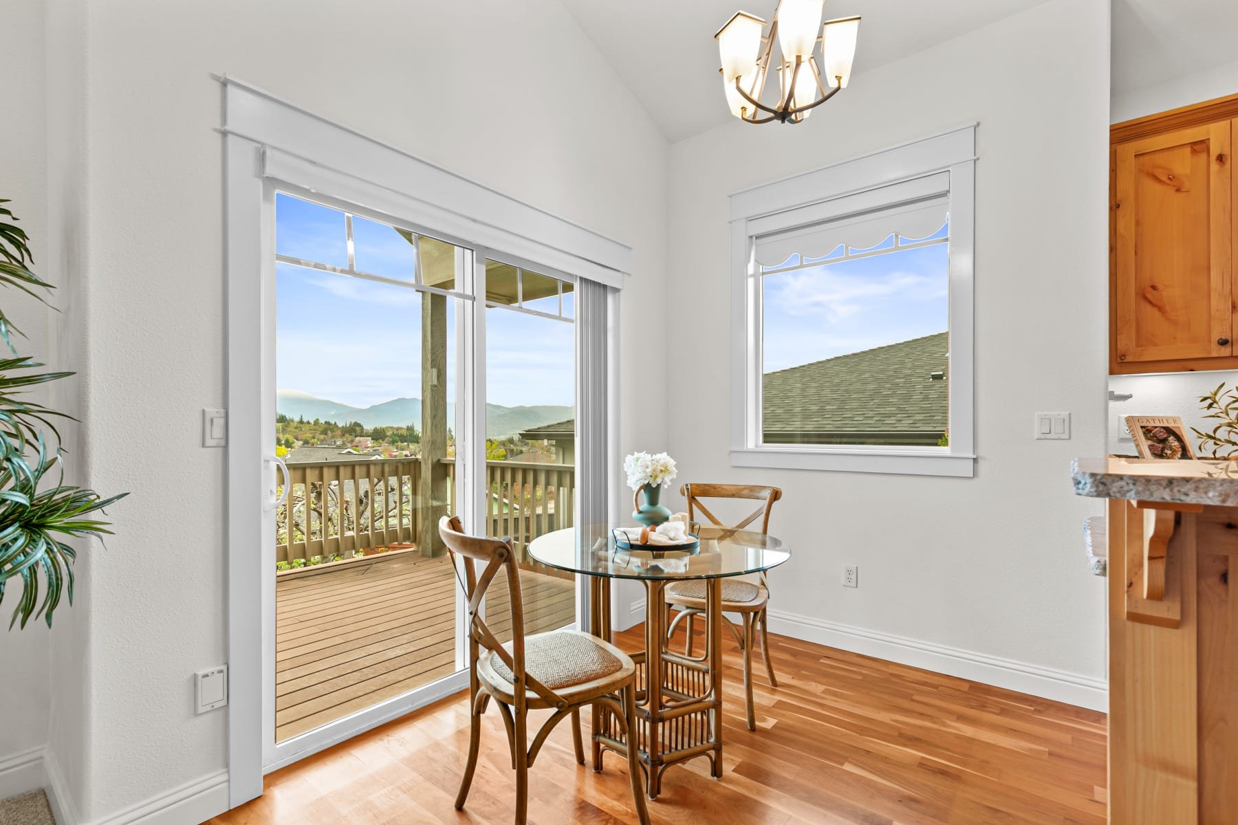 Vaulted ceilings, fresh updates, and sweeping views--this East Medford home truly checks all the boxes. All new interior paint and carpeting provide a clean, updated backdrop, while the expansive layout and soaring ceilings fill the home with natural light. The open kitchen is anchored by chiseled edge granite countertops and warm cabinetry, complemented by rich cherry wood flooring throughout the main living areas. The spacious primary suite is complete with a gas fireplace, dual closets, travertine tile shower, double vanity, and soaking tub. Two additional bedrooms plus a dedicated home office provide flexibility for a variety of lifestyles. Step outside to enjoy expansive valley views from the large deck, which overlooks a backyard filled with fruit trees. Designed for comfort, the home features dual water heaters, central vacuum, and a 3-car garage. Out front, a stamped concrete driveway with a distinctive water feature creates a memorable first impression.