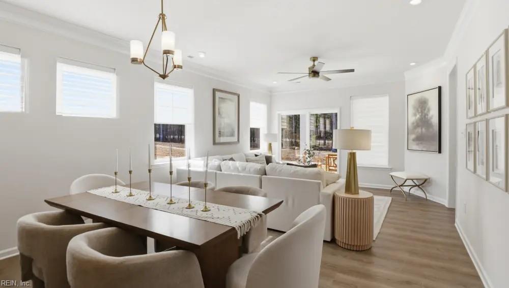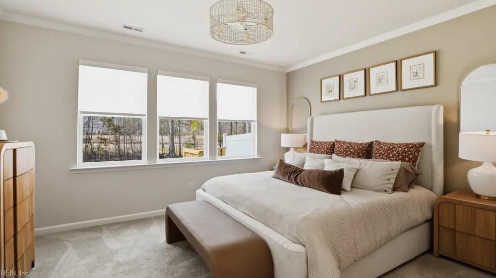 The Cary is a two-story, three-bedroom, two-and-a-half-bath townhome with a one-car garage, a first-floor primary bedroom, a spacious family room, a separate dining area, and a covered rear porch. Upstairs is a loft that overlooks the two-story family room below, two additional bedrooms, a full bath, and a finished storage area. Nestled in the heart of Williamsburg, Wyndham Plantation West offers new townhome designs in a peaceful, established setting surrounded by mature trees, walkable streets, and classic Williamsburg charm. It's convenient location places residents close to popular destinations like Colonial Williamsburg, New Town, William & Mary, and the scenic trails and waterways of the region, making it easy to enjoy history, culture, shopping, and outdoor recreation, all within minutes. With thoughtfully crafted townhomes, Wyndham Plantation offers a beautifully balanced lifestyle - connected, convenient, and effortlessly welcoming.