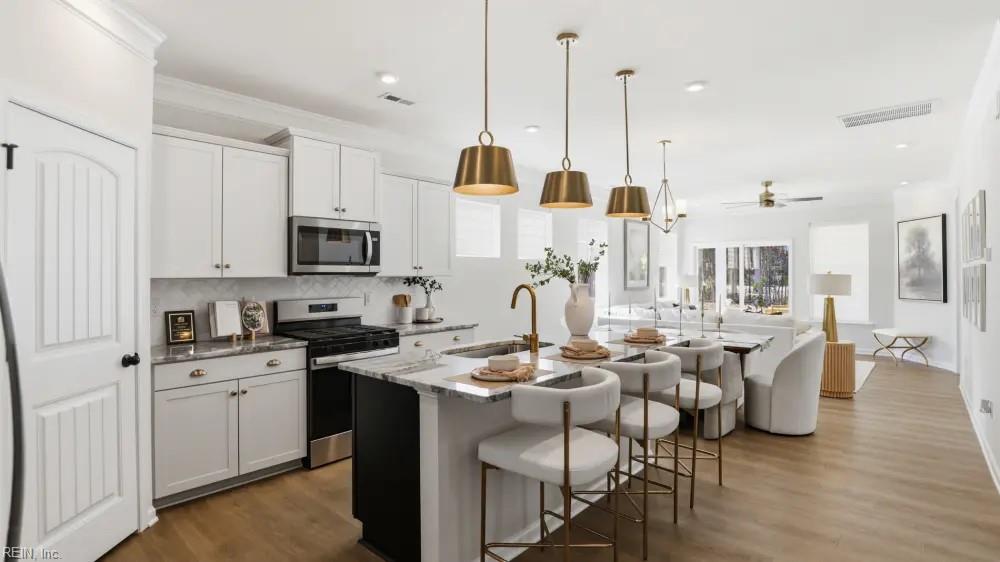 The Chamberlayne is a five-bedroom, two-and-a-half bath paired Basement villa with a one-car attached garage, a first-floor primary bedroom, a covered rear porch, and a kitchen with an island and pantry. The second-floor features four bedrooms, a full bath, and loft area. Nestled in the heart of Williamsburg, Wyndham Plantation West offers new townhome designs in a peaceful, established setting surrounded by mature trees, walkable streets, and classic Williamsburg charm. It's convenient location places residents close to popular destinations like Colonial Williamsburg, New Town, William & Mary, and the scenic trails and waterways of the region, making it easy to enjoy history, culture, shopping, and outdoor recreation, all within minutes. With thoughtfully crafted townhomes, Wyndham Plantation offers a beautifully balanced lifestyle - connected, convenient, and effortlessly welcoming.