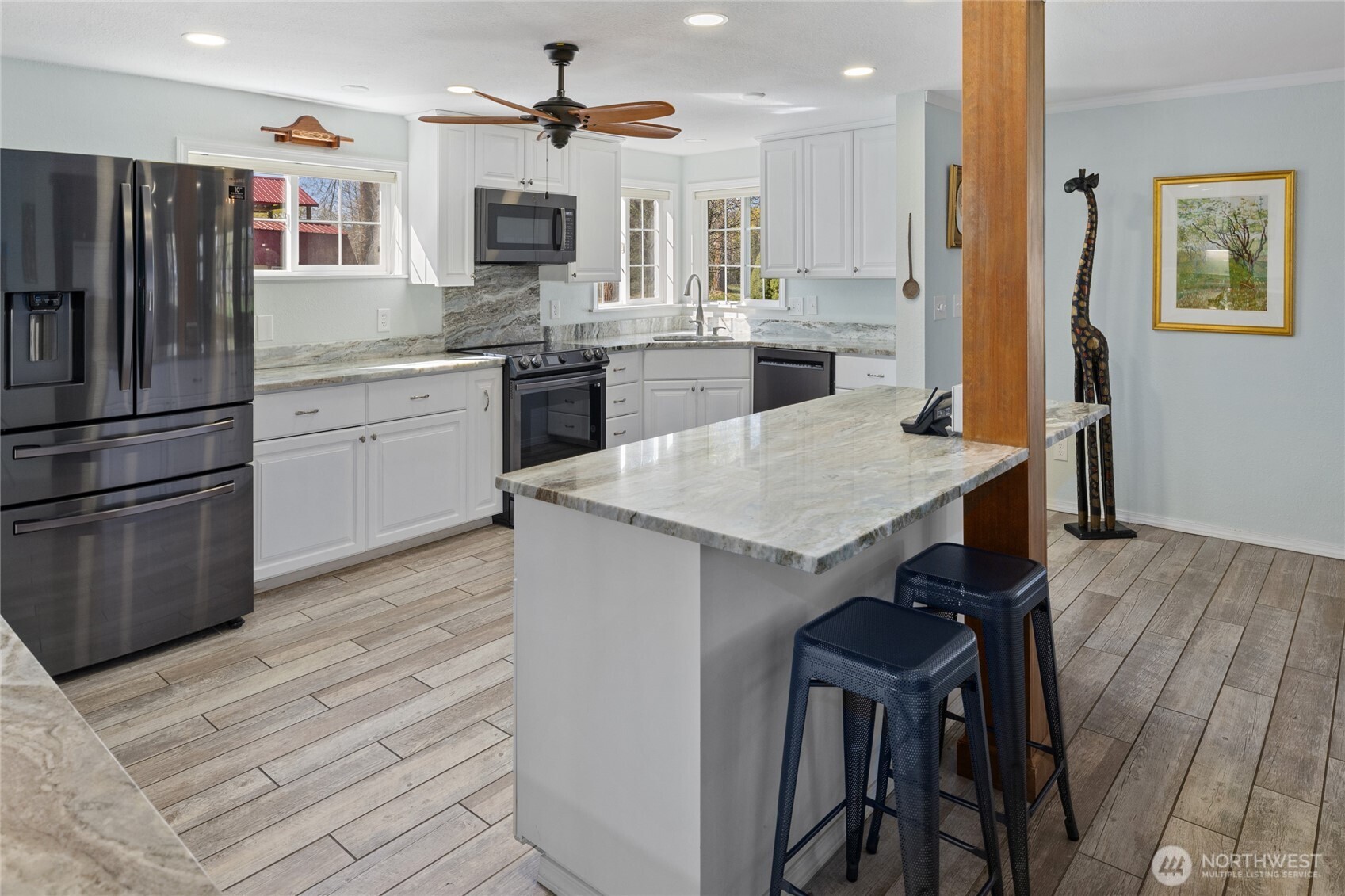 If you're looking for the perfect blend of quiet country living and modern comfort, this 3.49-acre property delivers it all. The 1,876 sq. ft. home is warm and inviting, featuring a practical layout with the primary bedroom on the main floor and tasteful updates throughout. You'll stay comfortable year-round thanks to the cozy radiant heat floors and a newly installed mini-split system for efficient cooling + heating. With a beautifully renovated kitchen and updated bathrooms, the home feels fresh and move-in ready while tastefully blending the home's character. The property is exceptionally well-equipped for hobbies or hosting, starting with a two-car shop that includes a fully self-contained 672 sq. ft. guest suite above. This extra space - complete with a bedroom, living room, kitchen, and bathroom, is ideal for a guest space or a quiet workspace. Outbuildings are plentiful, including an RV or machine shed, a garden shed, and a carport designed with additional storage space. The land itself is a true highlight, featuring a sprawling, meadow-like yard shaded by mature trees and kept green with CID irrigation. It's a gardener's dream come true, boasting a large deer-fenced garden area with raised garden beds and plenty of fruit trees including plum, apple, pear, and cherry trees, plus plenty of raspberries. Tucked away in a private setting just minutes from the Yakima River, this is a rare opportunity to own a functional, updated home on a spectacular piece of land.