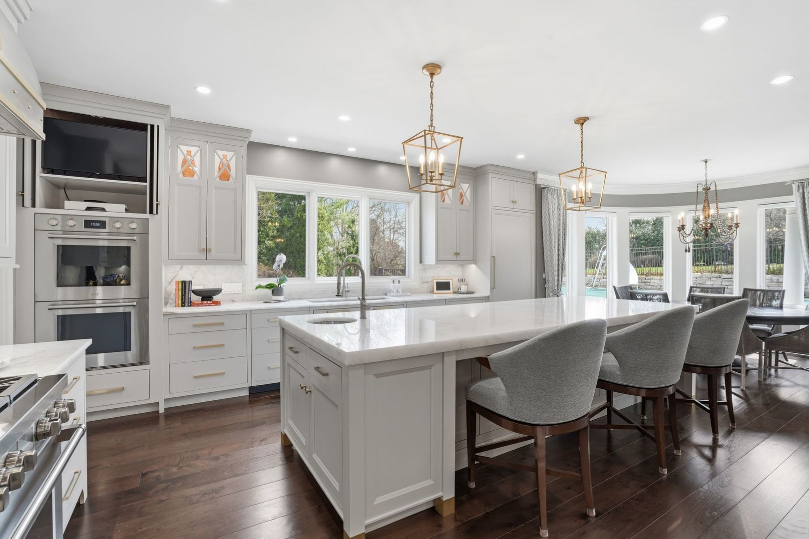 Set on lush, private grounds in Inverness, this one-of-a-kind multigenerational estate delivers scale, sophistication, and soul in equal measure. Few homes have been built with this level of intention, and even fewer come to market. This home was truly built to entertain, host, and enjoy. A dramatic two-story entry with a sweeping double sided staircase signals what lies ahead.. quality and intention. The entire first floor was reimagined in 2022 and 2023, with new wide plank walnut floors, all new lighting, a new walk-in pantry, new powder room and new first floor laundry room. The two-story great room anchors the main level with soaring ceilings and natural light. The kitchen, also fully redone in 2022, is a true showpiece, with custom cabinetry, a large beautiful island, new pantry, Wolf 6-burner range, Sub-Zero refrigerator, double oven, and two dishwashers. Upstairs are your six en-suite bedrooms, each with its own custom bath. A secluded study with a full bath on the main level doubles naturally as a first-floor primary suite. A formal sitting room, four-season sunroom, billiards room, and a pass through library each add their own distinct atmosphere. Laundry rooms on both levels, with the main level being completely with marble tile, a 6-zone HVAC system with three furnaces replaced in 2025, and a 2022 roof mean the bones are as solid as the finishes. Downstairs, the lower level is built for fun, two recreation areas with a secondary serving station and fireplace flanked by custom built-ins, plus a dedicated home theater. A second Sub-Zero and a full secondary kitchen setup in the heated garage make large-scale entertaining genuinely effortless. Outside, the property earns its reputation. A vaulted valet courtyard leads to the heated, epoxy-floored 8-car garage with built-in storage. The backyard is designed to host: a heated 20x40 in-ground pool ranging from 2.5 to 10 feet deep, a fully outfitted grilling station with two grills, and multiple patio zones that handle everything from an afternoon cookout to a 200-person celebration. The 100% paver driveway and professionally landscaped grounds frame it all beautifully through every season. Estates like this are genuinely rare, and once seen in person, you will understand.
