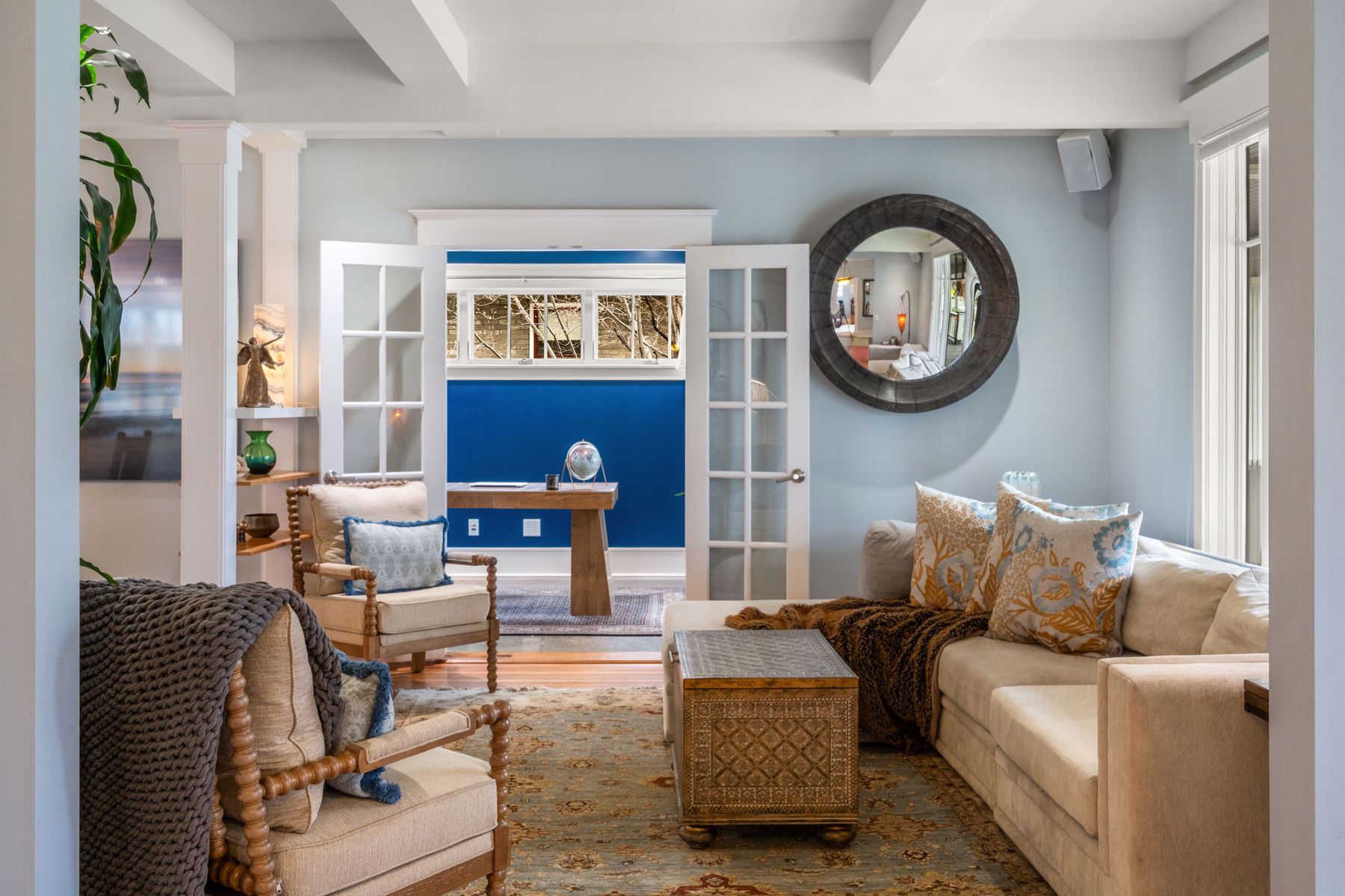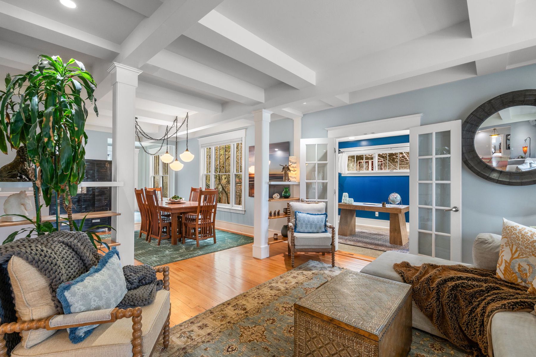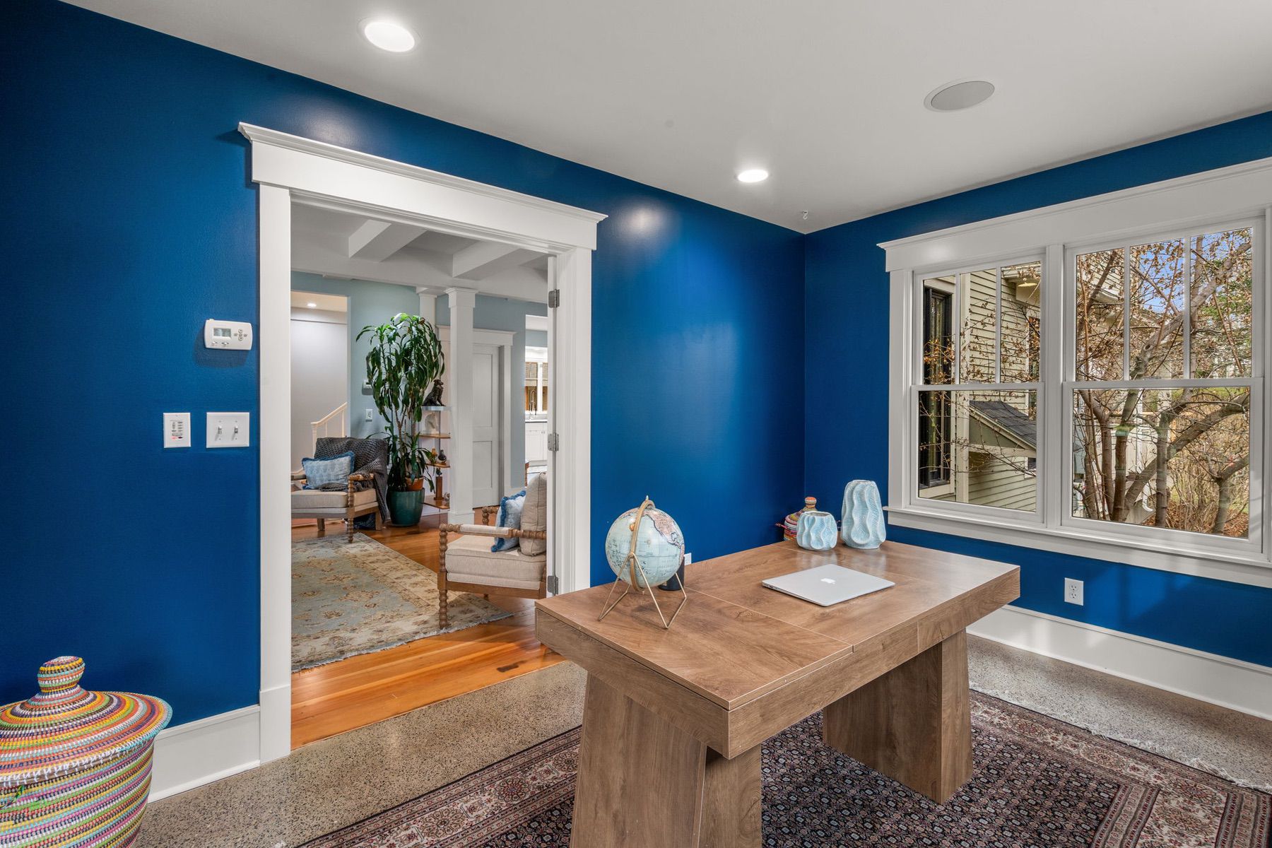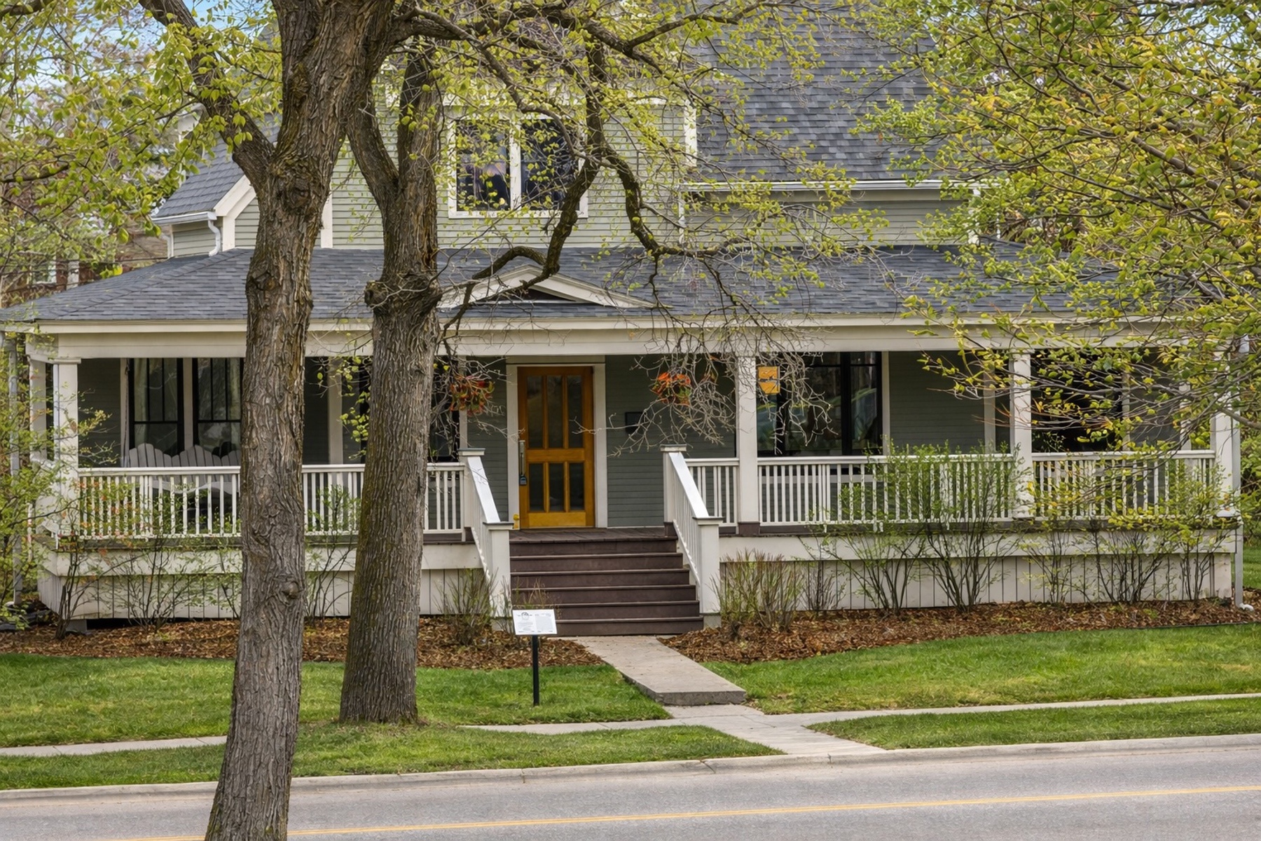 Located on one of Bozeman's most coveted downtown streets, this charming residence on Willson Avenue sits just moments from Main Street and directly across from the historic Story Mansion. The home blends early 1900s character with thoughtful updates, including a major eco-focused renovation. Inside, original hardwood floors, radiant heat throughout, and freshly repainted interiors create a warm and inviting feel. The remodeled kitchen features stainless steel appliances, an induction range, trash compactor, pantry, and a distinctive rotating wood-burning stove. The main level also offers a flexible office with access to the front porch, a spacious bedroom with a large closet, dining room, and powder bathroom. The secondary, mail-level living room opens to a wrap-around porch with sunken hot tub, creating effortless indoor-outdoor flow. Upstairs, the light-filled and remodeled primary suite includes soaring ceilings, multiple spacious closets, and an en suite bathroom with clawfoot tub, double vanity, and tiled shower. Two additional bedrooms, a full bathroom, and upstairs laundry provide flexibility and convenience. The outdoor spaces are designed for relaxation and entertaining, featuring an expansive deck with a sunken hot tub, underground sprinklers, and a detached garage. Sustainable and eco-focused features include radiant heating, new flooring, updated windows, and solar panels. A rare opportunity to enjoy historic charm, modern comfort, and one of Bozeman's most desirable locations, perfectly positioned near Montana State University and bustling Downtown Bozeman.
