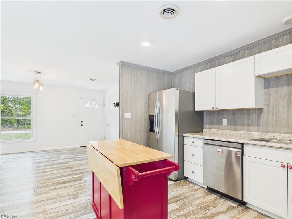 Coastal charm meets everyday comfort in this beautifully updated 3 bedroom/2 full bath retreat in Saluda, Virginia. Enjoy the Piankatank River just steps away, with the community boat landing and newly renovated pier just at the end of the road. This home is ideal for boaters and outdoor enthusiasts. Inside, enjoy an open-concept layout with an eat-in kitchen, coffee bar, LG stainless steel appliances and French doors leading to a spacious deck. The oversized family room features built-ins, a cozy gas fireplace, and flexible living space. Backyard shed has electric and is ideal for extra storage or workshop. Renovated top-to-bottom in 2018 - including roof, HVAC, kitchen, baths, flooring, and more - this move-in-ready gem delivers comfort, style, and a true river lifestyle.